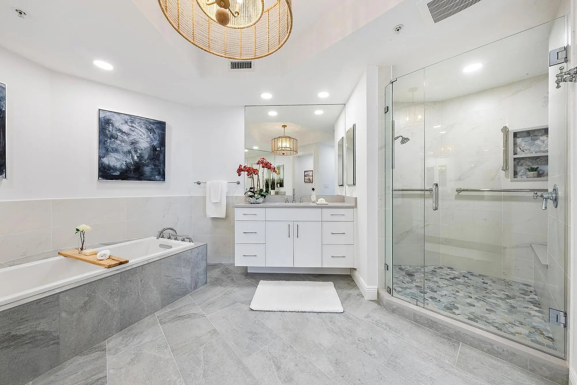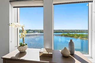 This spectacular totally renovated 3-bedroom, 3 full bathroom, waterfront residence with a private elevator entrance is located within one of the newest buildings (the 2005 Commodore building) at the Jupiter Yacht Club, a prestigious gated waterfront community in Jupiter. This home offers about 2,400 square feet of interior space and a spacious private covered balcony. This home enjoys highly desirable east-to-west exposure with abundant natural light and breathtaking Intracoastal Waterway views. This residence underwent a major renovation in 2025, including a full gut renovation of all three bathrooms featuring new custom floating vanities, quartz countertops, designer tile, frameless glass sliding shower doors in the guest bathrooms, a new soaking tub in the primary bathroom, premium designer Rohl plumbing fixtures, senior accessibility features, and upgraded recessed lighting. Additional 2025 enhancements include new custom full-wall built-in cabinetry in the den, a remodeled laundry room with new cabinetry and sink, fresh interior paint throughout using highest grade Benjamin Moore paint, and two new high-efficiency Carrier HVAC systems, creating a truly turnkey offering. The recently-updated kitchen has a double oven, induction cooktop, and two refrigerator drawers. The residence includes two deeded assigned parking spaces. Jupiter Yacht Club offers direct access to the scenic Jupiter Riverwalk along the Intracoastal, seamlessly connecting residents to Harbourside Place, waterfront dining, entertainment, and boutique shopping along the Intracoastal. The location also provides convenient proximity to the Jupiter Inlet, beaches, and additional waterfront restaurants and shops. The community amenities shared by the two Commodore-Anchorage buildings in the Jupiter Yacht Club include a pool and spa, fitness center with new equipment, barbecue area, clubroom, library, putting green, gated entry, and multiple indoor gathering spaces such as a theater room and additional well-appointed resident amenities designed to support comfortable year-round living. Boat slips are available at the protected Jupiter Yacht Club Marina for lease or purchase.