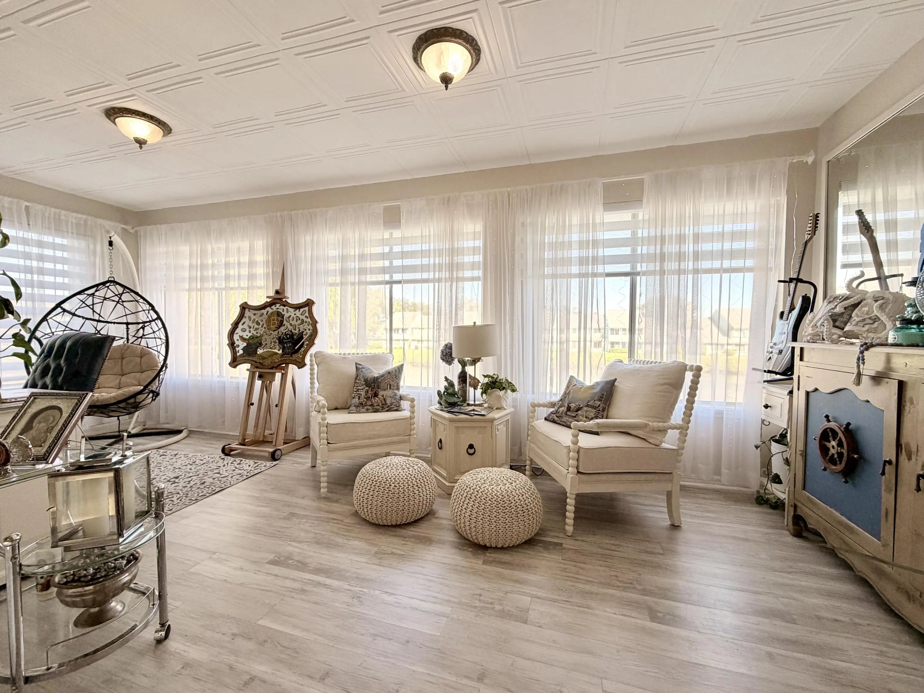 Experience effortless living in this Beautiful 2Bedroom 2Bath 1Car Garage end-unit with Lake Views in an in-demand gated community. Ideal as a second home or full-time retreat, it offers low-maintenance, worry-free ownership. HOA includes manicured grounds, a resort-style pool, clubhouse, tennis/pickleball court, water, trash, cable, and master insurance—electricity is your only utility. Enjoy a private marina with slips available for purchase or lease based on availability. Covered entry, foyer, kitchen, dining, living & Florida rooms, plus inside laundry. Features include stainless steel kitchen appliances, washer and dryer, built-in bar, Lifeproof flooring, spa-style shower, 2023 AC, accordion shutters, HWA home warranty, garage door opener, and extended driveway for 2 additional cars