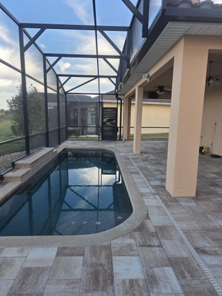 One or more photo(s) has been virtually staged. BEAUTIFUL AND SPECTACULAR CASTELLO MODEL POOL HOME WITH A SEPARATE ENTRANCE FOR A GOLF CART IN THE BEAUTIFUL SOLIVITA COMMUNITY. A 3 BED, 2 BATH HOME. THE 3rd BEDROOM IS A FLEX ROOM THAT CAN BE USED AS A STUDY OR OFFICE. HOME IS TILED THROUGHOUT, KITCHEN HAS GRANITE COUNTER TOPS, STAINLESS STEEL APPLIANCES AND A WALK-IN PANTRY PLUS A NICHE THAT CAN BE TURNED INTO A DRY BAR OR COMPUTER AREA. ALSO RECESSED LIGHTING AND PLENTY OF COUNTER SPACE. THERE'S A FORMAL DINING ROOM AND A SPACIOUS BREAKFAST DINING AREA. THE BATHROOM COUNTERTOPS ARE GRANITE. THE PRIMARY WALK-IN CLOSET, WATER CLOSET, AND THE GUEST BATHROOM ALL HAVE ENERGY-SAVING LIGHTING THAT LIGHT UP WHEN YOU ENTER THAT ROOM AND TURN OFF AUTOMATICALLY. THE REAR LANAI IS EQUIPPED WITH 2 FANS AND A TV, IT IS SCREENED-IN WITH 2 ENTRANCES AND A GREAT VIEW OF THE POND, PLUS A BEAUTIFUL HEATED POOL WITH A NICE WATERFALL FEATURE. THE FRONT DRIVEWAY PAVERS HAVE BEEN RECENTLY SEALED AND THE HOME FRESHLY PAINTED. THE HOA FEES COVER THE GROUNDS UPKEEP, CABLE TV, INTERNET, AND 24 HR. SECURITY. SOLIVITA HAS TWO 18-HOLE GOLF COURSES, TWO STATE-OF-THE-ART FITNESS CENTERS WITH TRAINERS, AN ART STUDIO, TENNIS, PICKLEBALL COURTS, SHUFFLEBOARD, BOCCE BALL, BILLIARDS ROOM, A LARGE BALLROOM, 3 RESTAURANTS, 14 SATELLITE POOLS, A DOG PARK (FOR SMALL & LARGE DOGS), CORN HOLE, A COMMUNITY GARDEN, AND OVER 200 RESIDENT CLUBS. LOCATED ACROSS THE STREET FROM THE HCA POINCIANA HOSPITAL, AND THE NEW POINCIANA LAKES PLAZA WITH MANY STORES, RESTAURANTS, AND MORE. SOLIVITA IS NOT A PLACE, IT'S A LIFESTYLE! HOME IS PRICED TO SELL QUICK.