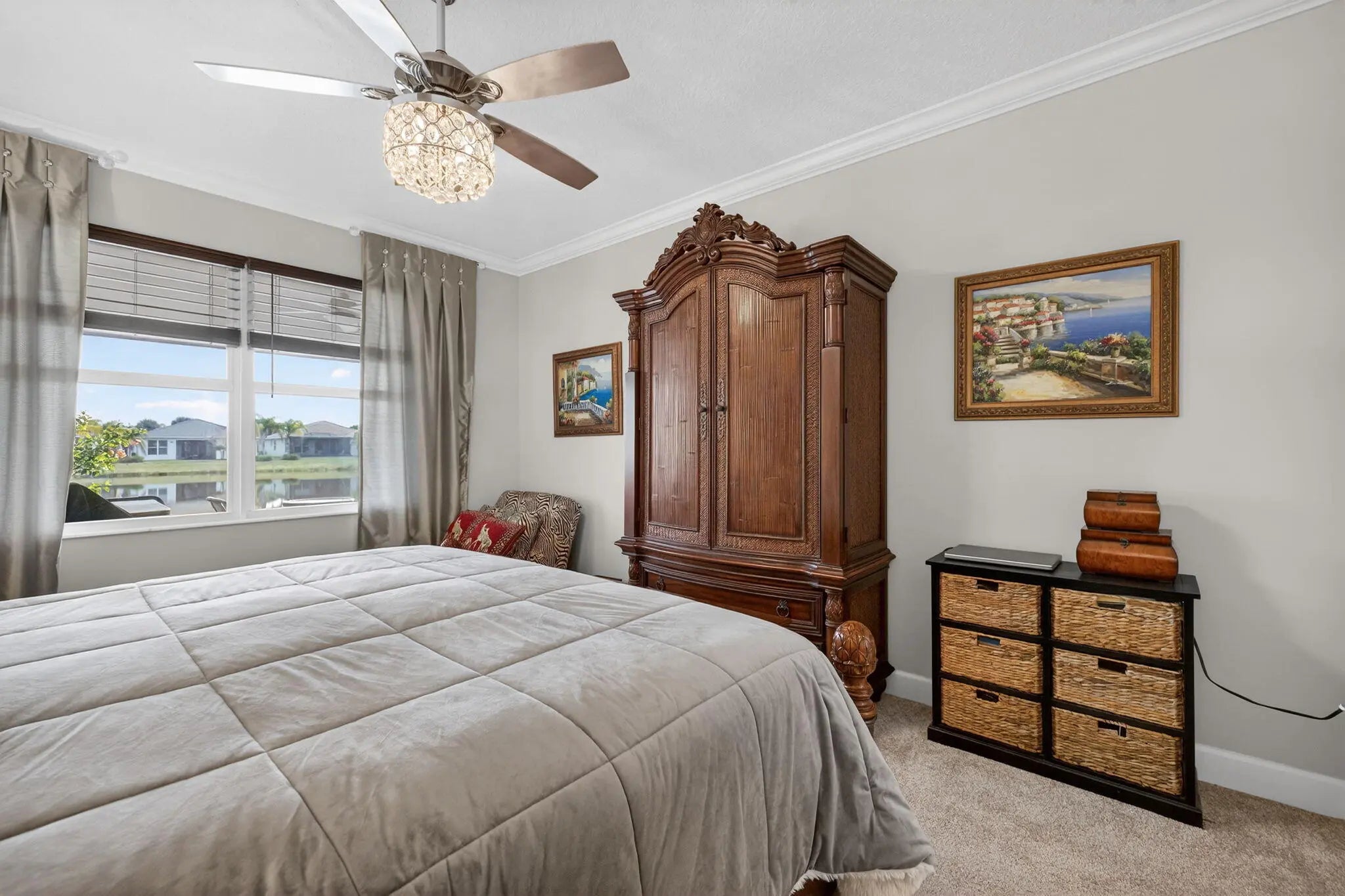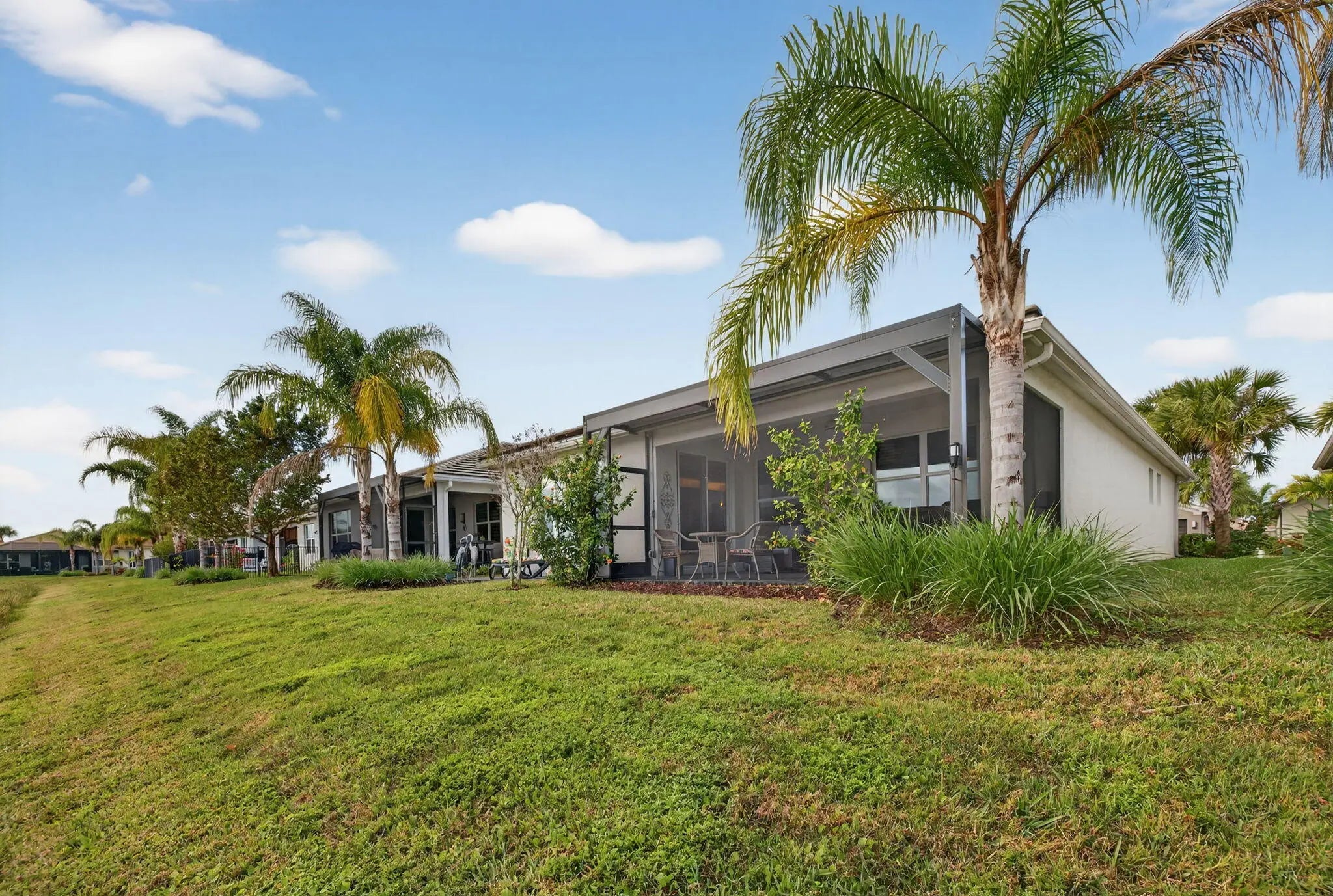 Valencia Cay at Riverland — Lakefront Heron Model with Extended Screened Lanai & Hot Tub. Step into effortless Florida living with this beautifully upgraded home, perfectly situated on a serene lakefront lot in the highly desirable Valencia Cay community at Riverland. Inside, you'll find designer upgrades throughout, including crown molding, decorator lighting, and stylish ceiling fans that elevate every space. The upgraded kitchen features enhanced cabinetry, upgraded appliances, and thoughtful finishes that blend function with modern elegance. The highlight of this home is the extended screened in lanai, designed for year round relaxation and entertaining. Overlooking the shimmering lake, this expansive outdoor living area includes a private hot tub, creating a peaceful sanctuary for morning coffee, sunset unwinding, or hosting friends and family. Lakefront Heron model with bright, open living spaces, Extended screened lanai with hot tub and tranquil water views. Designer upgrades throughout: crown molding, lighting, ceiling fans, upgraded kitchen with premium appliances. Located within Valencia Cay's world class 55+ Riverland lifestyle featuring resort style amenities, pickleball, fitness, arts & culture, and miles of scenic trails. This lakefront home delivers the perfect blend of comfort, style, and the signature Riverland lifestyle a rare offering in one of Port St. Lucie's premier active adult communities.