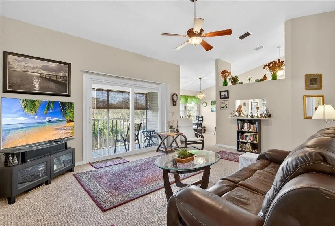 Bright & cheerful 3BR/2BA condo with lake views! Cathedral, textured ceilings! Private, tiled, screened porch. Courtyard views from master suite. Eat-in kitchen plus dining room. Walk-in closets. Impact windows! AC 2019. Re-pipe 2024. Neutral Berber carpeting or tiled throughout. Furniture included, many IKEA! Community amenities include: heated pool, fitness center, tennis/pickleball courts, racquetball, more! Convenient to golf, restaurants & shopping; less than 8 miles to the beach!
