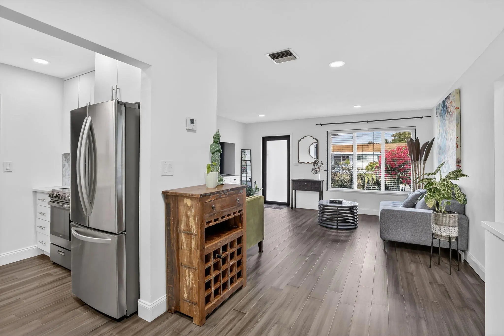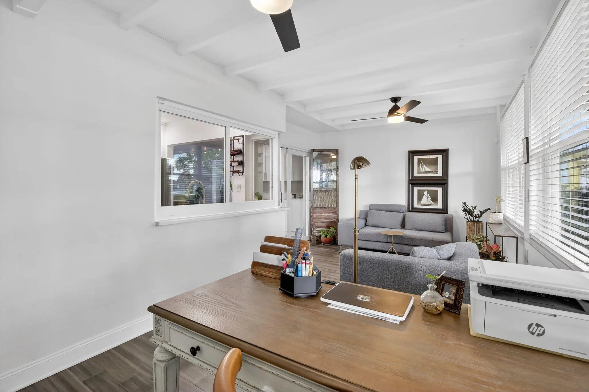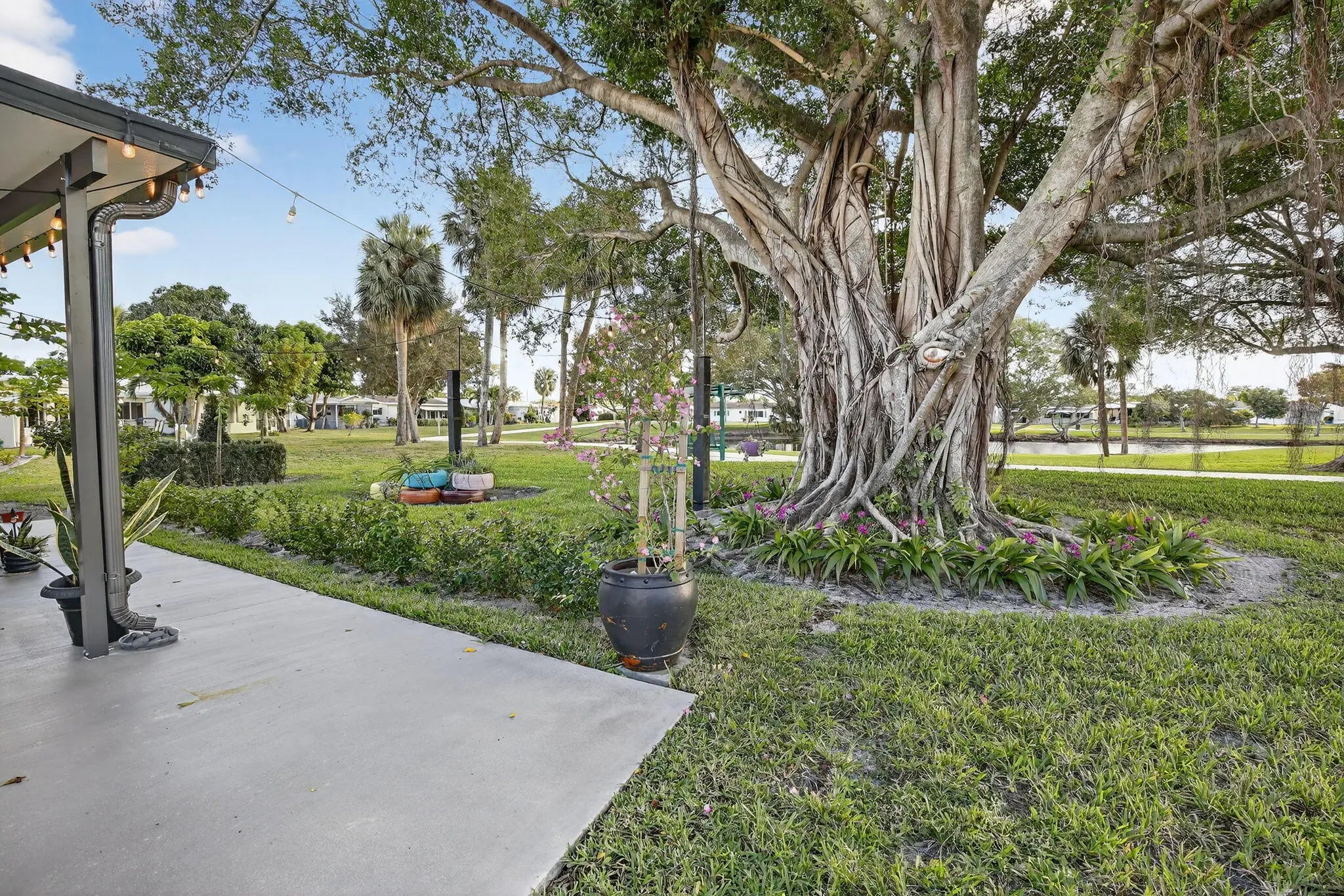 Beautifully updated, turnkey waterfront and waterview 2 bed, 2 bath home with garage, located in the desirable Mainlands Section 3, a 55+ comm. Major upgrades include a brand newer metal roof with warranty (2023), impact windows and doors, new underground plumbing, updated electrical, and an extended driveway. The interior features a contemporary kitchen with granite countertops and stainless steel appliances, renovated bathrooms, new flooring throughout, newer A/C, and fresh interior and exterior paint. The extended Florida room offers tranquil water views w/ensuite bathroom, creating a flexible living or guest space. The backyard is beautifully landscaped with mature shade trees and fruit trees, adding privacy and charm. Low HOA fee includes lawn care, clubhouse, and community pool.