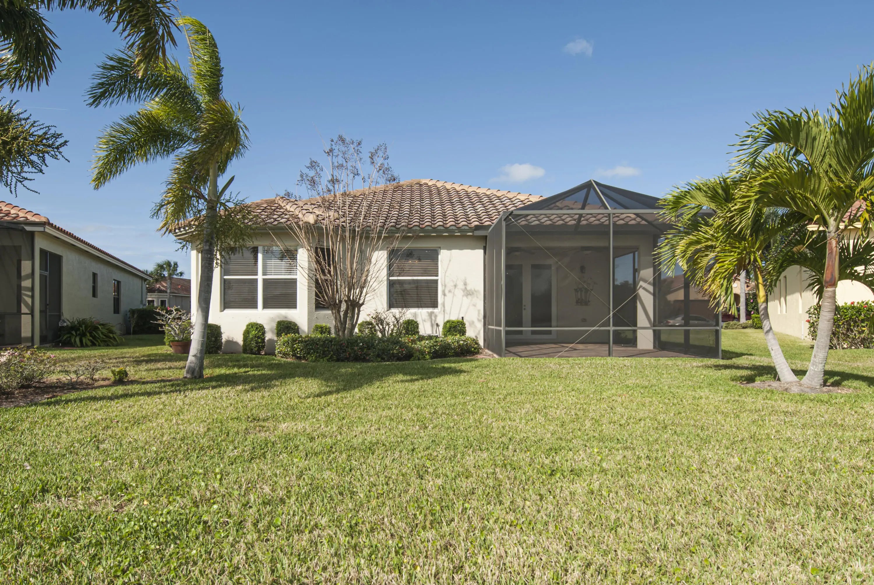 Experience the tranquility of Vero Lago with this beautiful home offering serene lake views from a spacious, covered, and extended screen-enclosed patio. This residence features three bedrooms, two bathrooms, and a two-car garage. The interior boasts cathedral ceilings, a modern kitchen with white cabinets, granite countertops, stainless steel appliances, and tile flooring throughout. Community Amenities: Gated community for enhanced security, Clubhouse, Heated pool, Fitness center, Tennis courts, Pickleball courts, Playground Location Benefits: Conveniently located near a variety of shops, restaurants, and pristine beaches, this Vero Lago home combines peaceful living with easy access to local attractions. Vero Beach Regional Airport is 6 miles away offering flights to & from multiple destinations. Room sizes are Approximate and must be verified.