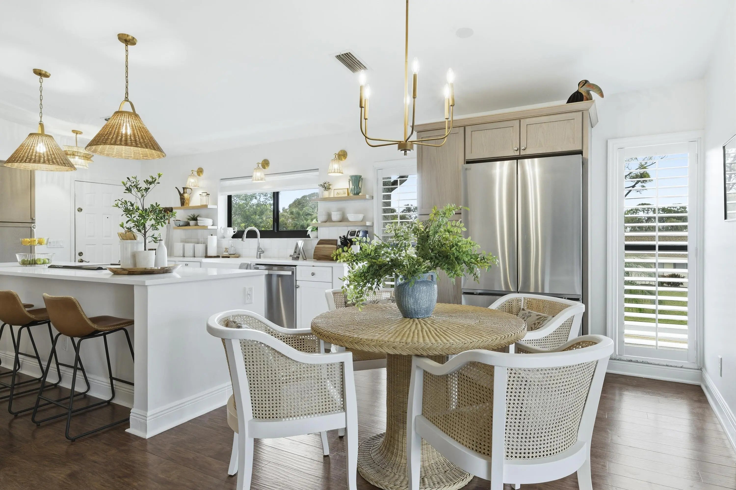 Beautifully renovated, turnkey 2BR/2BA condo in the heart of Jupiter. Located in the peaceful 55+ Wingfoot community, this light-filled residence features an open-concept layout with high-end finishes & an elevated coastal style. Recent upgrades include a new A/C, new water heater, 2023 roof, quartz countertops, new appliances & smooth ceilings. Ideal for entertaining with an expansive kitchen island & stylish bar area. Enjoy the oversized screened balcony, perfect for morning coffee or evening relaxation. This beauty is minutes to Jupiter beaches, waterfront dining, golf, shopping, & everyday conveniences. Perfect as a full-time residence, seasonal retreat, or investment opportunity.