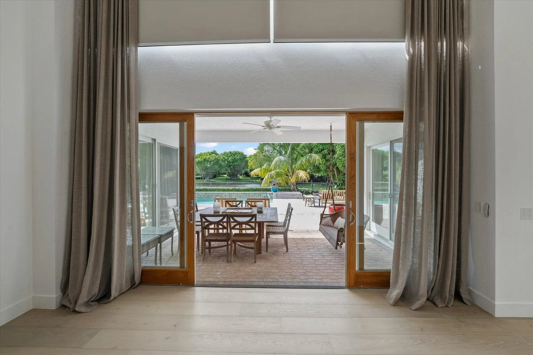 Modern residence in the most perfect setting offering iconic water views- one of the best views in Palm Beach Polo. Located in Bent Cypress neighborhood, this 2 story 5 bedroom, 5.1 bath home welcomes you with a grand open space wrapped by natural light. The Kitchen offers an oversized island with custom Dacor panel appliances perfect for entertaining. The Main Bedroom is set apart from the other bedrooms and provides an inviting peaceful sanctuary also with serene views. Upstairs there is a large Bedroom with ample sitting area affording extra privacy. Relax poolside or in the comfort of the covered patio as you watch the sun set each afternoon. Resort living at its best!