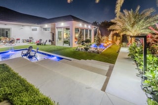 Luxurious Private Estate - New Construction (2025) | Turn-Key, Low-Maintenance Living Set on A nearly 2-acre high-and-dry agricultural estate lot fully surrounded by a concrete wall, this exceptionally private and secure residence is accessed through automated entry gates and protected by a full security camera system—creating a true lock-and-leave level of privacy and peace of mind. With over 5,000 square feet of thoughtfully designed living space, the home offers 6 bedrooms, 5 bathrooms, and an oversized 4-car garage with ceiling height and layout suitable for lifts. A long, private driveway provides extensive parking while keeping the home visually and physically separated from the outside world. This home was designed for modern living without modern headaches. Clean architectural lines and contemporary materials are intentionally paired with warm finishes, natural textures, and a highly livable layout resulting in a home that feels calm, comfortable, and effortless to live in. Every design choice prioritizes daily ease, long-term durability, and minimal upkeep. As a brand-new 2025 construction, the property eliminates the concerns that come with older estates, no deferred maintenance, no costly renovations, and no system upgrades needed. Everything from structure to mechanicals is new, efficient, and under warranty, allowing owners to simply move in and enjoy. Built well beyond local standards, the home features upgraded steel reinforcement for superior structural integrity and storm resistance. High-efficiency mechanical and insulation systems significantly reduce ongoing energy costs while maintaining consistent interior comfort year-round. A gas water heater provides reliable, endless hot water without the limitations of electric systems. The resort-style outdoor environment is equally low-maintenance and highly usable, featuring a stunning pool and private expansive open yard with Estate-style landscaping that enhances privacy while remaining clean, manageable, and intentionally designed for longevity rather than constant upkeep. Additional highlights include: A complete indoor health and wellness retreat including sauna, steam room, built-in cold plunge, as well as dual outdoor spa showers. City water Hidden, climate-controlled attic storage rooms Modern systems engineered for long-term reliability Builder's personal residence with no expense spared New construction warranty for peace of mind Still time to participate in select finishing touches This is true turn-key estate living, a modern, warm, and highly private home designed so the next owner can focus on living, not maintaining. No projects, no renovations, no surprises, just a secure, effortless lifestyle from day one.