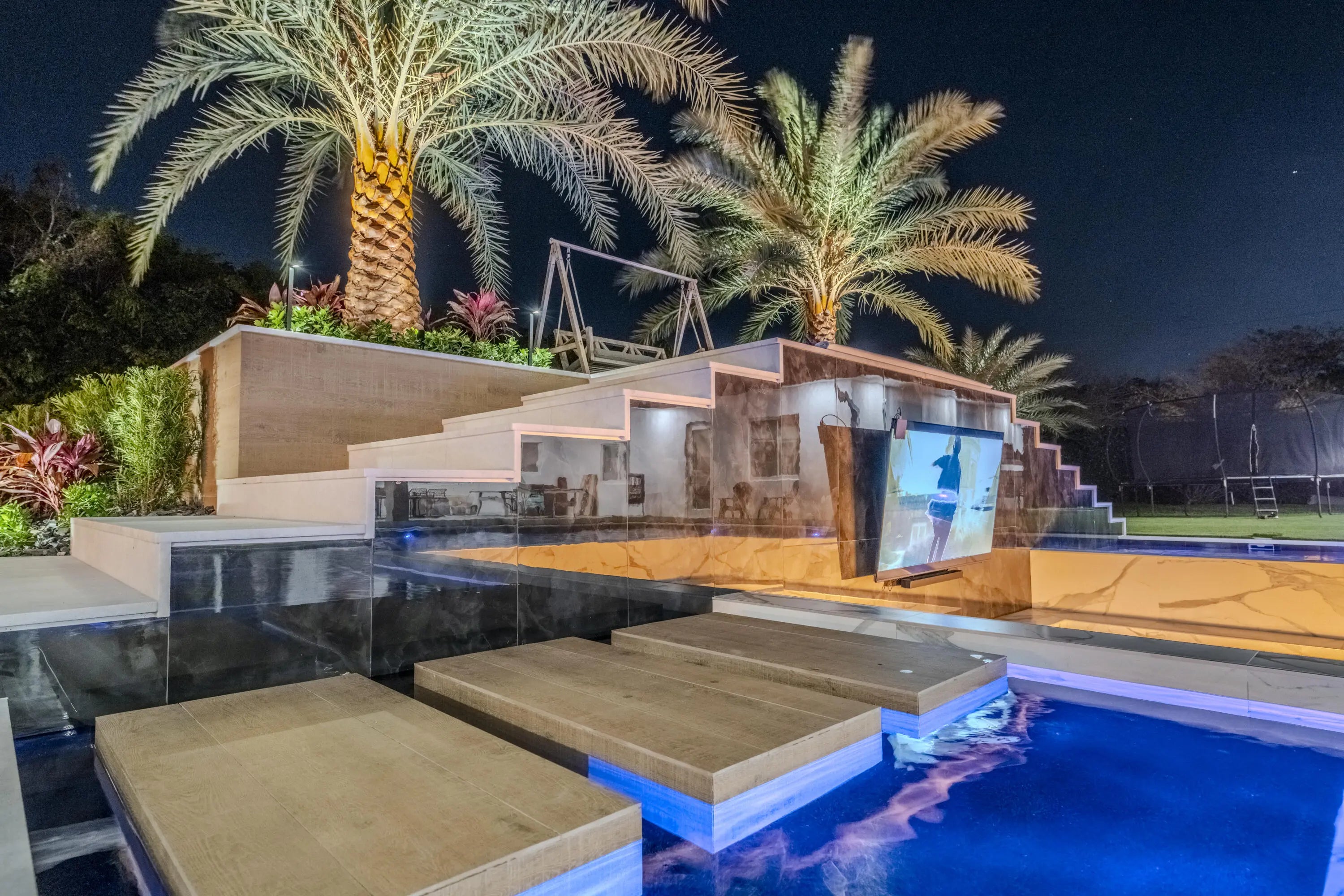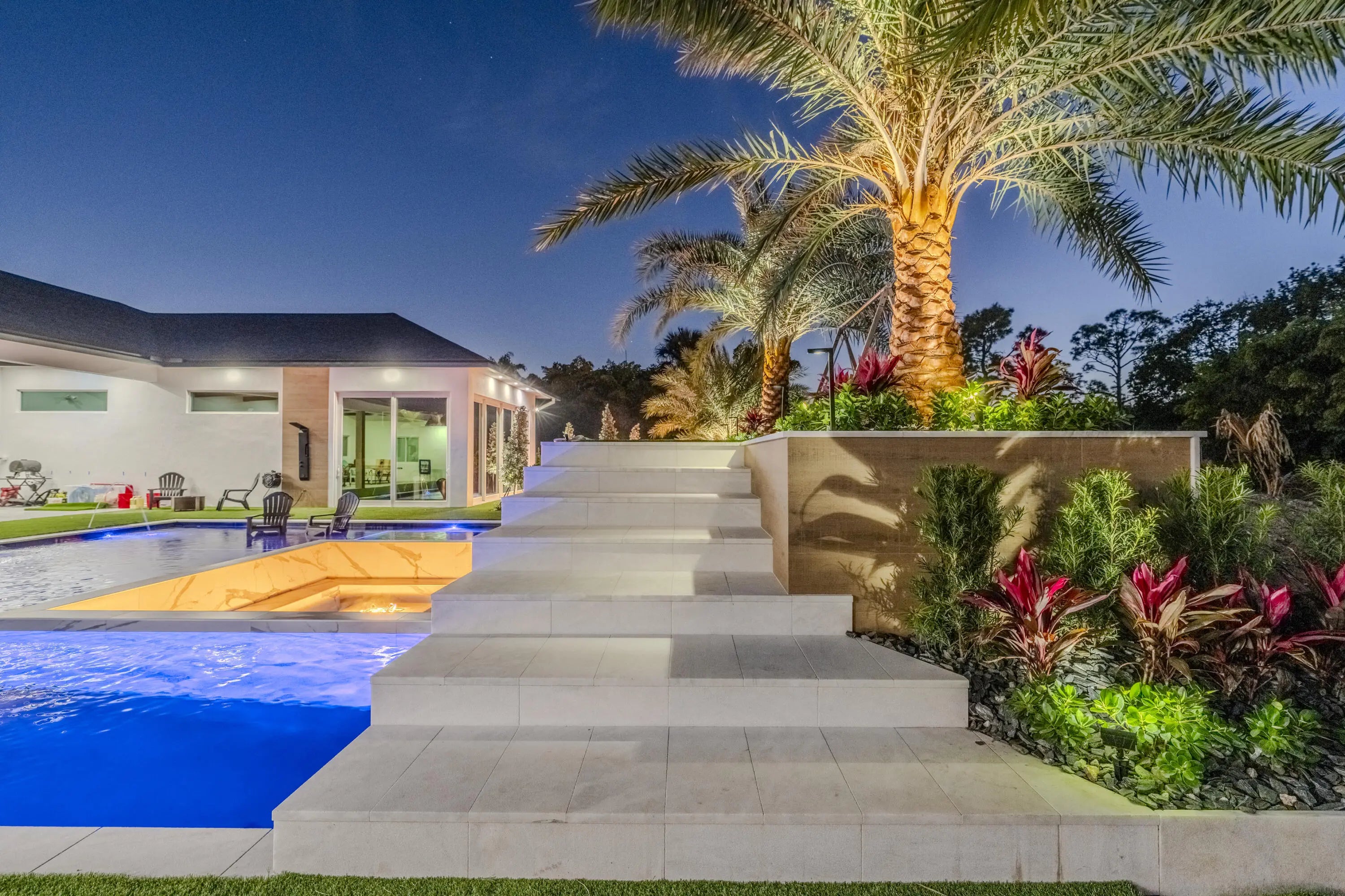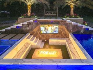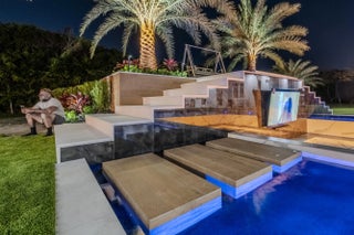 Built-in Barbecue, Outdoor Shower, Custom Lighting, Summer Kitchen, Pool Bathroom
