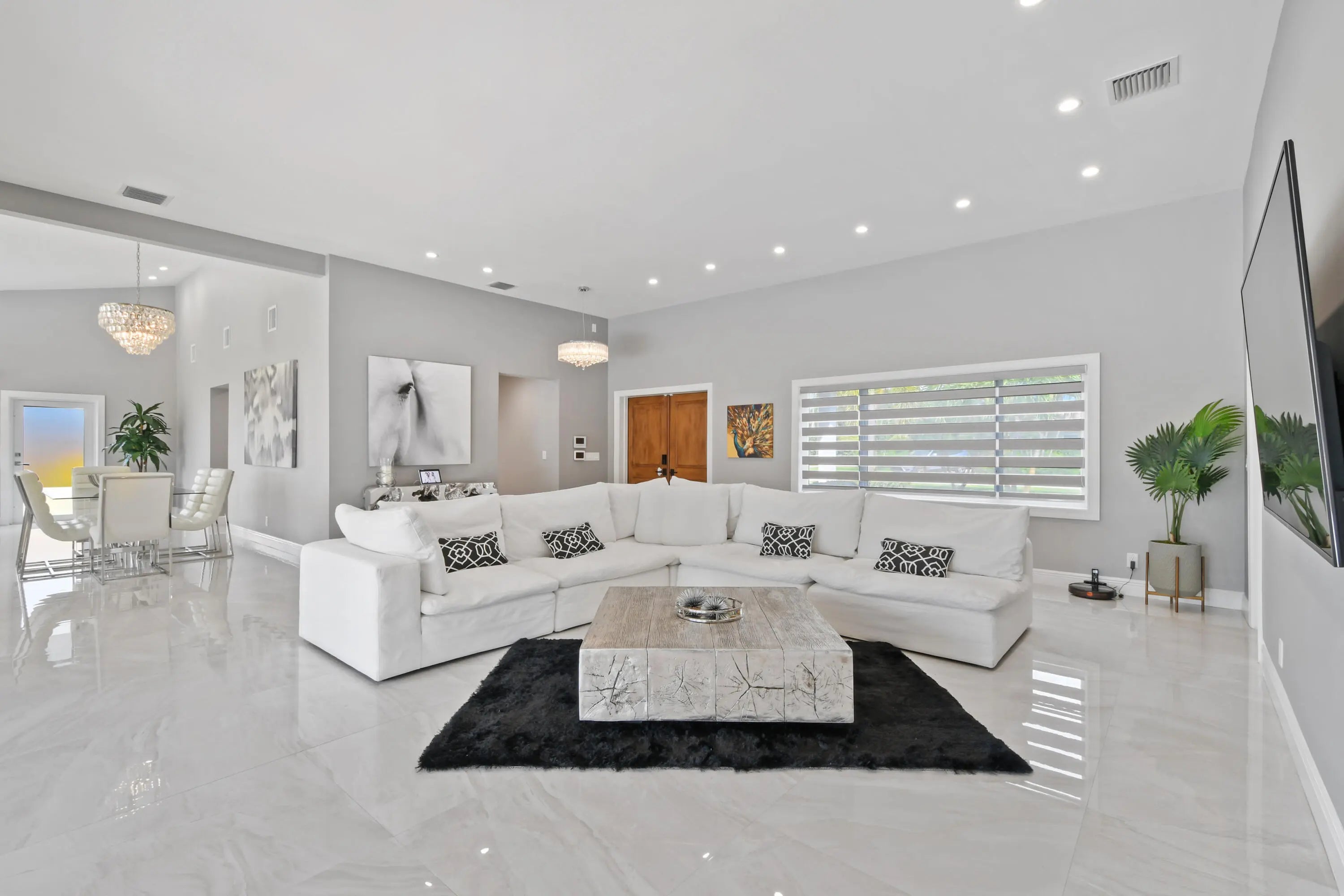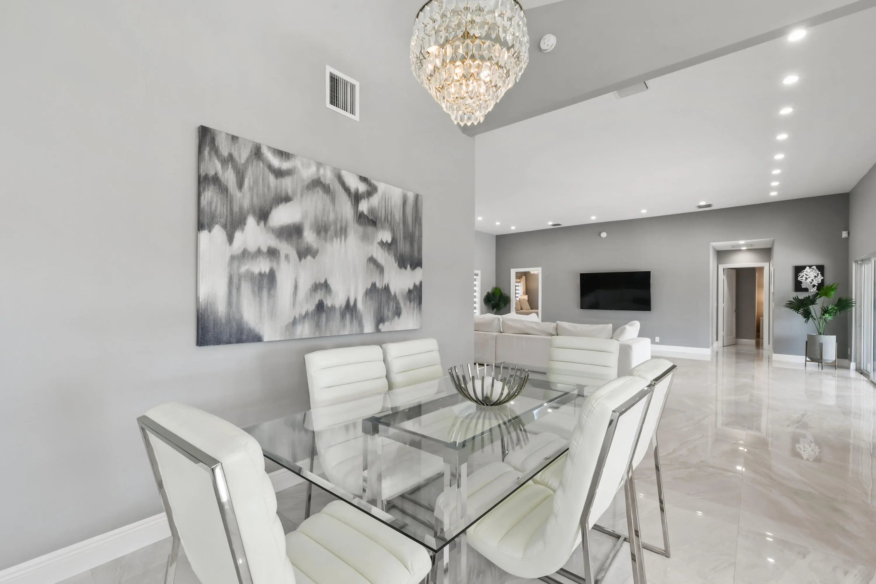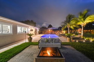 Step into elegance with this beautifully updated 4-bedroom, 3-bathroom rental, offering the perfect blend of luxury and functionality. From the moment you enter, you'll be welcomed by high ceilings and gorgeous tile flooring throughout, creating a bright and sophisticated atmosphere. The open-concept kitchen is ideal for everyday living and entertaining, featuring trendy white cabinets, Corian countertops, stainless steel appliances, and a spacious island with high-top seating. The primary suite is generously sized and includes a large walk-in closet and an ensuite bathroom with a walk-in shower, soaking tub, and double sinks for added comfort. Step outside to your spacious backyard! Enjoy year-round entertaining under the covered patio, relax in the sparkling pool and jacuzzi, rinse off in the convenient outdoor shower, and take advantage of the playground. This stunning rental offers style, space, and resort-style amenities in one exceptional home. Available for lease, schedule your private showing today.