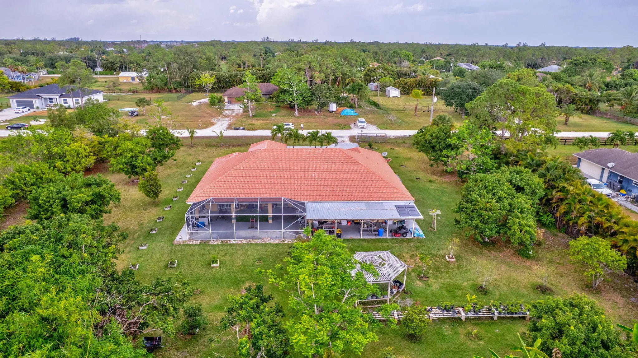 Stunning 4 bedrooms, 3 baths home on over 1 acre with luxurious upgrades; This beautiful remodeled home offers a perfect blend of modern luxury and natural beauty. With an abundance of tropical fruit trees like lychee, mango, sapodilla,....surrounding the property, you'll enjoy your own private orchard right at your doorstep. Inside, the home boasts elegant 24 inch Italian tile throughout and impressive volume ceilings, creating a spacious, airy atmosphere. The gourmet kitchen features stunning Quartz countertops, perfect for both everyday cooking and entertaining. This home has been completely remodeled and is in prestige condition, showing like a model home. Additional highlights include a screened-in patio for outdoor living, an open patio for additional space, and a whole house water filtration system and UV purification. This home offers not only style and comfort but also functionality and peace of mind. A true gem that is move-in ready and waiting for you to call it home.