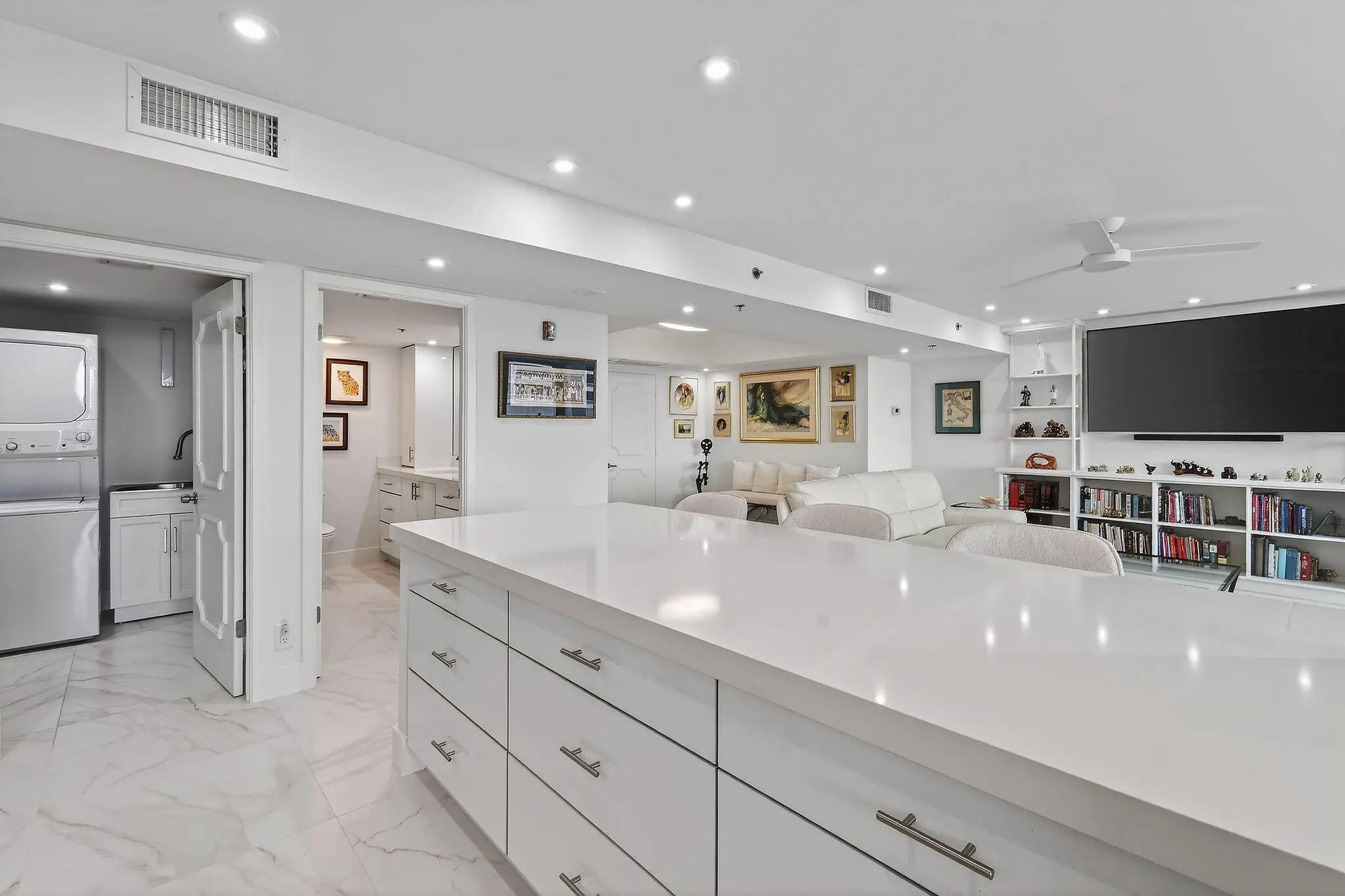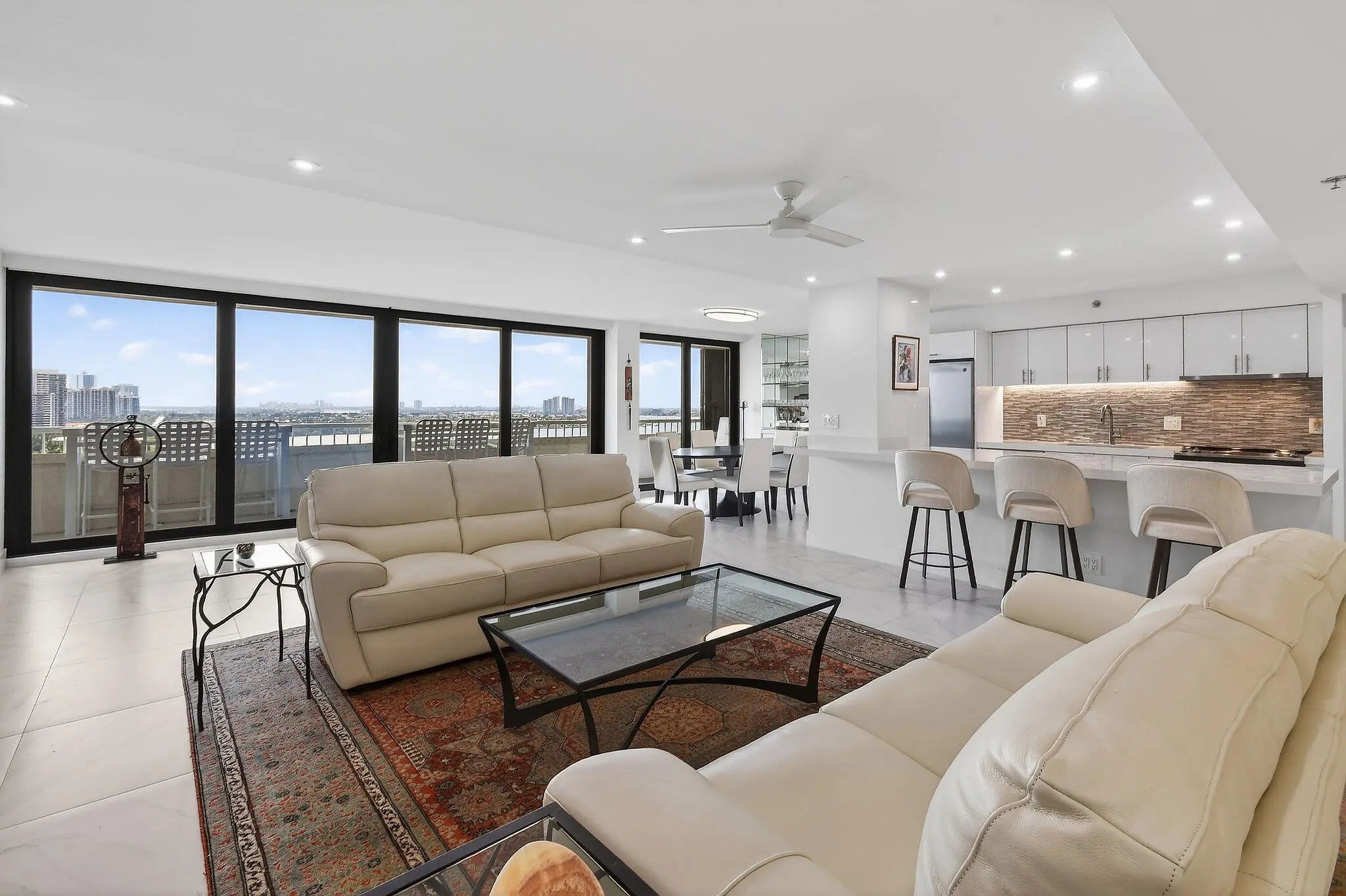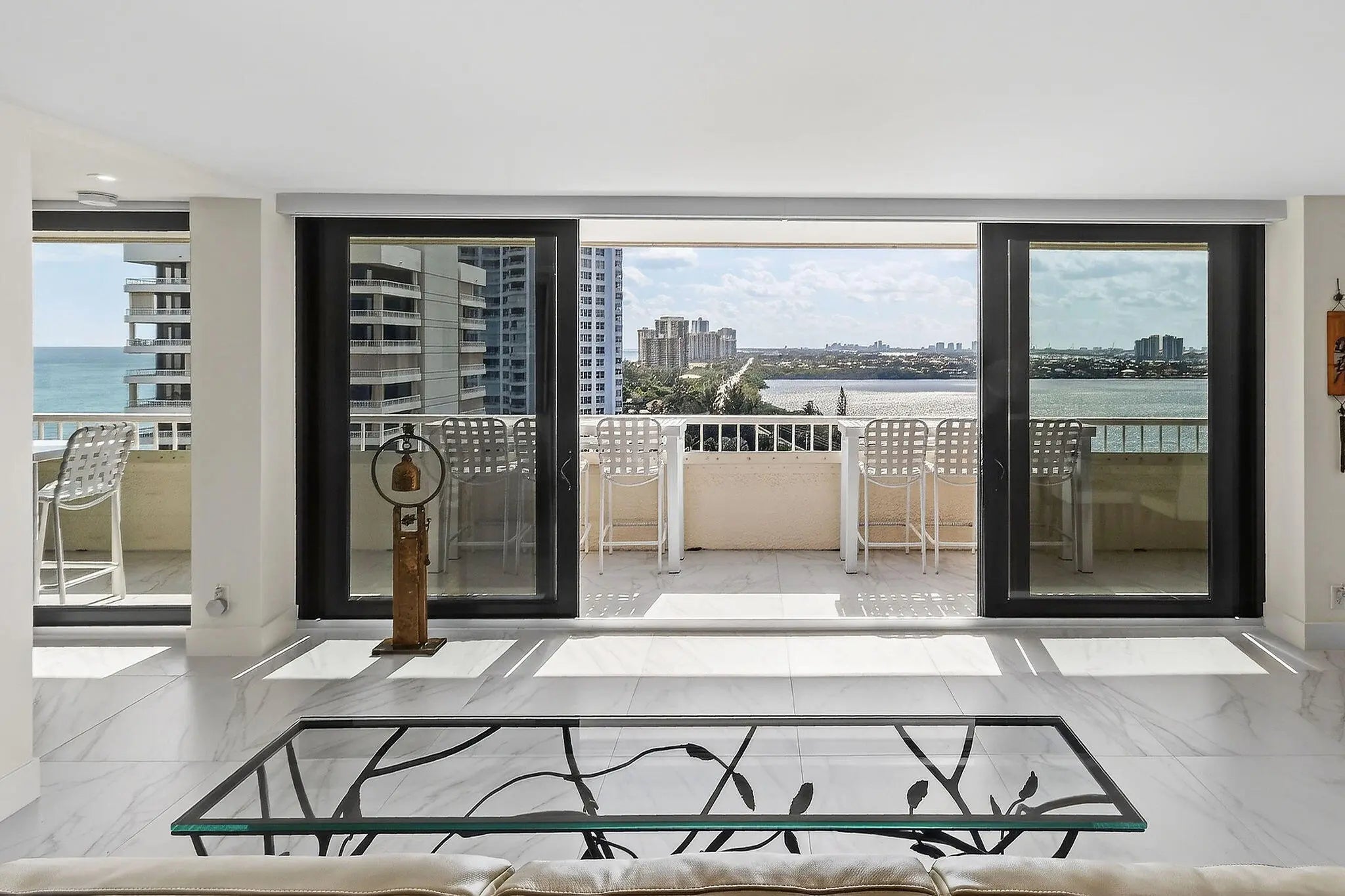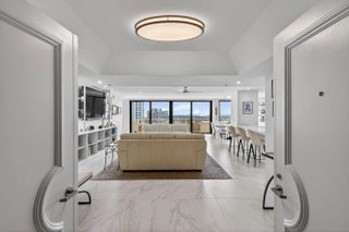 Welcome to The Reaches, where refined coastal living meets thoughtful design. This beautifully renovated 11th-floor residence, completed in 2021, offers 2,357 total square feet (2,132 under air) with a spacious open-concept layout, exceptional built-in storage, and desirable southern exposure. Originally designed as a 3-bedroom, 2.5-bath residence, the third bedroom has been thoughtfully reimagined as an expansive custom walk-in dressing room, easily convertible back to a bedroom if desired. Floor-to-ceiling windows fill the home with natural light and showcase breathtaking direct ocean and Intracoastal views stretching to Palm Beach Island. The chef's kitchen features Absolute White quartz countertops throughout the kitchen and baths, GE appliances, and a 600 CFM vent hood. All window treatments are remote-controlled. All windows and sliders are Miami-Dade hurricane rated, with accordion shutters on the balcony for added peace of mind. Additional upgrades include a new AC, water heater, and electrical panel (2021), full-size stacked washer and dryer, Broadstar WiFi, and quarterly pest control service. Enjoy resort-style living at The Reaches with a spectacular oceanfront pool deck, exceptional sun exposure, and the soothing sounds of the Atlantic shoreline. All information deemed reliable but not guaranteed. Measurements approximate.