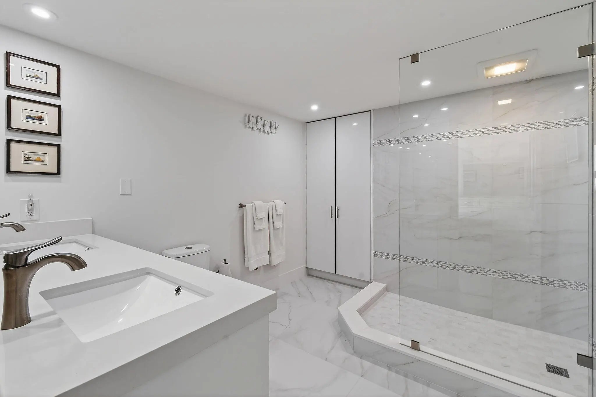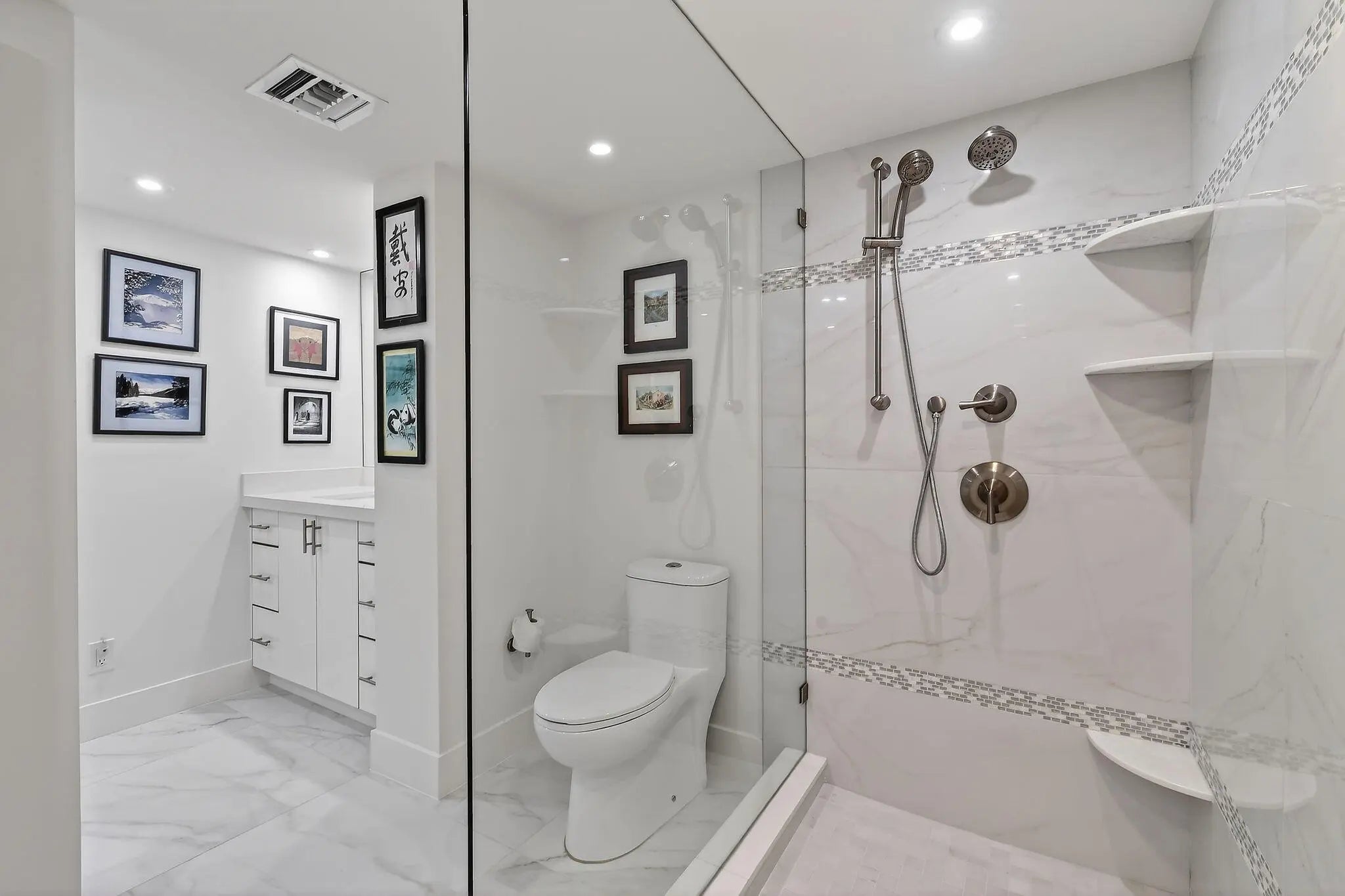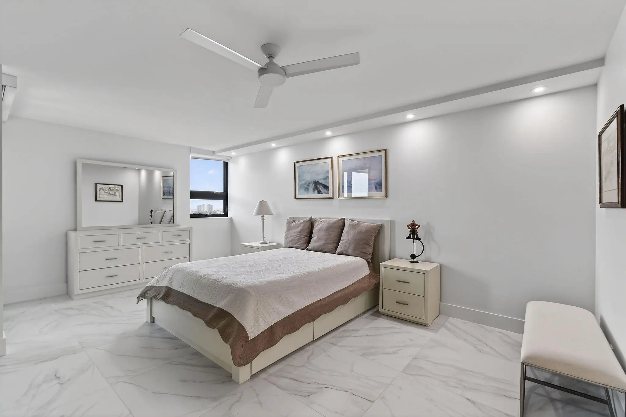 Welcome to The Reaches, where refined coastal living meets thoughtful design. This beautifully renovated 11th-floor residence, completed in 2021, offers 2,357 total square feet (2,132 under air) with a spacious open-concept layout, exceptional built-in storage, and desirable southern exposure. Originally designed as a 3-bedroom, 2.5-bath residence, the third bedroom has been thoughtfully reimagined as an expansive custom walk-in dressing room, easily convertible back to a bedroom if desired. Floor-to-ceiling windows fill the home with natural light and showcase breathtaking direct ocean and Intracoastal views stretching to Palm Beach Island. The chef's kitchen features Absolute White quartz countertops throughout the kitchen and baths, GE appliances, and a 600 CFM vent hood. All window treatments are remote-controlled. All windows and sliders are Miami-Dade hurricane rated, with accordion shutters on the balcony for added peace of mind. Additional upgrades include a new AC, water heater, and electrical panel (2021), full-size stacked washer and dryer, Broadstar WiFi, and quarterly pest control service. Enjoy resort-style living at The Reaches with a spectacular oceanfront pool deck, exceptional sun exposure, and the soothing sounds of the Atlantic shoreline. All information deemed reliable but not guaranteed. Measurements approximate.