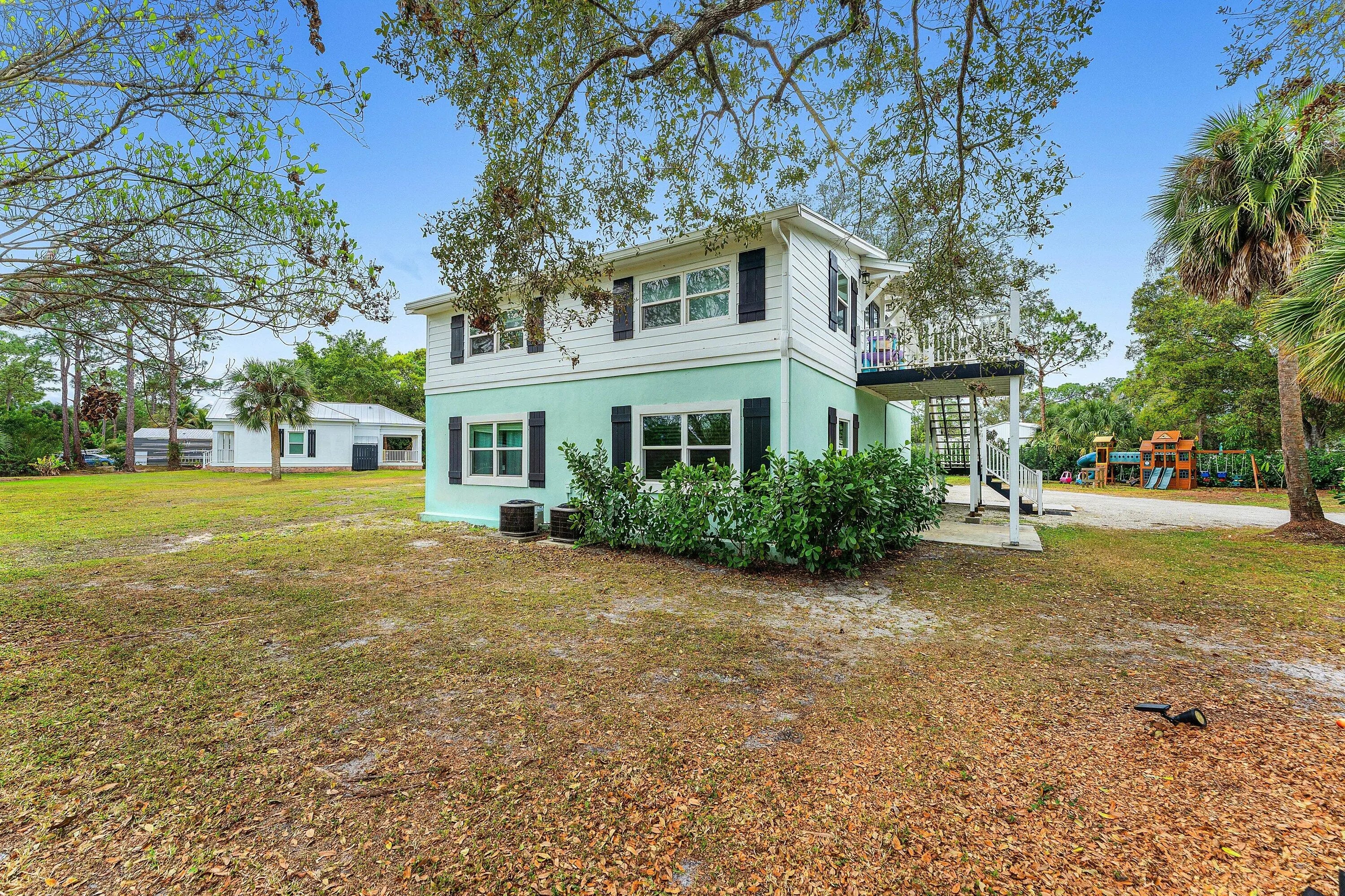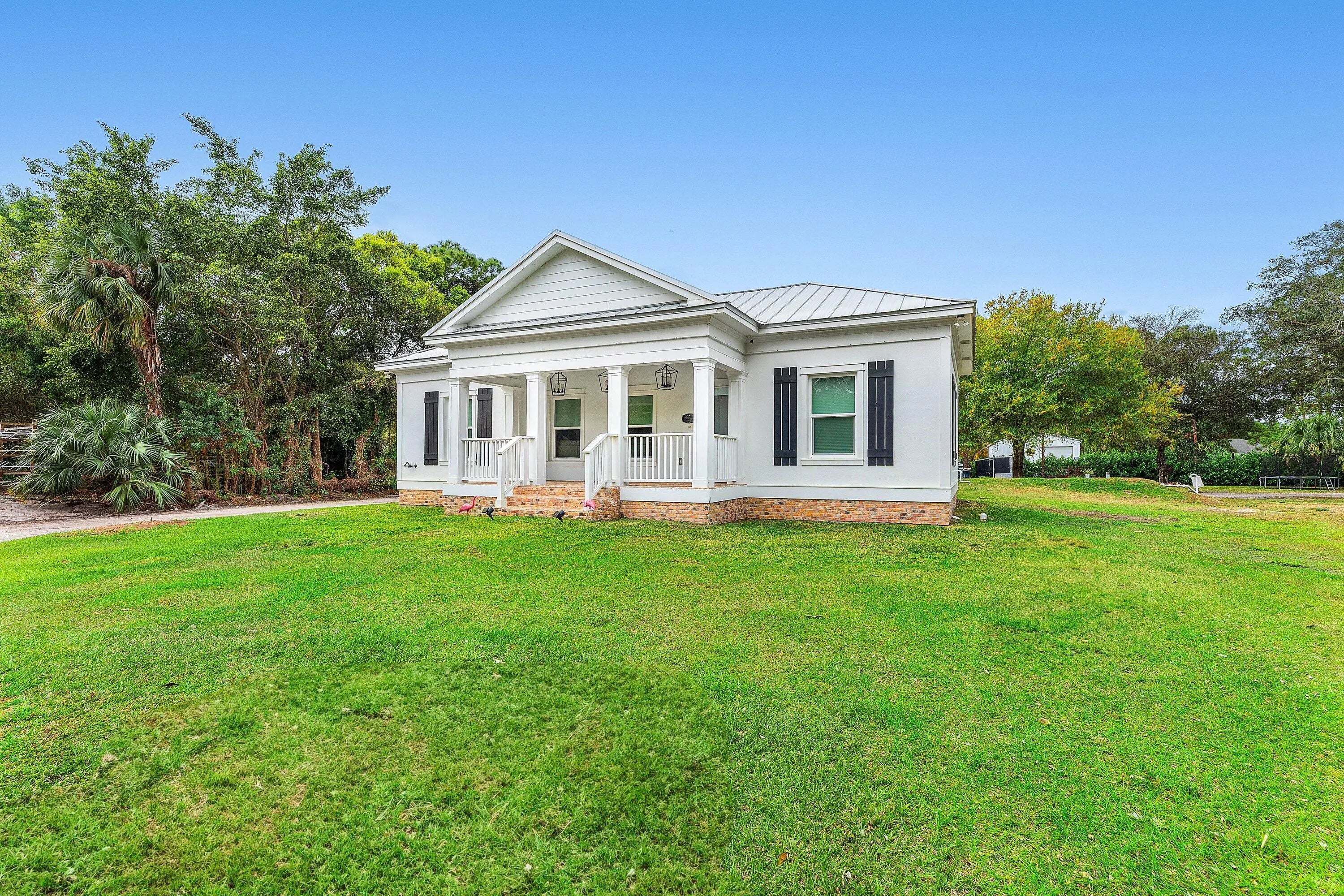 MAKE THIS YOUR HOMESTEAD!!!!! PRIVATE 2.5 ACRES ON A PAVED ROAD! MAIN HOUSE, GUEST HOUSE, POLE BARN/WORKSHOP, POND, GAZEBO, AND A TIKI HUT- WHAT MORE COULD YOU ASK FOR IN A HOMESTEAD? This exceptional property is situated on a private, fully fenced 2.5 acres; with two private entry driveways off a paved road. The property features two single family detached homes, expansive outdoor amenities, and beautifully maintained grounds. The main residence offers four bedrooms and two bathrooms, equipped with a water filtration system and two A/C systems (2022), Roof (2019), and Impact windows and sliders. The second bathroom is incomplete and ready for the new owner to add their finishing touches! A separate guest house built in (2022) provides approximately 1,000 square feet of living space and is constructed of CBS with a metal roof and impact windows. This inviting home includes two bedrooms and two bathrooms, engineered hardwood flooring, shiplap accents, a front & back porch with brick pavers, butcher block counter tops and ample storage. Perfect for guests, permanent stay family members; or lease it and generate rental income! A 1,950-square-foot pole barn/workshop features an off-grid battery system and solar roof panels, offering excellent flexibility for storage, work, or hobbies. Outdoor highlights include mature calusia hedges, avocado and mango trees, a beautiful fully stocked pond with gazebo and deck, and a brand-new tiki hut. With two separate driveway entrances, you can provide private access to the main/primary home and your guest house. Operate your business from your very own 2.5 acre backyard. The grounds are clean, cleared, professionally landscaped, and meticulously maintained, creating a private and serene setting with endless possibilities. If you are looking for peace and quiet without restrictions, this incredible Jupiter Farms property awaits you! Full build-ready engineering plans for a pool & spa are available with the purchase of property.