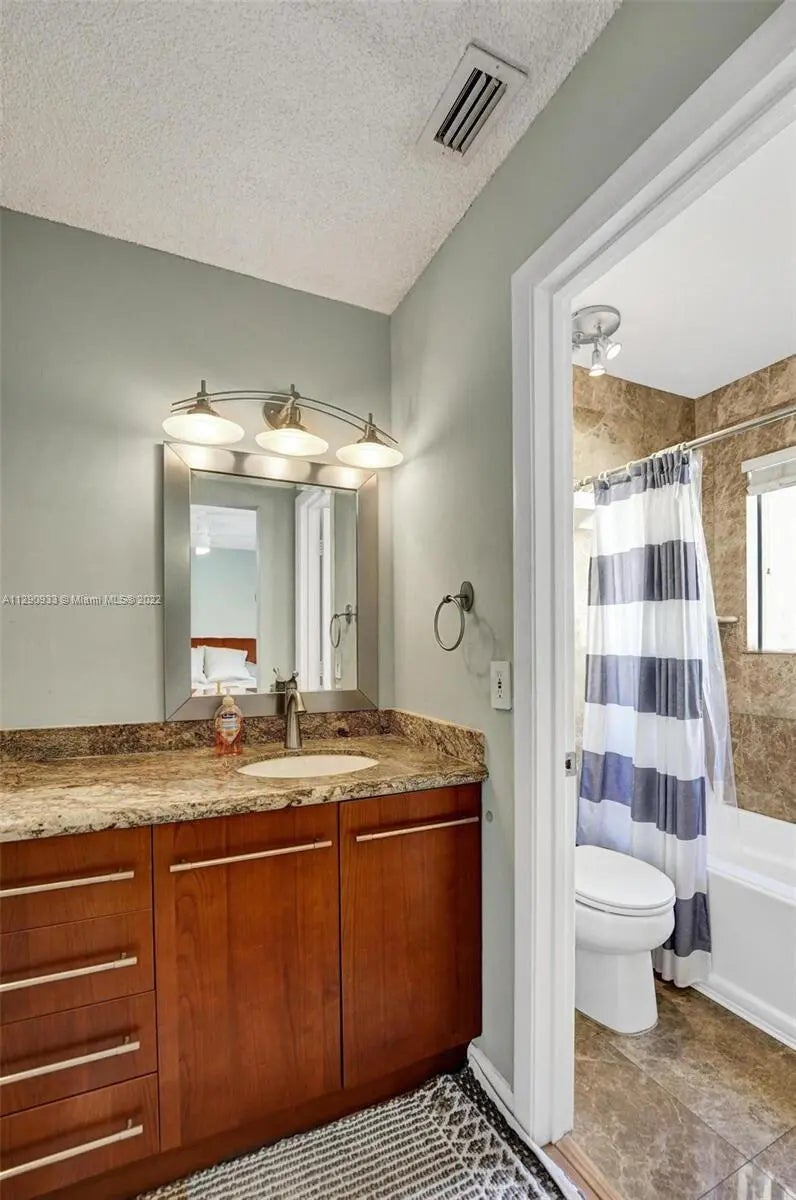 Welcome to this beautifully renovated and fully furnished 3 bedroom 3 bathroom townhome in the desirable Pineapple Walk community, offering the comfort and privacy of a single family home with the convenience of townhome living. Enter through your own private courtyard into a bright, thoughtfully designed residence featuring modern finishes and an inviting layout. The main level offers a flexible bedroom and full bathroom currently set up as a den or home office alongside an updated kitchen with espresso tone cabinetry, granite countertops, stainless steel appliances, and a clean, contemporary backsplash. A dedicated laundry room with washer, dryer, and additional storage is conveniently located just off the kitchen. Upstairs, you will find 2 spacious ensuite bedrooms, each with its own bathroom. The primary suite features a renovated spa style bathroom with a walk in shower, textured wave tile, pebble stone accents, frameless glass, and abundant natural light. The secondary bathroom provides a warm, classic feel with a wood vanity, granite countertop, and tub shower combination. The living and dining areas are designed for both everyday comfort and entertaining, with neutral flooring, a formal dining space, and sliding glass doors that open directly to the private courtyard, creating seamless indoor and outdoor living. The courtyard offers a peaceful, enclosed setting with low maintenance turf, comfortable seating, and a relaxing hammock. Pineapple Walk is a charming, well established, all ages and pet friendly community consisting of just 48 townhomes and villas, ideally located in the highly desirable Boca Del Mar area of central Boca Raton. This intimate neighborhood offers a welcoming, well maintained grounds, lush tropical landscaping, and an inviting residential feel. Residents enjoy a beautifully maintained, heated community swimming pool and spa, conveniently located just steps from every home, providing a relaxing space to unwind and enjoy the Florida lifestyle year round. All schools are A rated!! The community is known for its walkable layout and peaceful setting, making it an ideal choice for those seeking a friendly, laid back environment that welcomes both families and pets. With its smaller size and thoughtful design, Pineapple Walk offers privacy, comfort, and a true neighborhood feel while remaining centrally located. Residents enjoy a prime central Boca Raton location just minutes from world class beaches, shopping, dining, and entertainment, including Town Center Mall and Mizner Park. Everyday conveniences, restaurants, and houses of worship are nearby, many within walking distance. Located in Boca Raton's highly sought after A rated school district with easy access to I 95 and the Florida Turnpike, Pineapple Walk offers exceptional convenience in one of Boca Raton's most desirable areas.