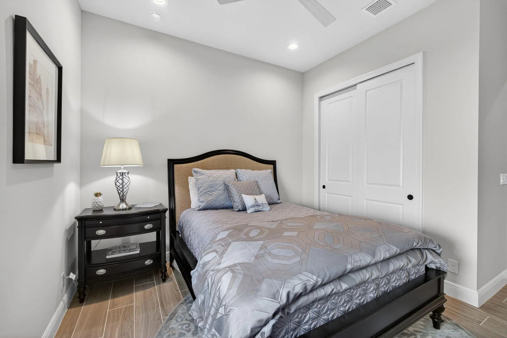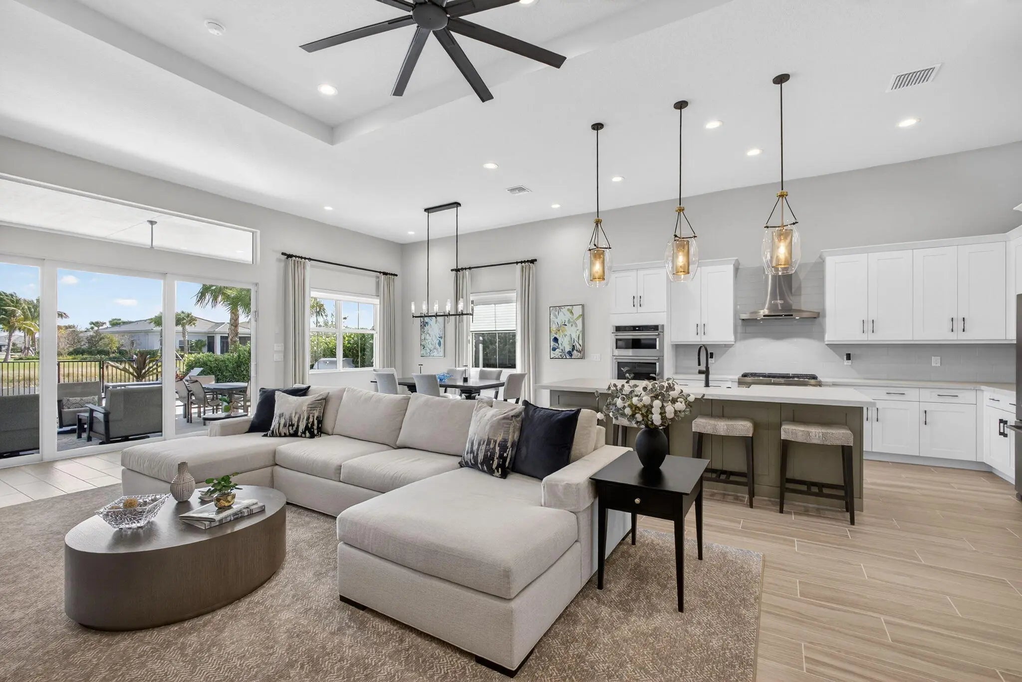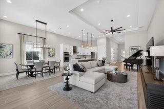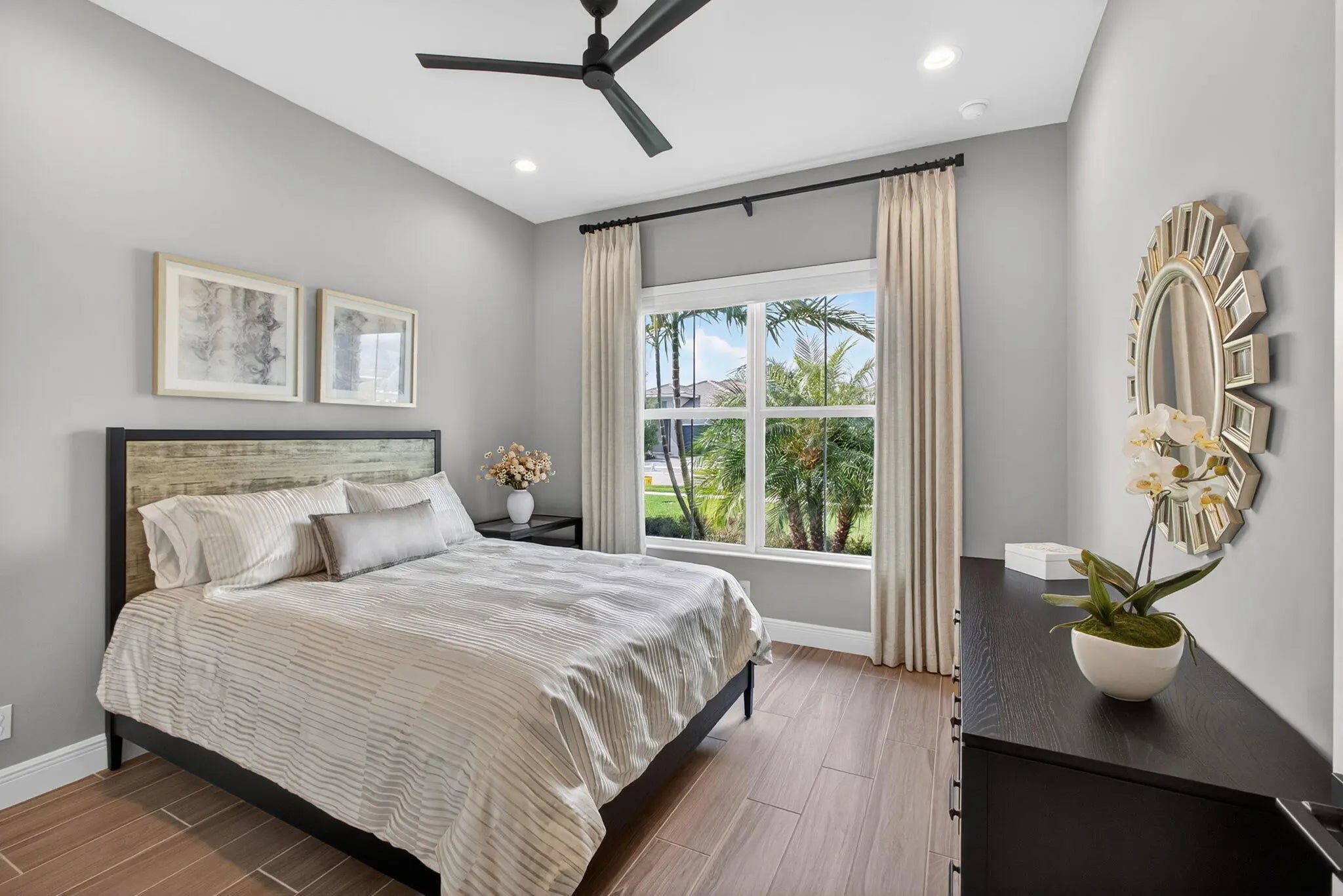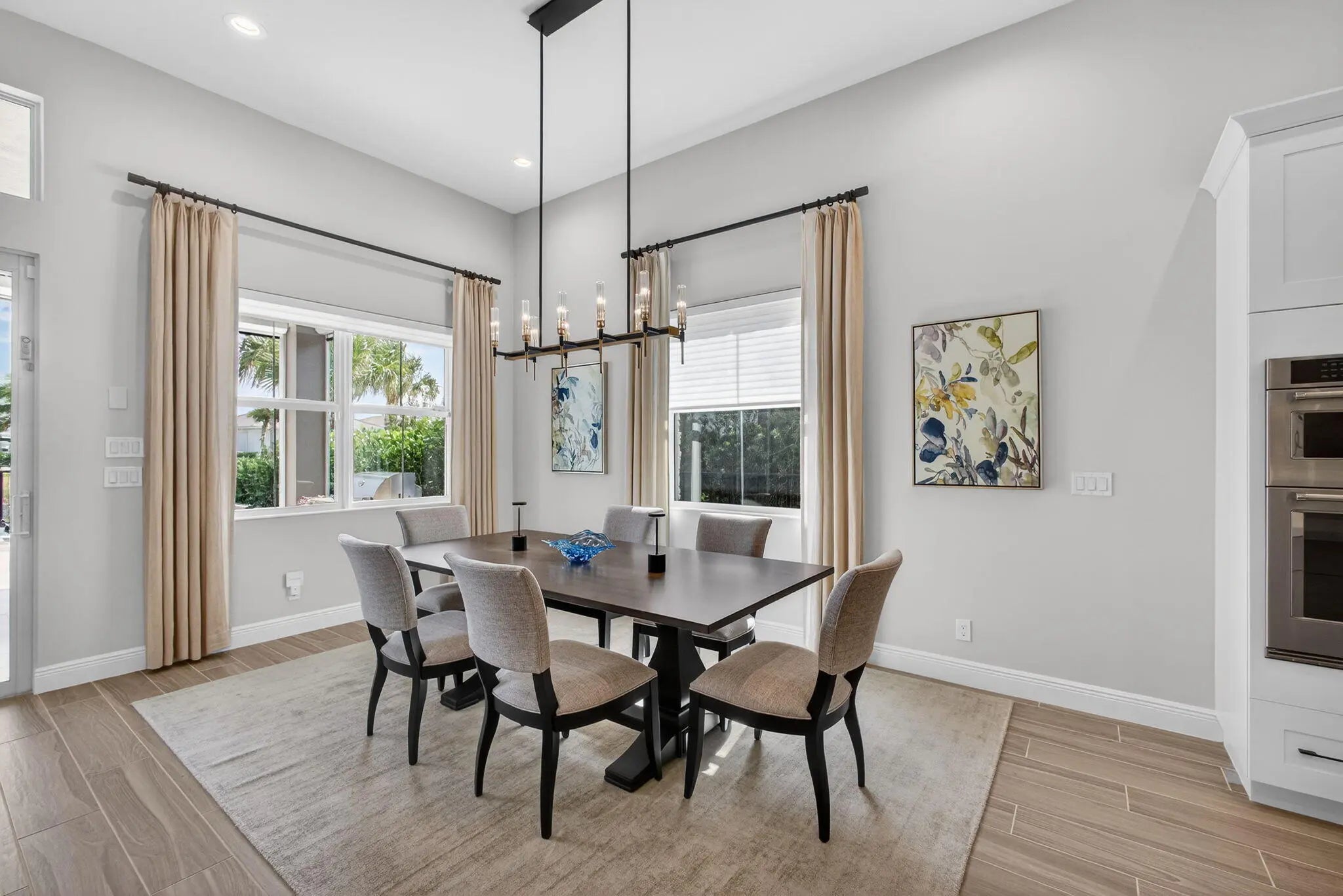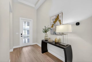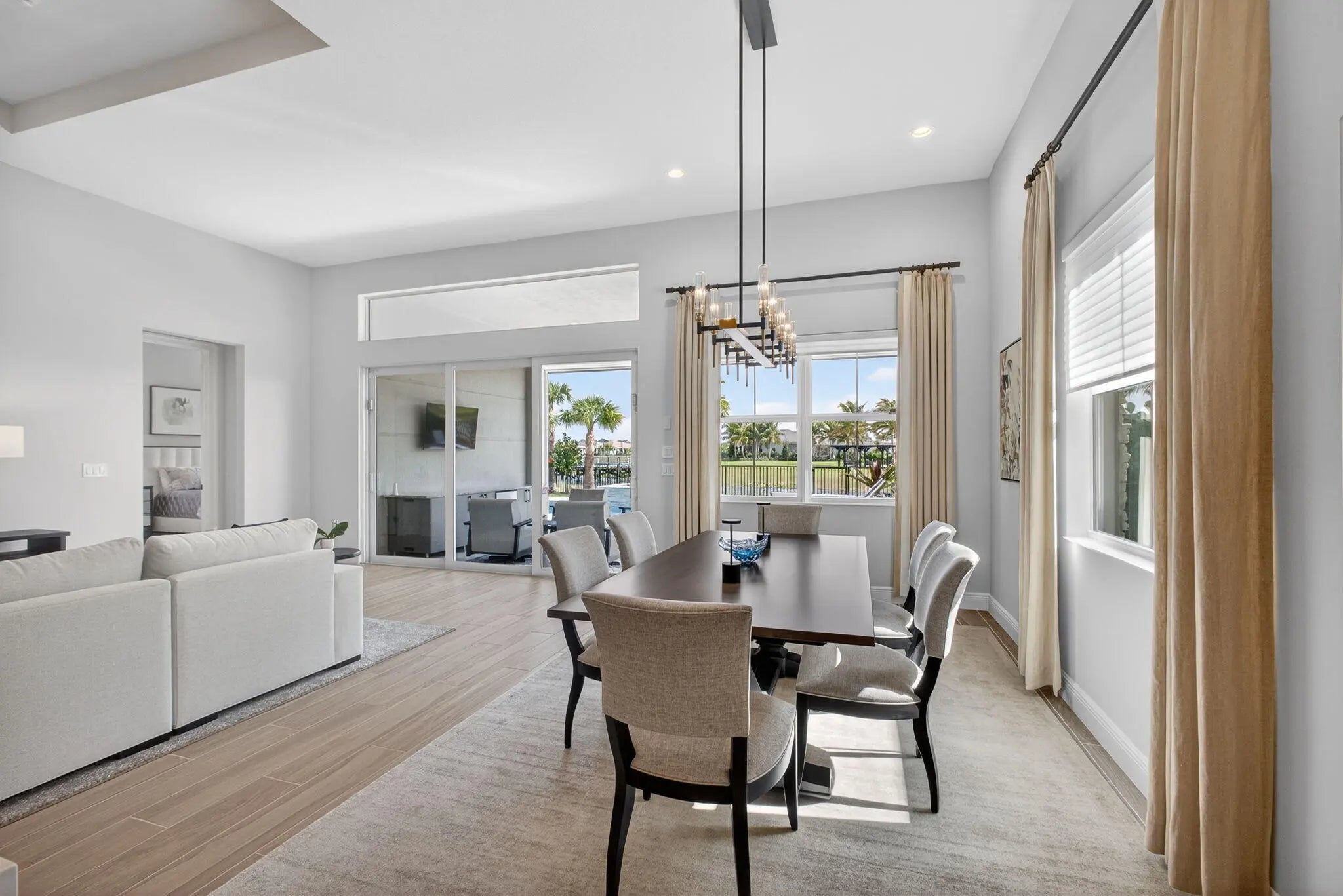 This beautifully appointed three-bedroom plus office, three-bath residence offers an open, light-filled floor plan with a refined Luxury aesthetic and breathtaking lake views. Enjoy magnificent sunrises from the oversized lanai patio, creating an idyllic setting for both entertaining and peaceful relaxation by the water. The tropical-inspired backyard is a private retreat, featuring a custom upgraded heated pool and spa, astro turf, lush enhanced landscaping, an outdoor shower, upgraded designer pavers, and remote-controlled patio screens that allow for year-round comfort and seamless indoor-outdoor living. This home reflects thoughtful custom design and extensive upgrades throughout, including custom built-ins in the office and hallway niche, designer lighting fixtures, ceiling fans, built-in closets, and custom Hunter Douglas blinds and drapery on all windows. Additional enhancements include a whole-house RFG air purification system, electrical upgrades, a whole-house water filtration system, and a custom outdoor kitchen with cabinetry. Extended Great room, Dining room, Primary Suite and garage. This exceptional home blends luxury, comfort, and modern functionality, offering an elevated lifestyle in a tranquil waterfront setting. Experience private, resort-style living at its finest in this vibrant Regency Avenir community. Located in the sought-after Palm Beach Gardens, this community blends contemporary home designs with exceptional amenities, all set in a relaxed and inviting atmosphere. Residents of Regency at Avenir in sought after Palm Beach Gardens enjoy exclusive access to The Pearl, the community's 22,000 sqft private clubhouse offering an onsite activities director, a wide array of special interest clubs, activities, and events. Amenities at The Pearl include a picturesque resort-style pool, spa, pickleball, tennis, two fitness centers, wine storage, card and game rooms, ball room, indoor/outdoor lounge, a golf simulator, outdoor amphitheater, outdoor game area and much more. Conveniently located near Sand Hill Crane Golf Club an 18-hole championship course, The new Nest Par 3 Course and various dining options. Across the street is PGA National's Estate Course, with membership options available. Minutes away from shopping, dining, the Airport, Palm Beach and so much more.