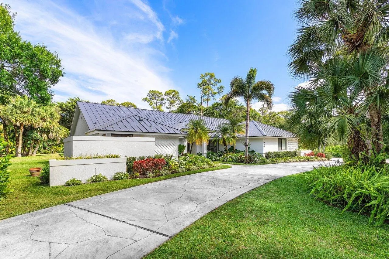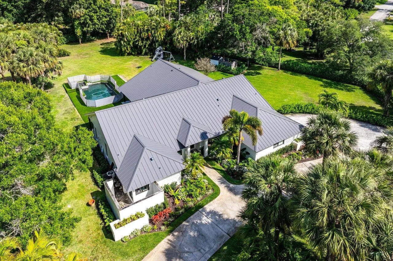 This premium 1.4-acre corner lot is a hard-to-find gem, offering a rare opportunity to build a custom guesthouse while enjoying life in the beautifully renovated pool home, privately secluded behind a lush Clusia hedge. Ideally located minutes from the Winter Equestrian Festival (WEF), it's perfect for equestrians seeking proximity to Wellington's showgrounds while maintaining privacy and space. Upon entering, you are welcomed into a thoughtfully designed split floor plan, providing exceptional privacy and functionality. Notable upgrades include a new metal roof, impact windows and doors, new flooring throughout, and an inviting open-concept kitchen featuring quartz countertops and top-of-the-line appliances. Located in the sought after neighborhood Paddock Park 1.