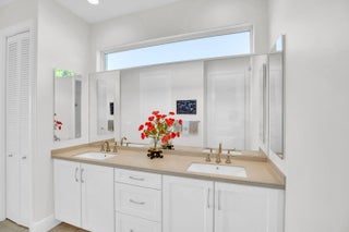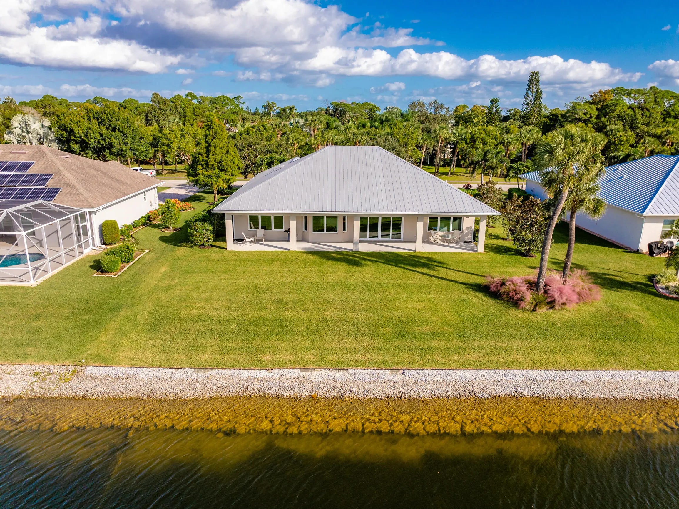 3BR/2BA/2CG lakefront home, circular driveway w/impeccable lush landscape. As soon as you enter the home you're captivated by the expansive lake views! Features include a 2024 A/C unit, metal roof and large impact windows and sliders for peace of mind and energy efficiency. The oversized tiles in living areas offers a clean & modern look. Kitchen & bathrooms are beautifully appointed w/white cabinetry & corian countertops combining timeless style w/easy maintenance. Large windows throughout make this home light and bright. Moving ready and meticulously maintained. Minutes from the beach.