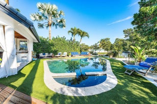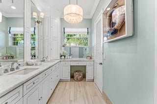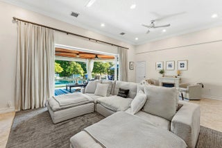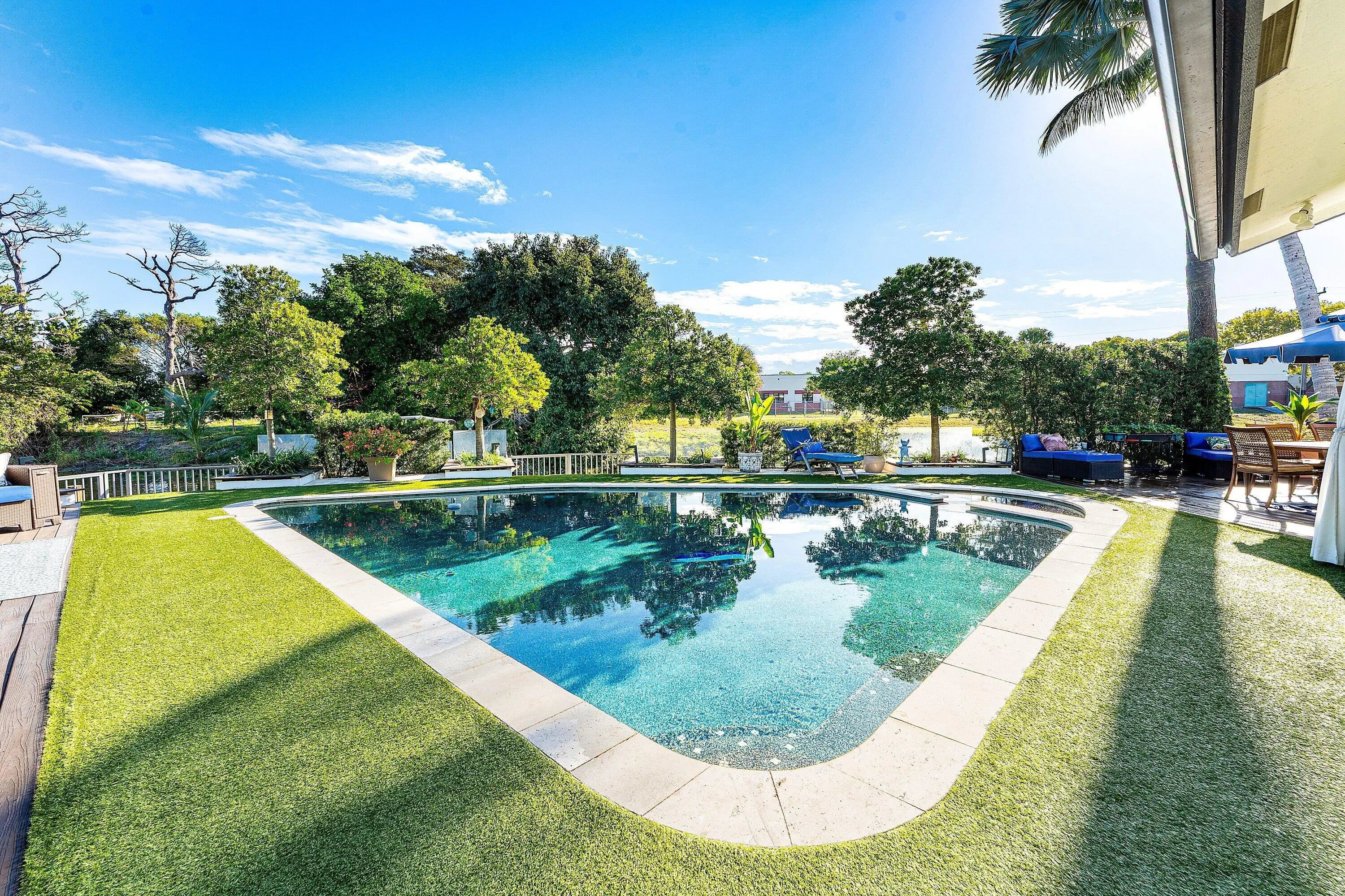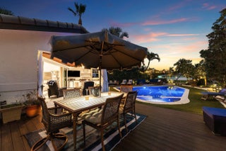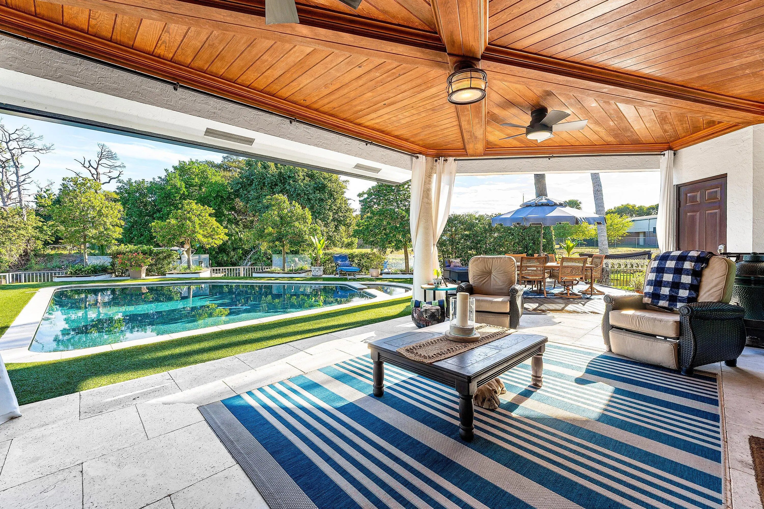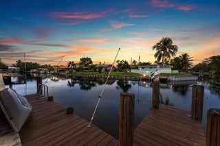 Set at the end of a quiet cul-de-sac in Lake Clarke Shores, this refined 2-story waterfront residence offers privacy and direct freshwater lake access on a corner lot with over 180' of water frontage. The home features 3 bedrooms, 3 full baths, with 2 bedrooms on the main level, including a cabana bath with access to the heated saltwater pool and backyard. Open and inviting interior, 9' ceilings throughout, soaring 12' ceilings in the main living area, formal dining, and separate den. The kitchen is finished with Taj Mahal quartzite countertops and flows seamlessly into the main living area. The 2nd floor is dedicated to a primary suite with 2 walk-in closets and a spa-style bath with Carrara marble, soaking tub, and an oversized steam shower. Fenced yard, private dock and boat lift! Additional highlights include impact-rated front doors and rear sliding glass doors, accordion storm protection throughout, upper and lower laundry areas, a covered front sitting area, and a roof replaced in 2006. Heated Saltwater pool, and whole home water filtration system. Northeast rear exposure providing steady breezes and tranquil water views. Indian Rd E is a low-traffic cul-de-sac street, offering a rare sense of privacy. Lake Clarke Shores is a non-HOA neighborhood with town events, a boat ramp, tennis & pickleball courts, private police force. A laid back waterfront neighborhood all minutes to Downtown West Palm Beach, area beaches, dining, shopping, major travel corridors, and Palm Beach International Airport.