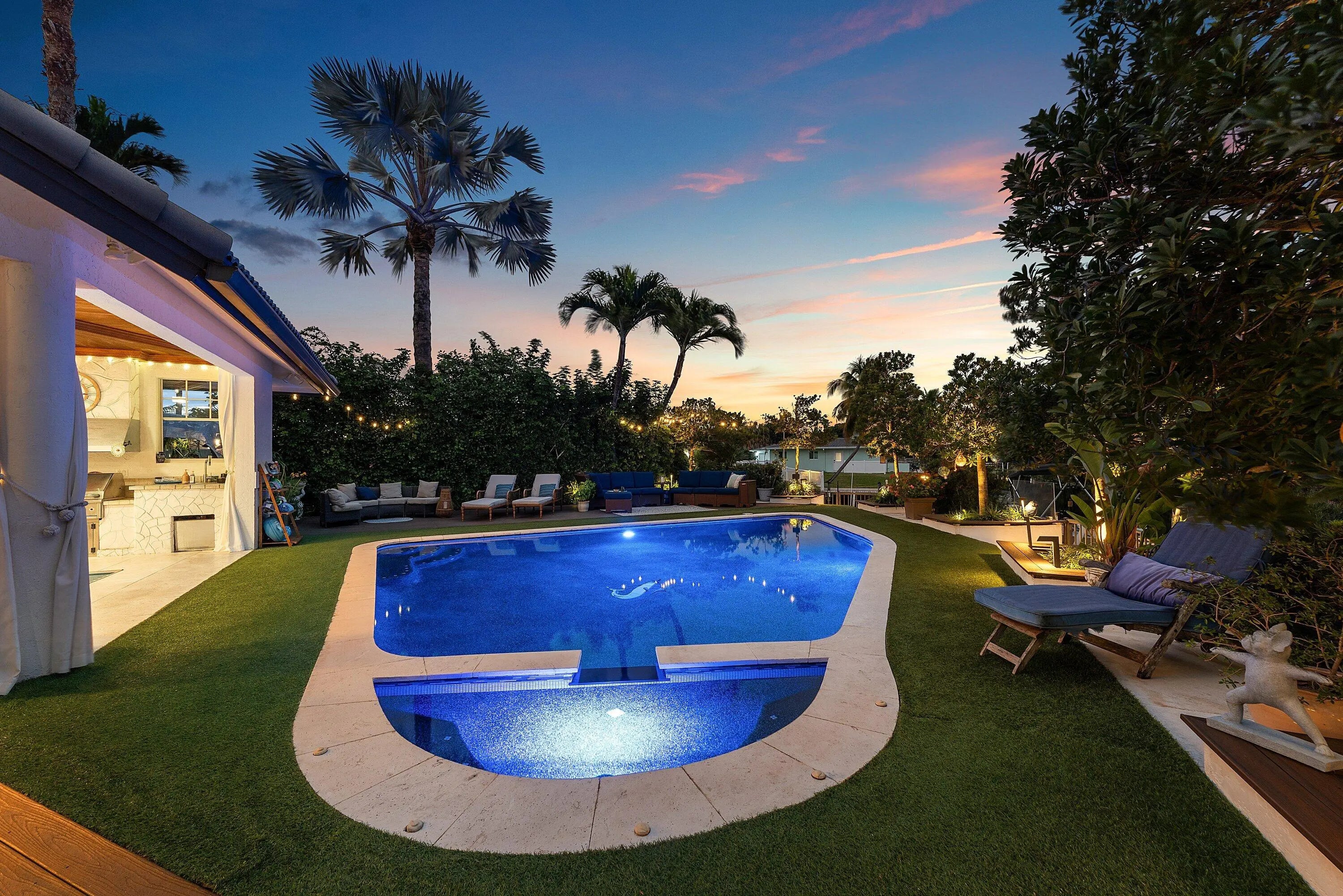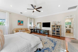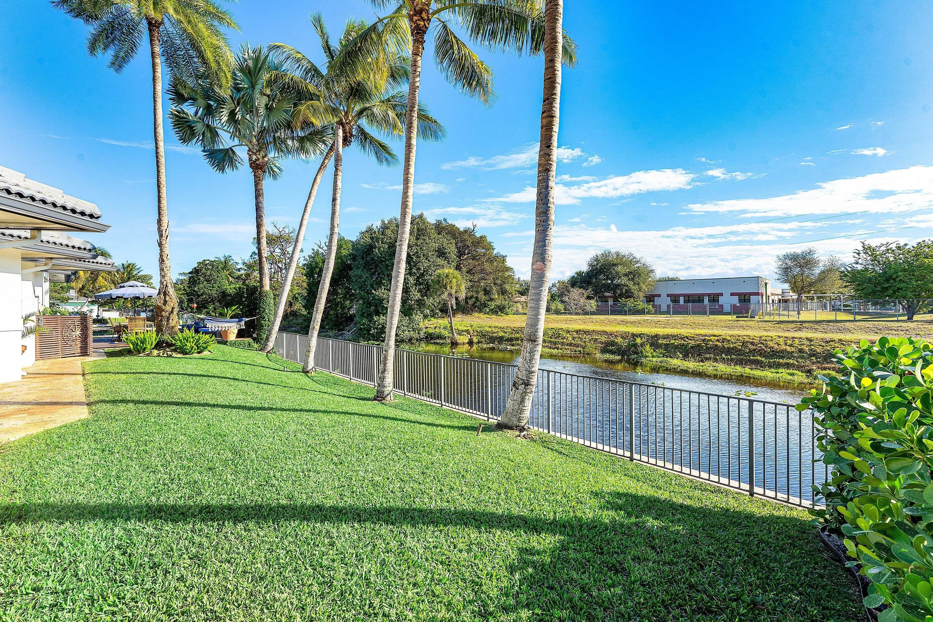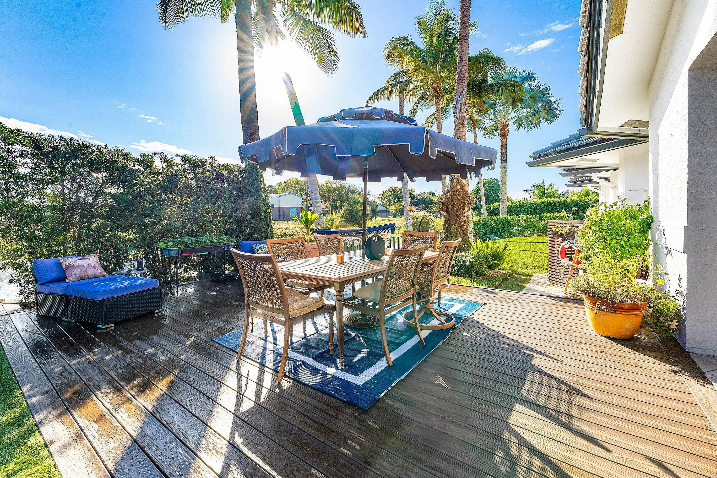 Set at the end of a quiet cul-de-sac in Lake Clarke Shores, this refined 2-story waterfront residence offers privacy and direct freshwater lake access on a corner lot with over 180' of water frontage. The home features 3 bedrooms, 3 full baths, with 2 bedrooms on the main level, including a cabana bath with access to the heated saltwater pool and backyard. Open and inviting interior, 9' ceilings throughout, soaring 12' ceilings in the main living area, formal dining, and separate den. The kitchen is finished with Taj Mahal quartzite countertops and flows seamlessly into the main living area. The 2nd floor is dedicated to a primary suite with 2 walk-in closets and a spa-style bath with Carrara marble, soaking tub, and an oversized steam shower. Fenced yard, private dock and boat lift! Additional highlights include impact-rated front doors and rear sliding glass doors, accordion storm protection throughout, upper and lower laundry areas, a covered front sitting area, and a roof replaced in 2006. Heated Saltwater pool, and whole home water filtration system. Northeast rear exposure providing steady breezes and tranquil water views. Indian Rd E is a low-traffic cul-de-sac street, offering a rare sense of privacy. Lake Clarke Shores is a non-HOA neighborhood with town events, a boat ramp, tennis & pickleball courts, private police force. A laid back waterfront neighborhood all minutes to Downtown West Palm Beach, area beaches, dining, shopping, major travel corridors, and Palm Beach International Airport.