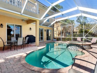 Located within the desirable gated community of Eagle Trace, this two-story lakefront home offers an ideal layout and modern updates. The downstairs master suite provides everyday ease, complemented by bamboo flooring and granite countertops. Enjoy peaceful mornings and sunsets from the balcony overlooking the lake, or unwind in the heated pool and spa. Notable improvements include a 2023 downstairs A/C, 2023 hot water heater, and fresh exterior paint in 2022. An exceptional blend of location, updates, and lifestyle—ready to be enjoyed year round.