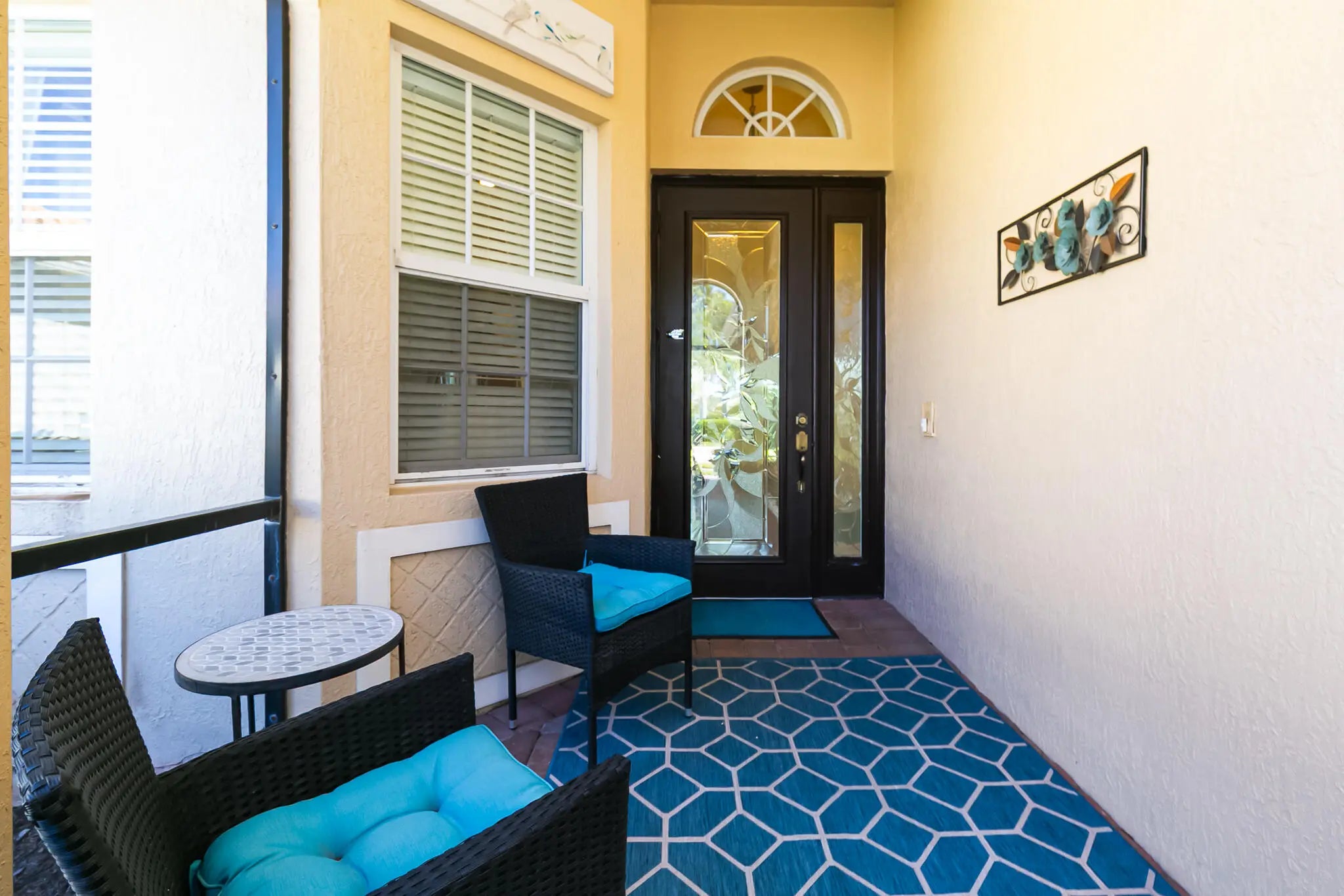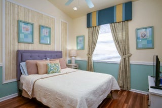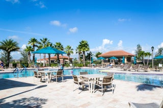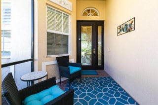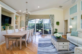 Welcome to this exceptional 2-bedroom plus den, 2-bath former builder model Camellia in the desirable 55+ active community of Vitalia at Tradition, where refined design meets resort-style living in one of Tradition's most sought-after neighborhoods. Ideally positioned just steps from the additional neighborhood cabana pool, this home offers the rare feeling of having a private pool just across the street, perfect for enjoying a quiet swim or relaxing poolside without the upkeep. Inside, the home showcases 12-foot vaulted ceilings, crown molding throughout, and elegant picture-frame wall molding, hallmarks of a true model. The kitchen is thoughtfully designed with quartz countertops, stainless steel appliances, gas cooking, a pantry, and a breakfast nook, ideal for both daily living and entertaining. The great room features a custom built-in entertainment system and overlooks the spacious screened patio, creating a comfortable and inviting gathering space. The owner's suite provides a private retreat with two walk-in closets with custom built-ins and a spacious double vanity bath. A versatile den includes a charming window bench, shelving, and additional built-in storage, making it ideal for a home office or creative space. Impact glass and tasteful window treatments throughout add comfort, security, and style. Enjoy Florida living year-round with a welcoming screened front porch and an extended screened, pavered, covered lanai with TV, offering the perfect space to relax or host guests in any season. Additional features include a 2-car garage, generator hookup, whole-home water filtration system, new water heater (2025), and fresh exterior paint (2025). Vitalia delivers a true resort lifestyle with a 24,000 sq. ft. clubhouse, resort-style pool and spa, state-of-the-art fitness center, aerobics studio, tennis, pickleball, and bocce courts, plus a vibrant calendar of clubs and social events. Residents enjoy maintenance-free living with lawn care, BlueStream cable and internet, a manned gate, and access to all resort amenities included in the monthly HOA fee. Ideally located in Tradition near shopping, dining, medical facilities, and I-95, this home offers luxury, convenience, and the elevated 55+ lifestyle Florida is known for.
