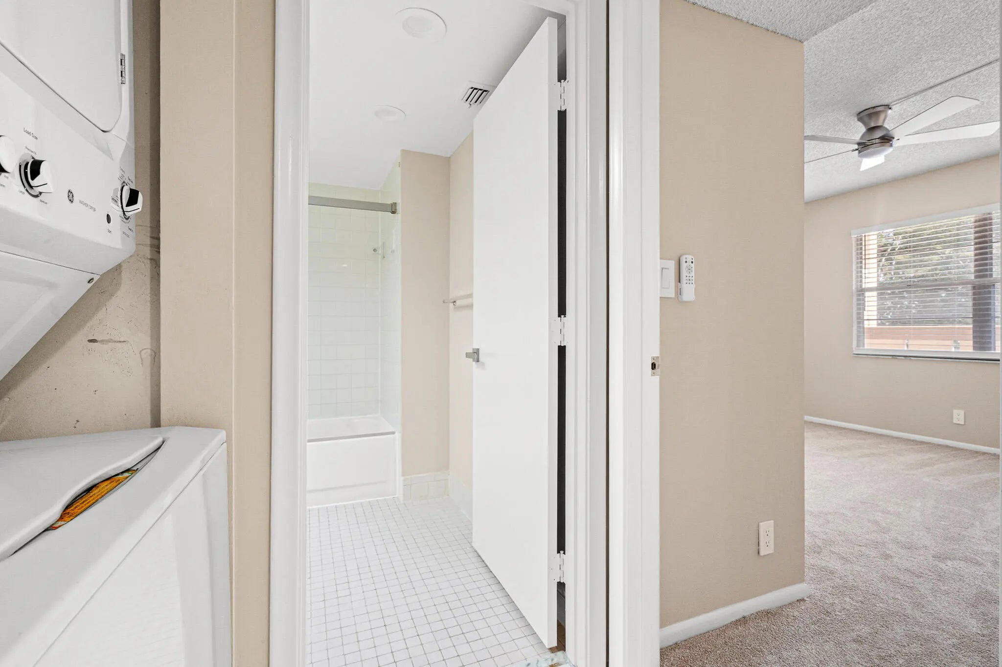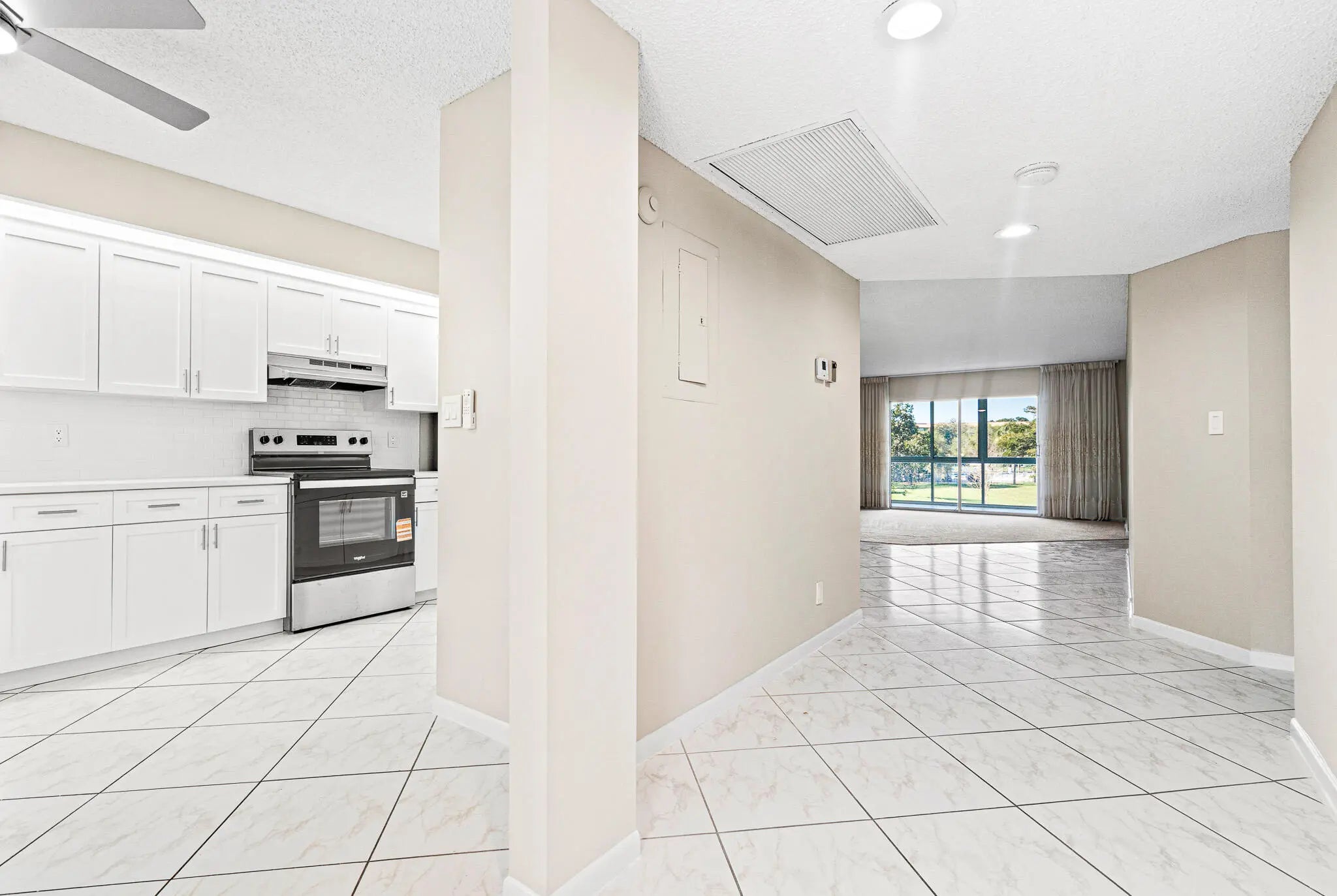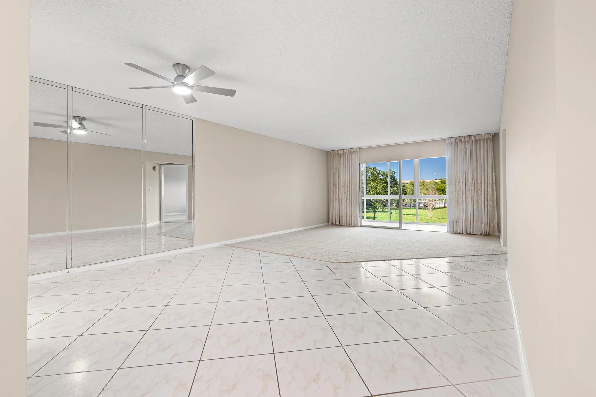 IRIS 2-bedroom, 2-bath residence featuring a bright, open layout with neutral tile flooring, a comfortable new carpeted living area, and sliding glass doors leading to a private balcony with impact Windows overlooking the pool and garden. The updated kitchen offers white shaker-style cabinetry, ample storage, and stainless steel appliances. Washer and dryer conveniently located inside the unit. Well-maintained baths with clean, neutral finishes. Prime location near the theater and clubhouse in a desirable 55+ community. Wynmoor offers pickleball, golf, The Cove restaurant, craft studio, ballroom, billiards, BBQ grills, library, 60+ clubs, and so much more. The billiard room was recently updated, and Thursday nights at The Cove are a perfect way to kick off the weekend!