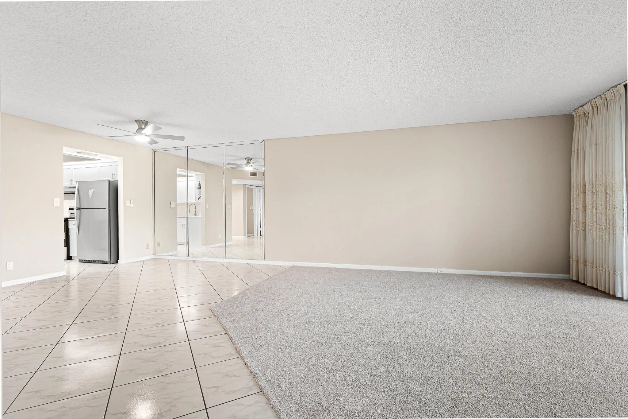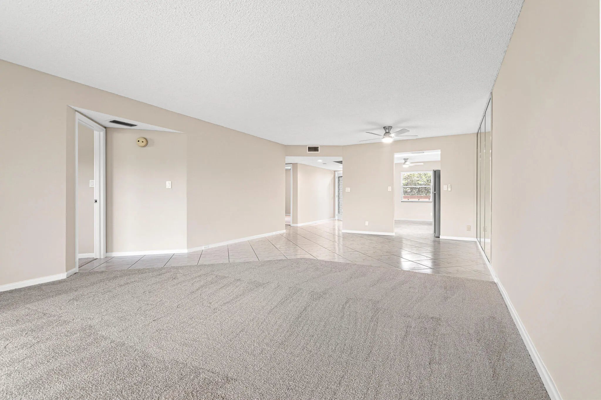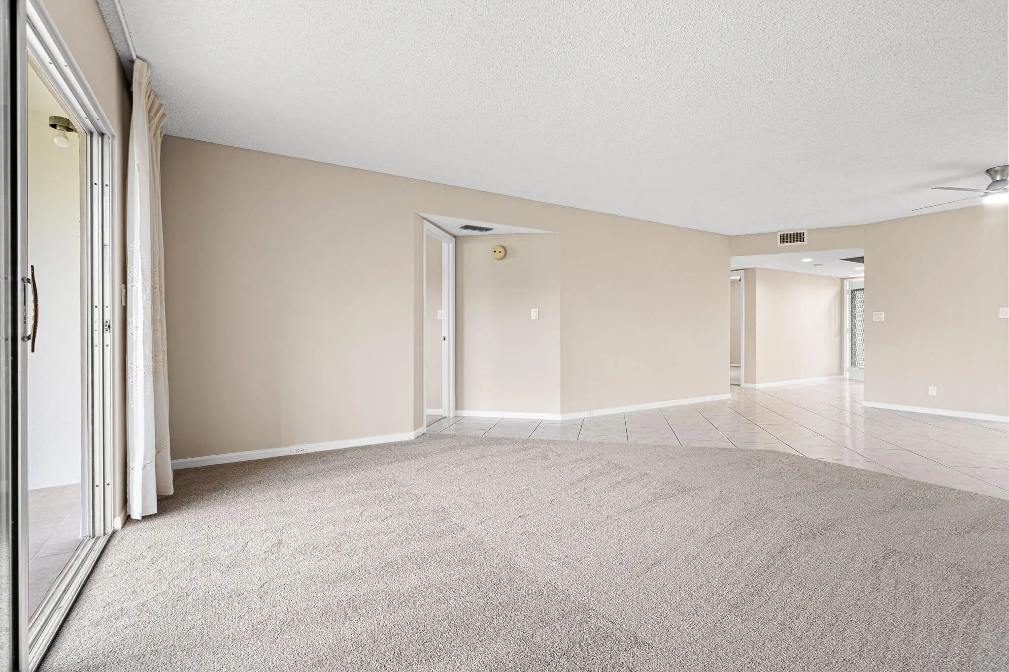 IRIS 2-bedroom, 2-bath residence featuring a bright, open layout with neutral tile flooring, a comfortable new carpeted living area, and sliding glass doors leading to a private balcony with impact Windows overlooking the pool and garden. The updated kitchen offers white shaker-style cabinetry, ample storage, and stainless steel appliances. Washer and dryer conveniently located inside the unit. Well-maintained baths with clean, neutral finishes. Prime location near the theater and clubhouse in a desirable 55+ community. Wynmoor offers pickleball, golf, The Cove restaurant, craft studio, ballroom, billiards, BBQ grills, library, 60+ clubs, and so much more. The billiard room was recently updated, and Thursday nights at The Cove are a perfect way to kick off the weekend!