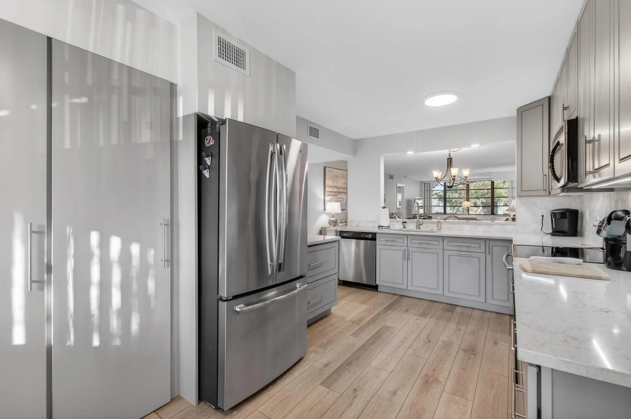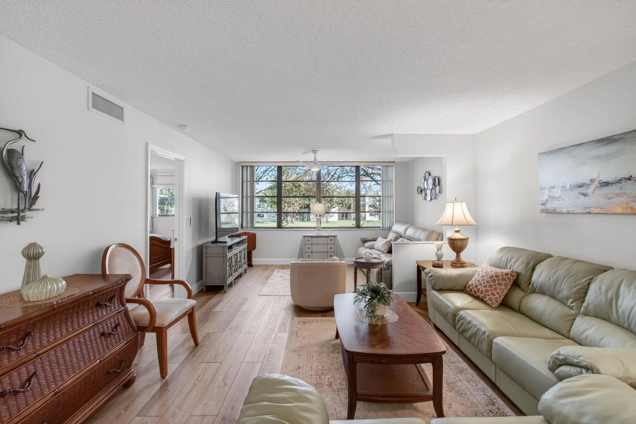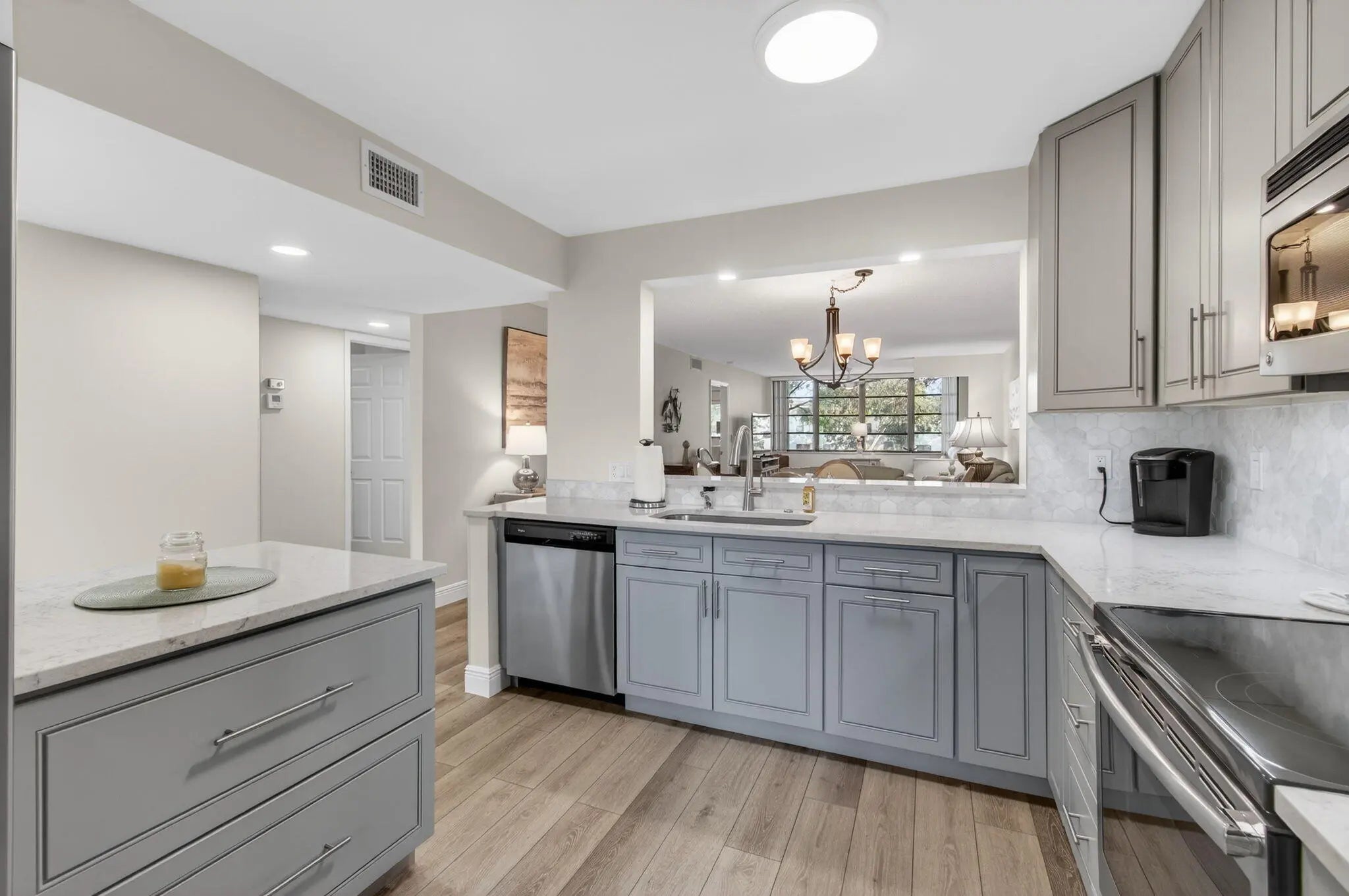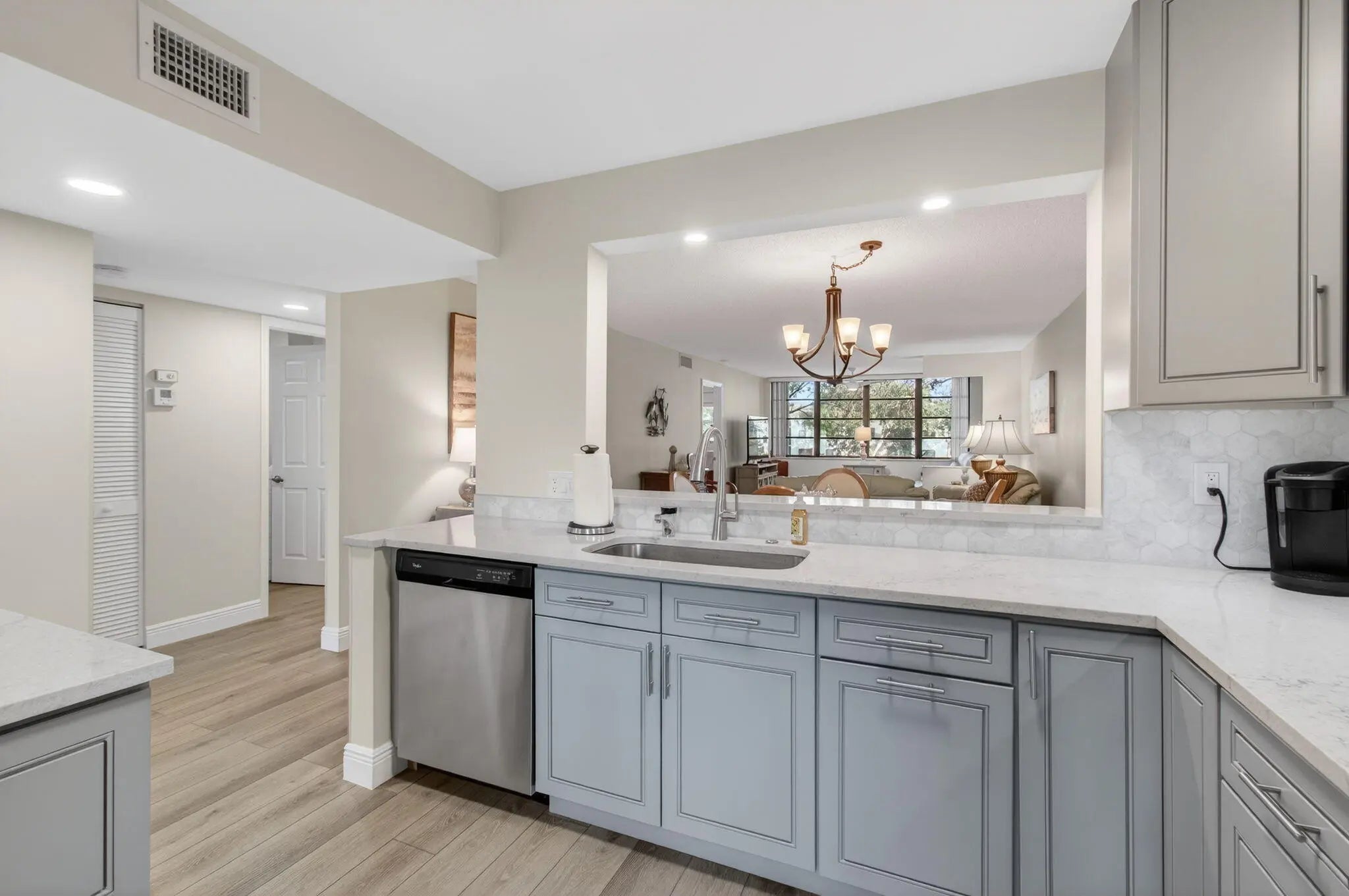 Beautifully renovated lakefront condo in the sought-after 55+ Lakes of Delray community, offering a perfect blend of modern comfort and relaxed South Florida living. This spacious 2-bedroom, 2-bath residence showcases tranquil water views and a bright, open layout designed for both everyday living and entertaining. The home features custom kitchen cabinetry with quartz countertops, stainless-steel appliances, a full pantry, and thoughtfully designed drawers for maximum storage. The extended living area captures serene lake views, creating an inviting space to unwind or host guests. Both bedrooms offer excellent storage, including a custom closet in the primary suite, along with updated flooring, fixtures, and finishes throughout — truly move-in ready. Additional highlights include a 2022 A/C, 2018 hot water heater, and a newer roof, providing peace of mind for years to come. Conveniently located within walking distance to the clubhouse and main pool, this residence offers easy access to the community's resort-style amenities. Residents of Lakes of Delray enjoy a vibrant lifestyle with multiple pools, an active clubhouse, tennis and pickleball courts, organized social activities, and community bus service, all just minutes from downtown Delray Beach, premier shopping, dining, and the coast. A turnkey lakefront opportunity in one of Delray Beach's most desirable active adult communities