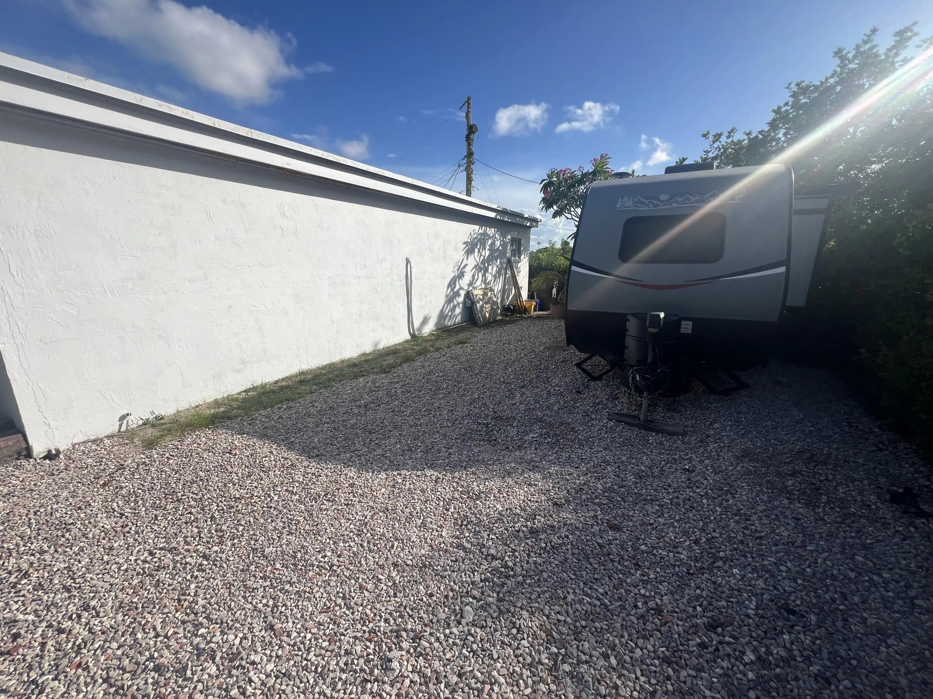 This CBS white building converted to single family home large one bedroom and one bath, kitchen, and full Laundry, driveway for 2 cars and street parking. Only included white house and side lot with RV Both rented for income of $2800 a month. Side lot with room for expansion Upgraded electric. Lot surrounded by a clusia for privacy. Lot 2 for sale only subdivided from Lot 3 with separate PCN.