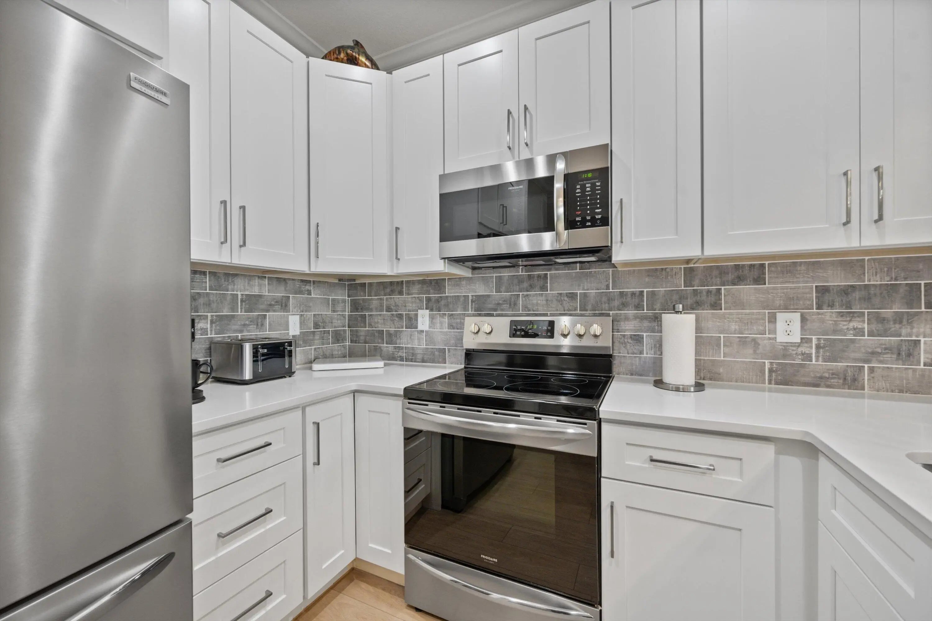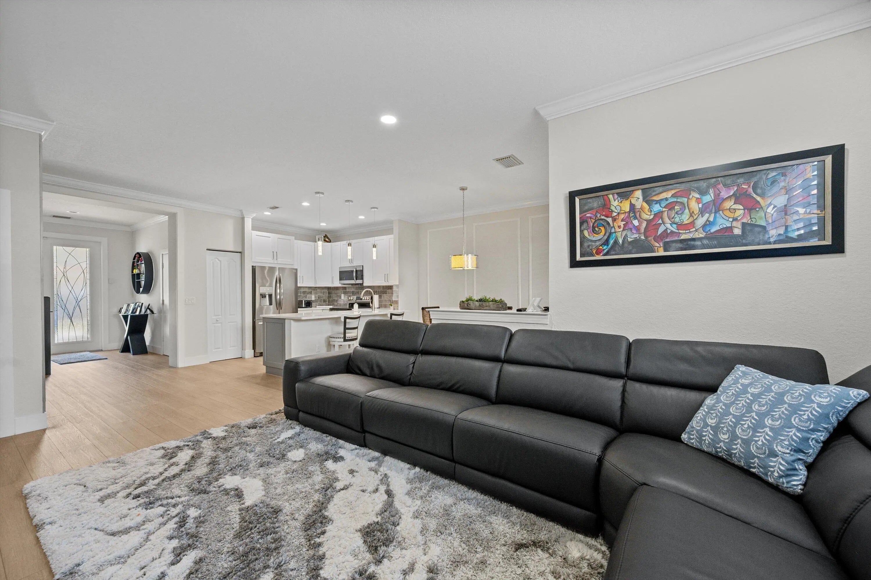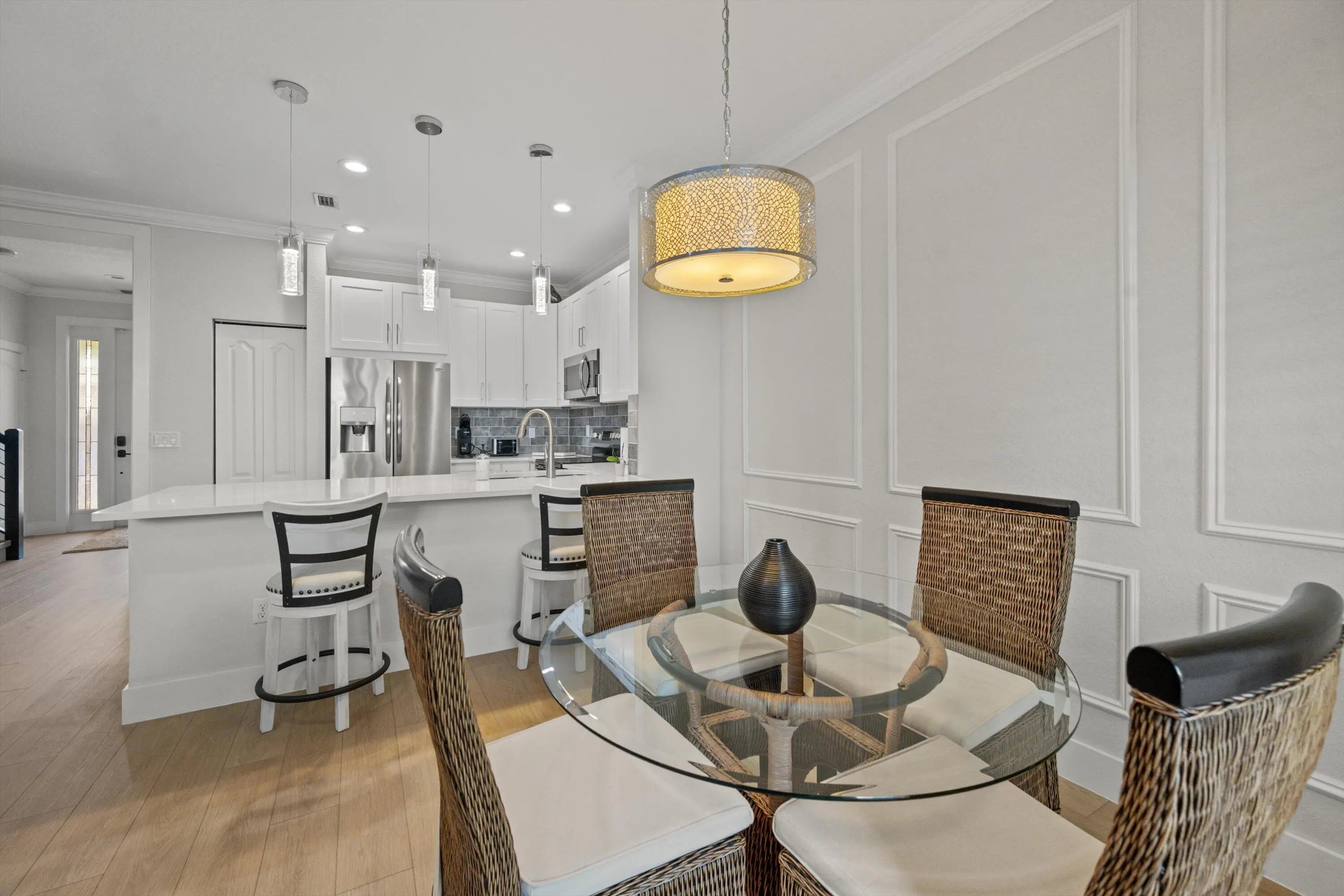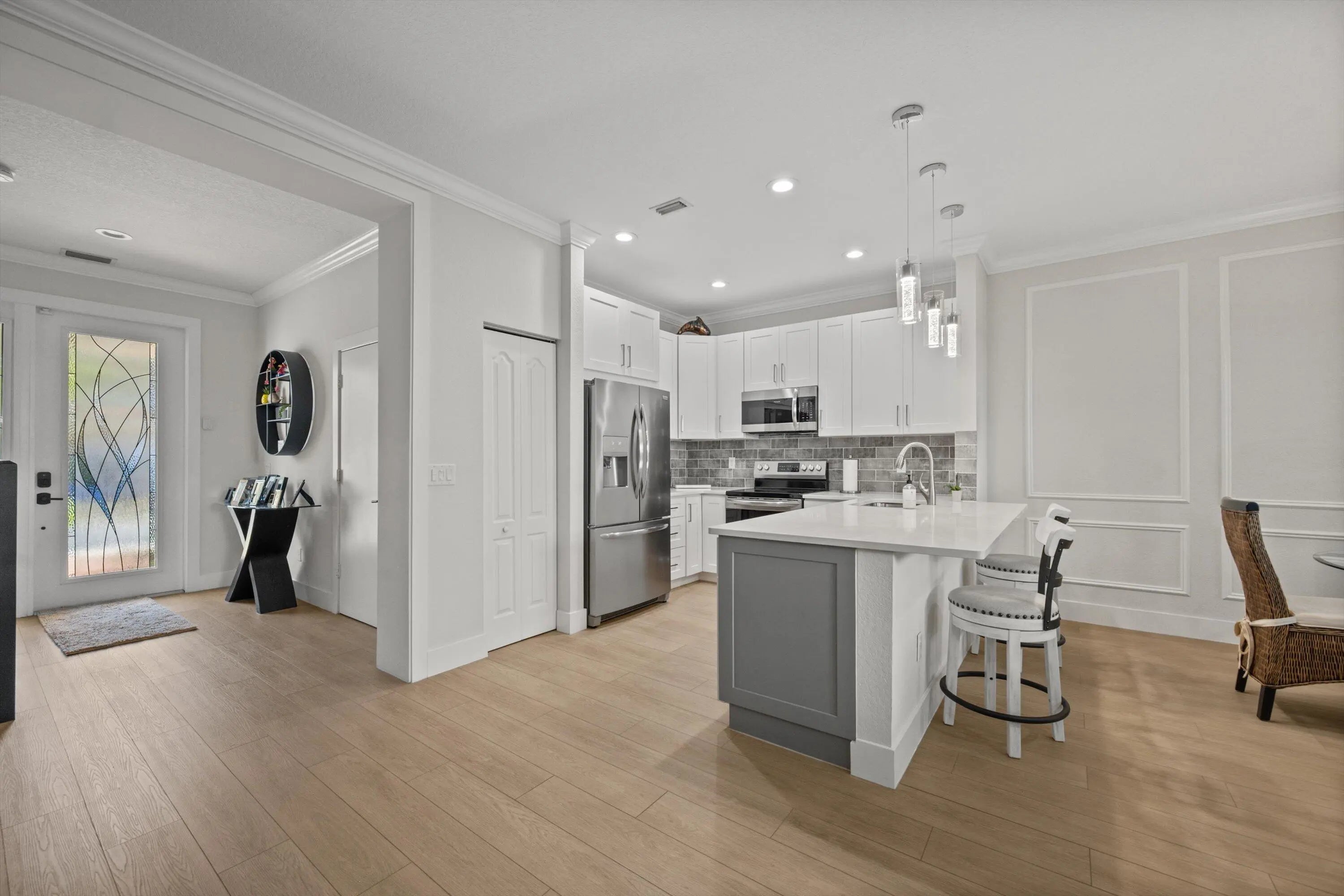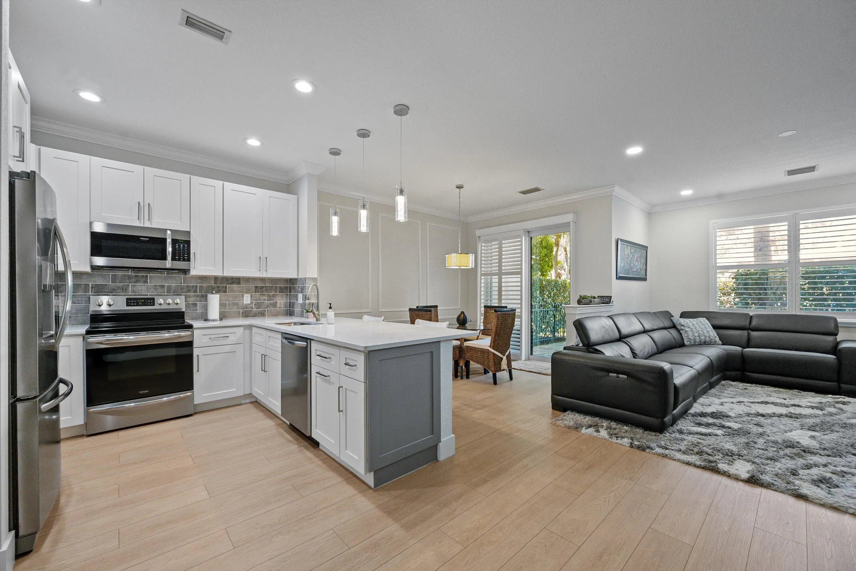 Completely remodeled in 2023 with full impact windows and doors throughout, this beautifully maintained 3-bedroom, 2.5-bath townhome with a 1-car garage and 2 car driveway offers modern finishes and generous garden space in a prime community setting. The open-concept main level features luxury vinyl plank flooring throughout, plantation shutters, and a custom built-in entertainment center. The updated and bright and airy kitchen is appointed with quartz and quartzite countertops, brand-new stainless steel appliances, and sleek contemporary finishes. SEE MORE.. The oversized primary suite includes a spacious walk-in closet and an expansive, light-filled layout. Step outside to a private, fully fenced outdoor area featuring new pavers, a large grill, and a sizable garden space ideal for pets, all overlooking a peaceful green park setting. A new roof was completed in 2025. Community amenities include three resort-style pools with a hot tub, two tennis courts, a fully equipped fitness center, playground, and available boat storage.