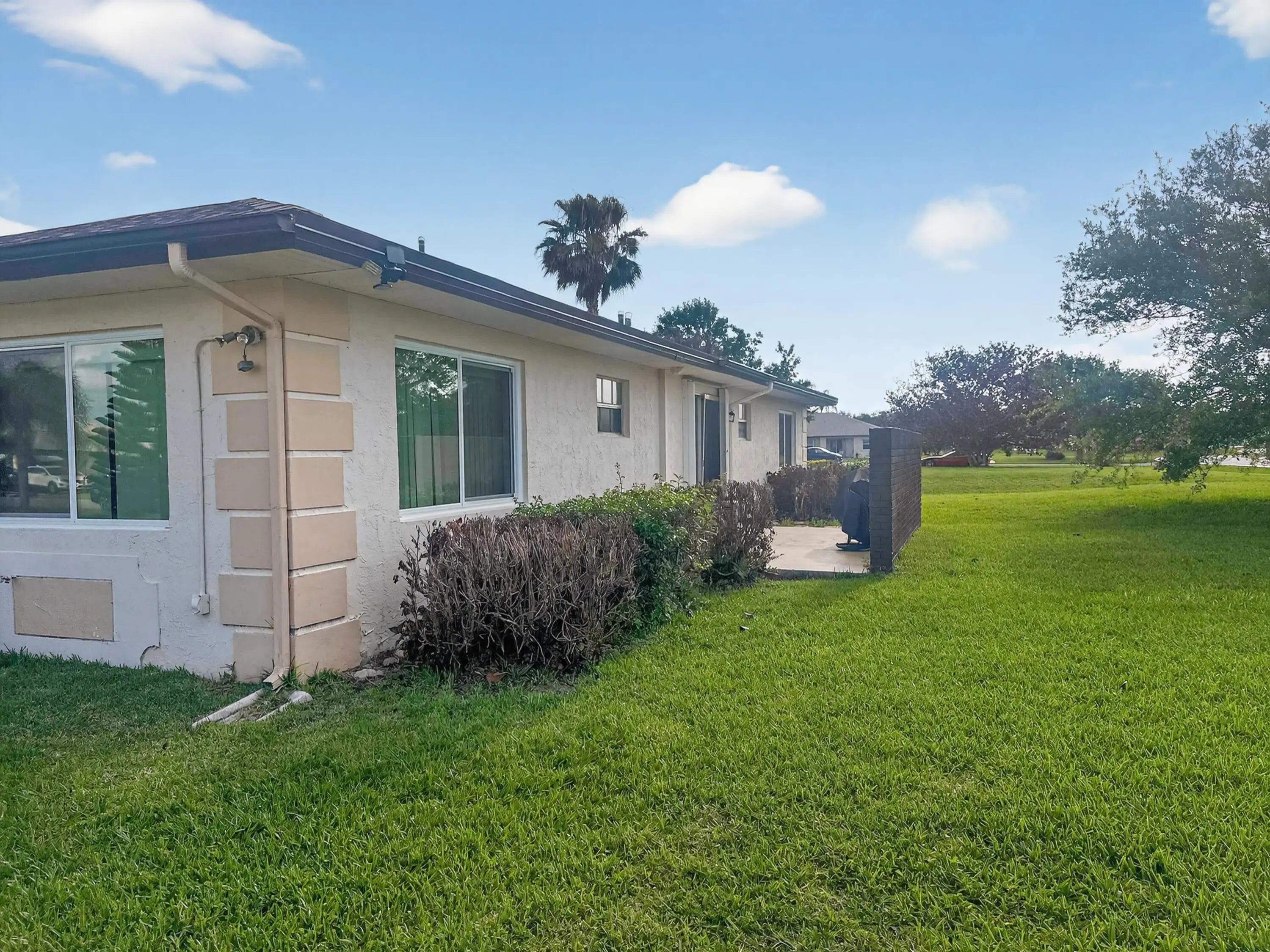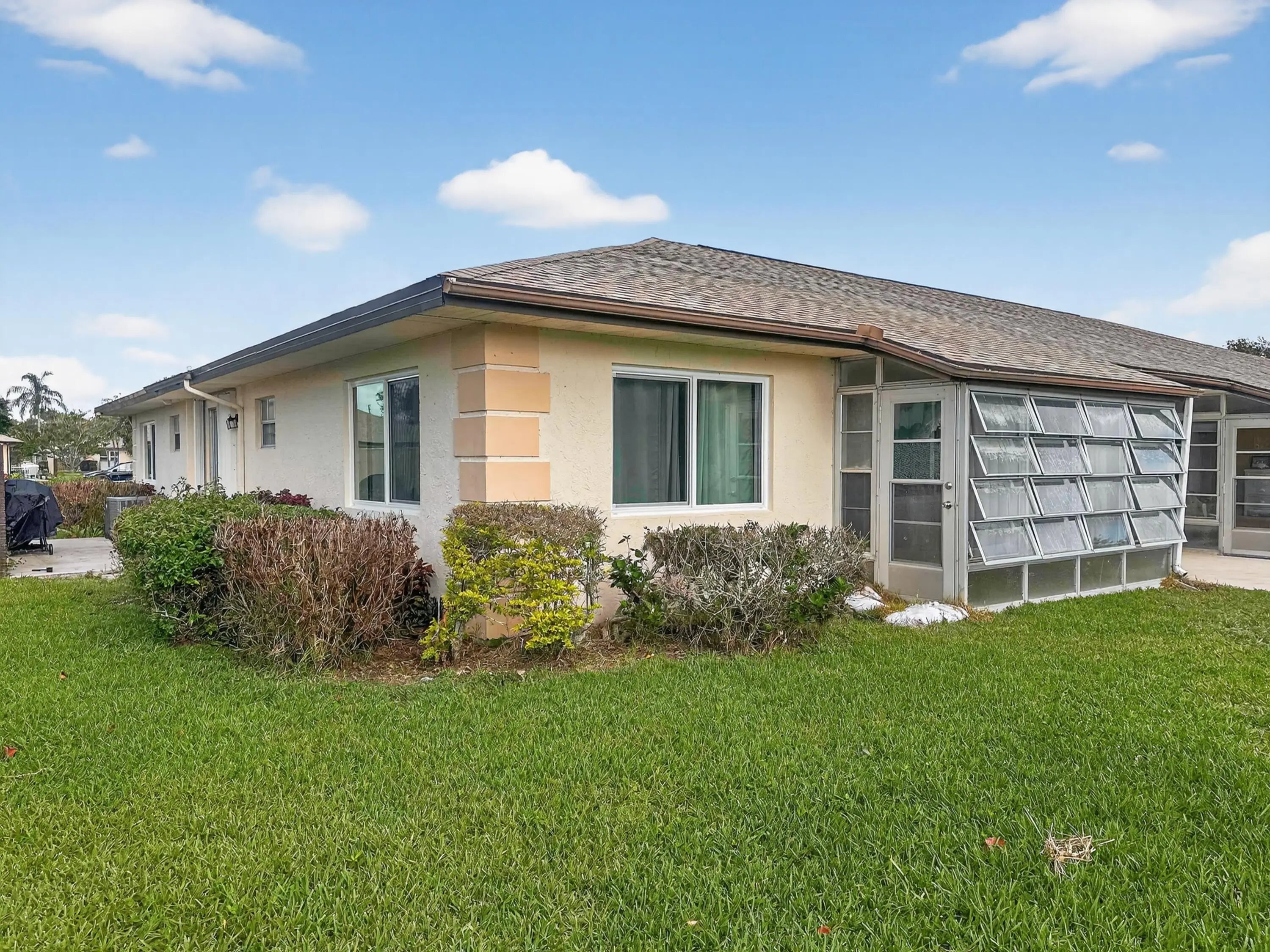 Wonderfully updated END UNIT in an active 55+ community. 2022 remodeled kitchen & master bath, 2023 roof, 2025 water heater, HVAC and impact windows. Sliding glass doors have accordian shutters. Great sized bedrooms, den, living room, dining room. Florida room and outdoor patio. HOA fee covers roof & exterior maintenance, sewer, water,cable, and more! Trucks ok with some restrictions.