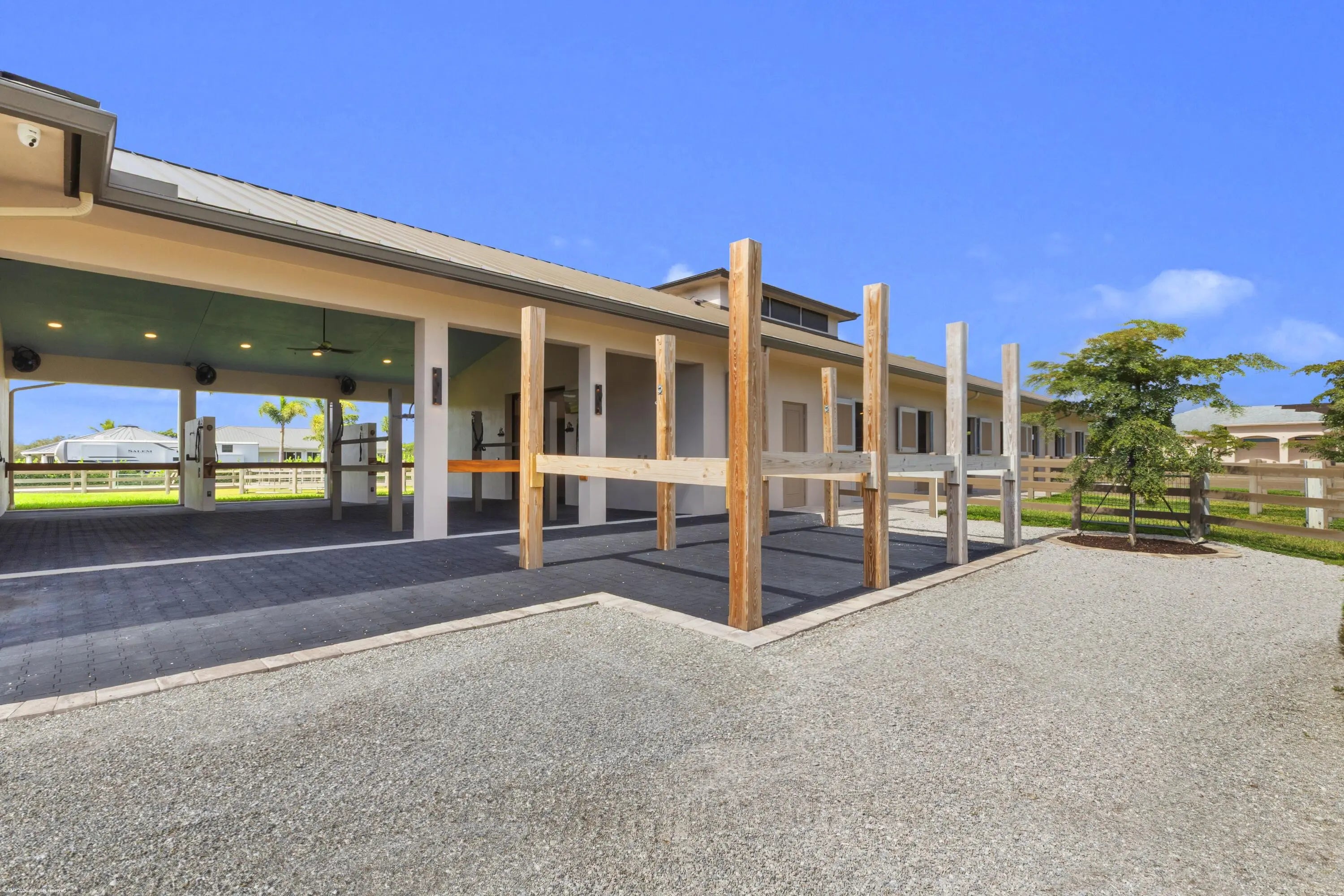 New construction, architecturally impressive 5AC equestrian farm is ready to fulfill your dreams. 14 Stall center Aisle barn with 8 oversized walk-out paddocks,120 by 250 ft Ebb and Flow all weather fully fenced arena and separate lunging ring, completed by a fabulous 1558 sq ft guest cottage, impressive 3 bay garage with second story finished apartment. This exclusive farm offers an approved Wellington land development plan for your dream covered riding arena. The timeline for completed construction of proposed riding arena is a short timeframe. More potential with this amazing property is a 3482 sq ft original house that has been prepped for two creative planned options. (Please see owner remarks in MLS documents.) The exceptional center aisle barn features a comfortable lounge and an adjoining office with 2 tack rooms, laundry and feed room plus oversized hay and shavings storage room. All details were designed for the comfort of your horse and happiness of the rider. Luxury features include Comfort Mats with a stall drainage system, Equi -faucets, brushed aluminum one-of-a kind stall fronts and Dutch doors with no maintenance Polywood. The fabulous new guest cottage features 12ft ceilings and exotic quartzite counters in the custom kitchen overlooking an expansive porch, with views of the riding arena. Professionally interior designed, this house offers luxury and comfort. Two separate gated entrances allow for easy entrance for horse trailers and driveway access. Ideally located within hacking distance to the showgrounds and a short drive to Wellington. The hard work has already been done..... Your dreams are only steps away from being realized.