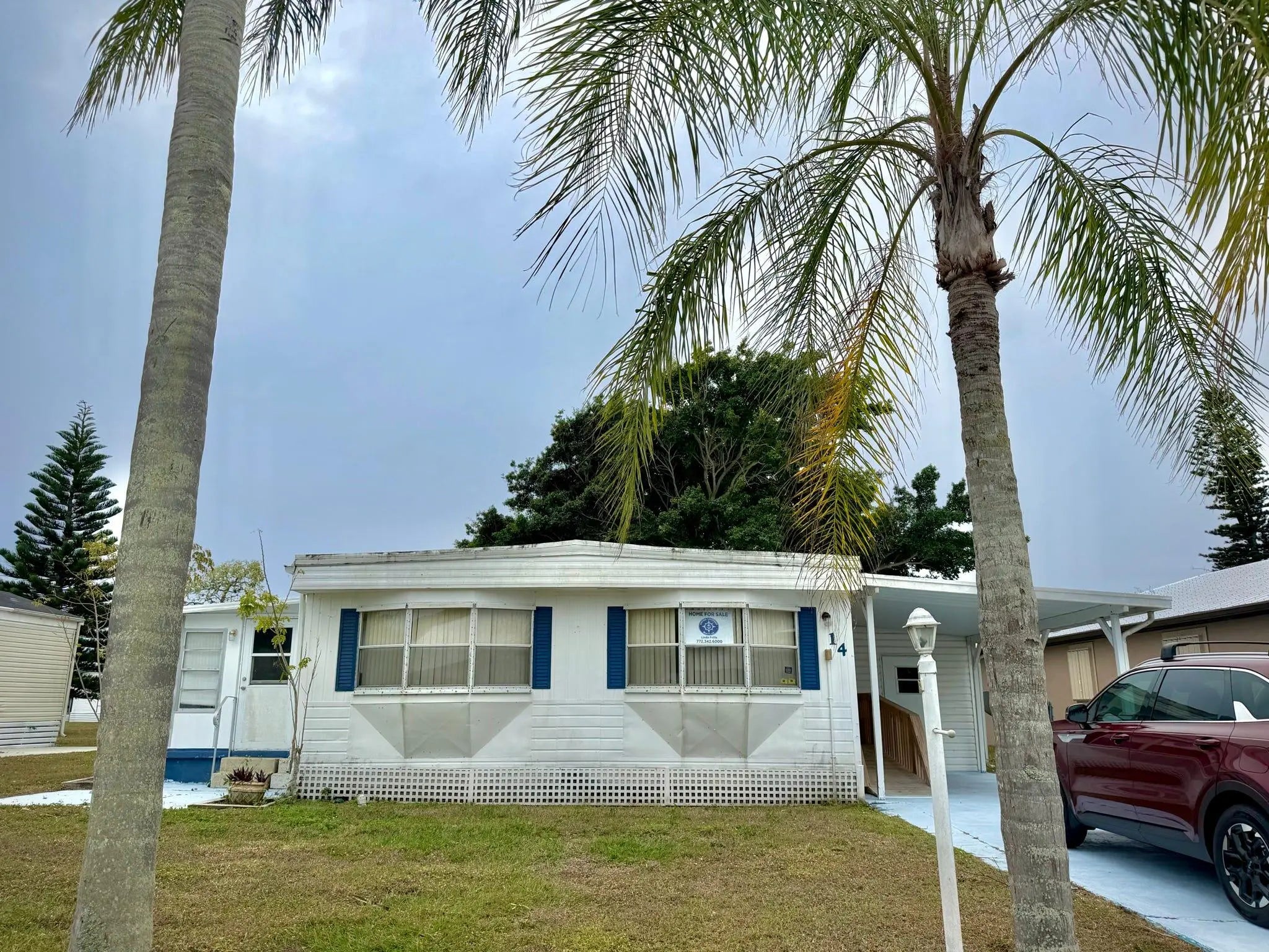 Welcome to 14 Golf Drive, a 2 bedroom, 2 bath home offering excellent potential in the 55+ community of Spanish Lakes One. This property features a functional layout with a spacious living area, dining space, and two well sized bedrooms. Ideal for buyers looking to renovate, seeking a value added opportunity, the home provides a solid foundation for updates and customization. Lot rent is only $910 per month and includes all the amenities of the clubhouse including golf, swimming, pickleball and so much more. Conveniently located near shopping, dining, and parks, this is a great chance to create a home tailored to your vision in a desirable area.