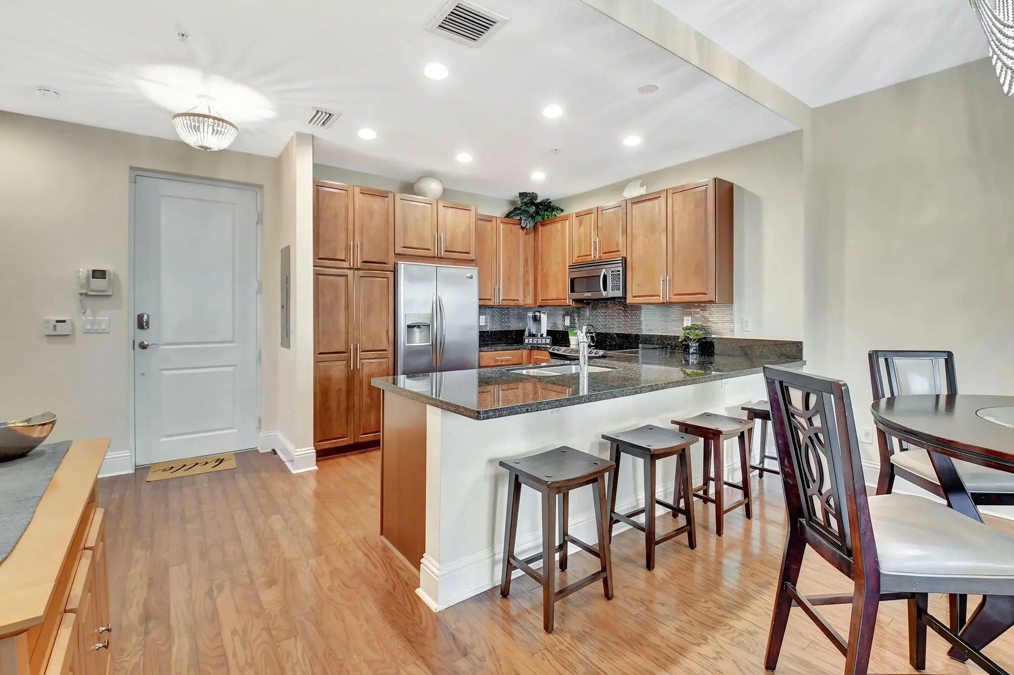 Rented 2/15-4/15 2026 - This fully furnished 2 story condo at Latitudes Delray offers 3 bedrooms and 3 full bathrooms — each bedroom has its own en-suite bath for added privacy and convenience. The unit features hardwood floors in the main living areas, a modern kitchen with granite countertops and stainless steel appliances, and tasteful furnishings throughout. The standout feature is the PRIVATE 2ND FLOOR TERRACE—ideal for relaxing or entertaining—with views of the community's tropical-style pool. The unit also includes a COVERED CARPORT conveniently located near the lobby, plus ample guest parking. Ideally located just 1.5 miles from the beach and a short drive to downtown Delray's shops, restaurants, and nightlife. Surrounded by shopping like Trader Joe's, Whole Foods, Target, etc.