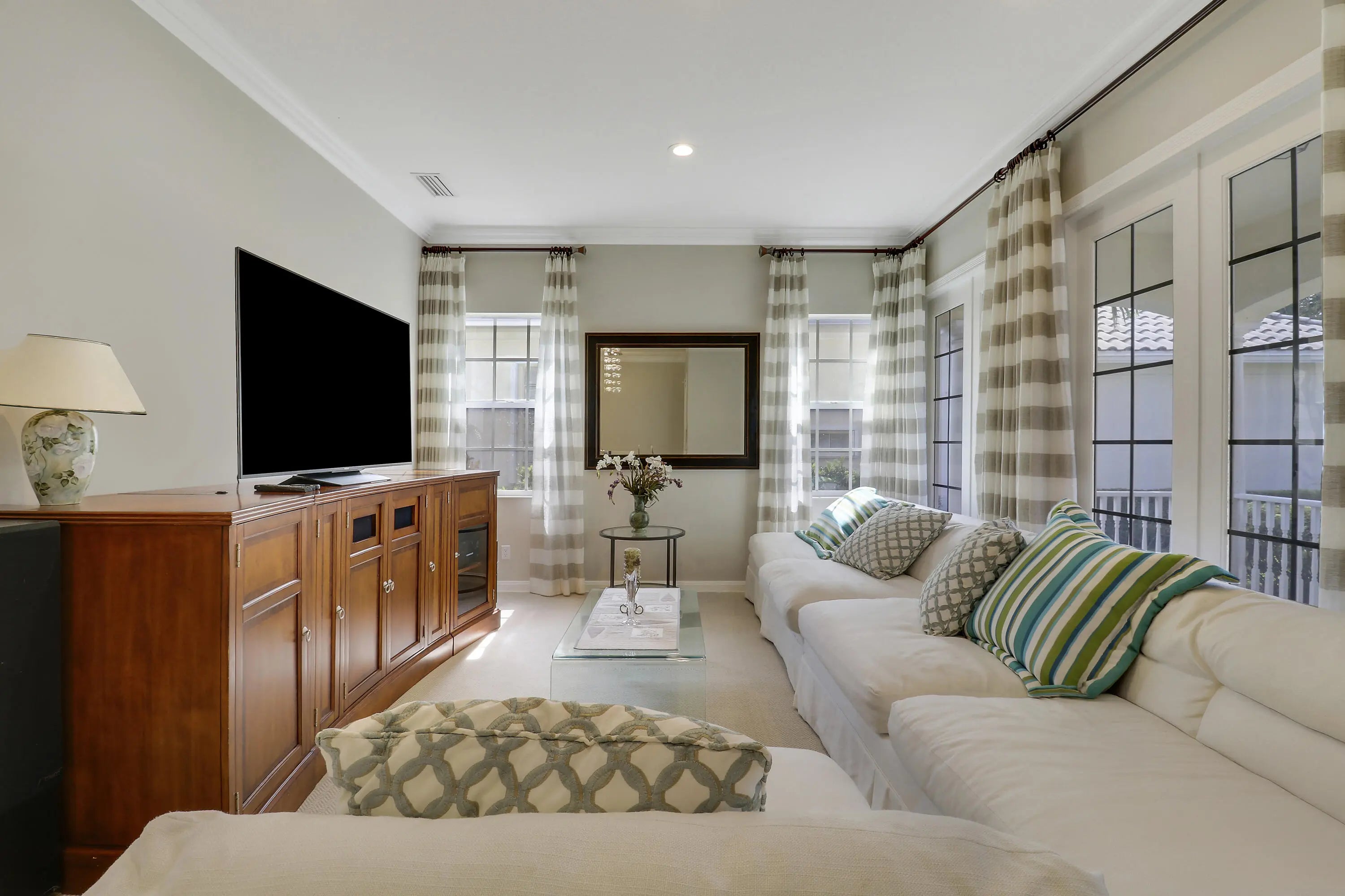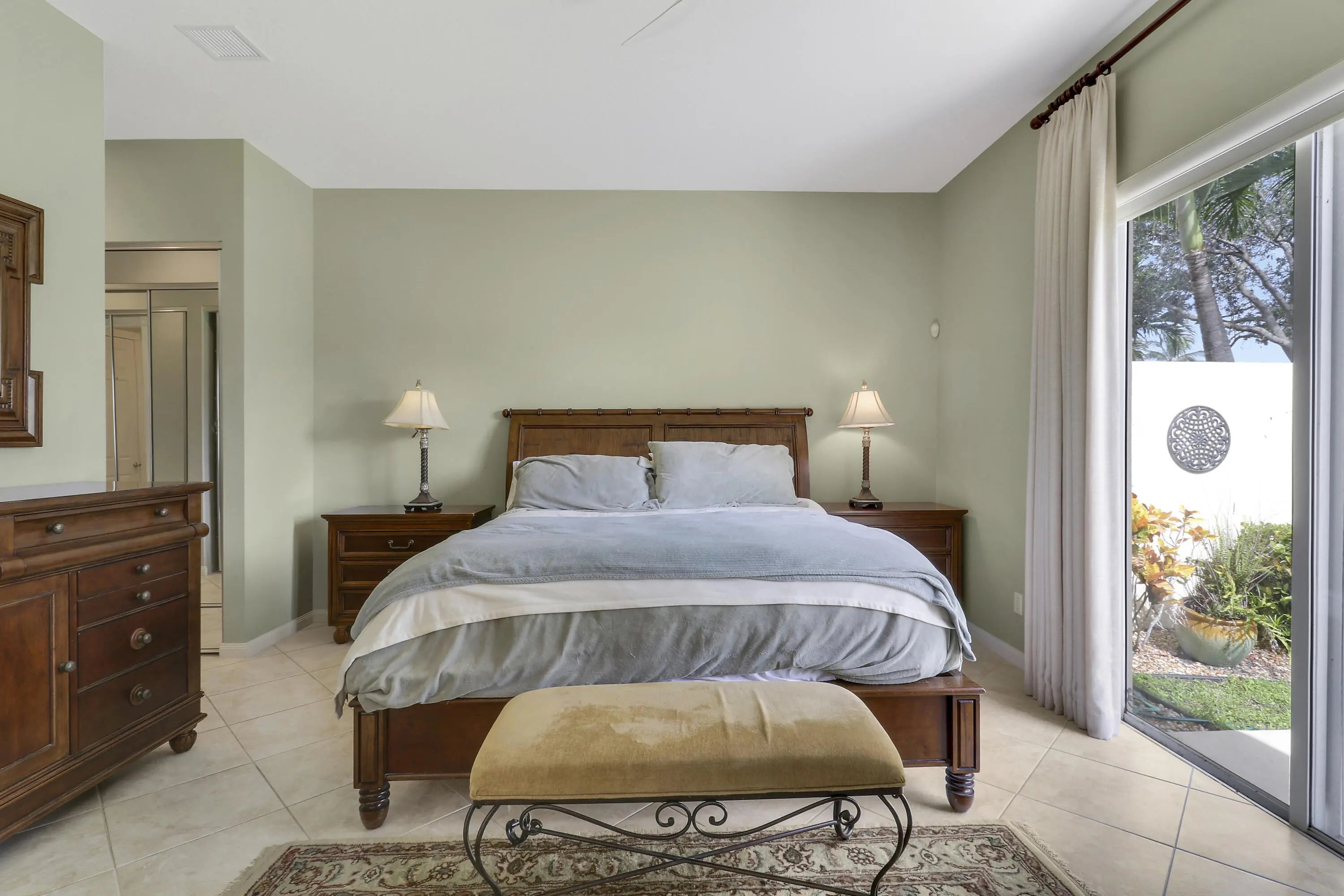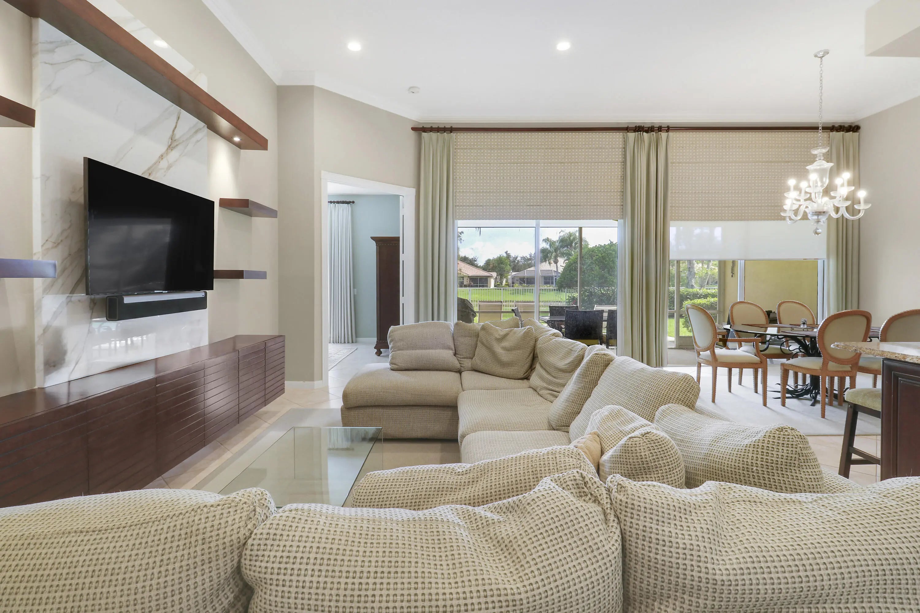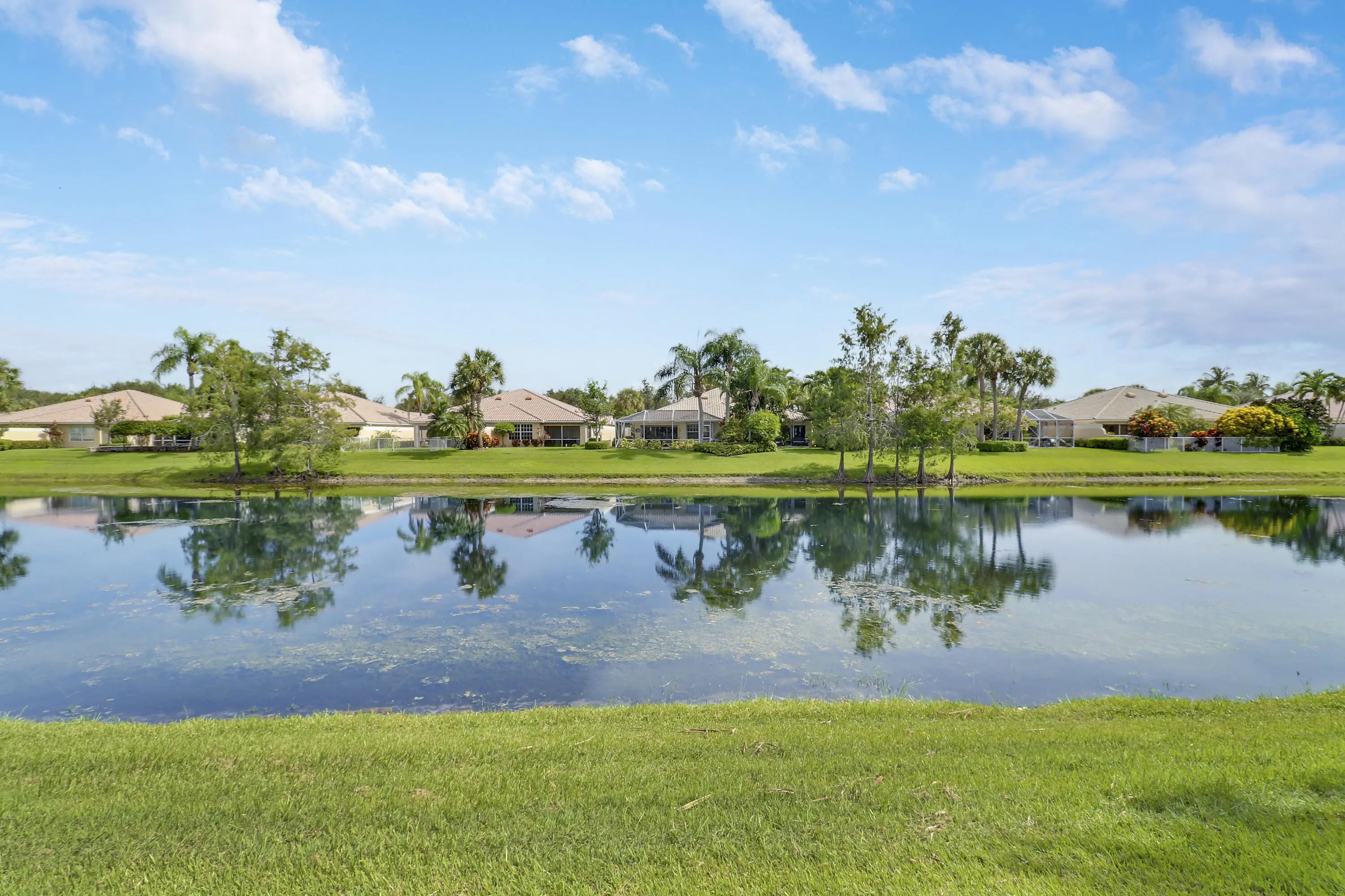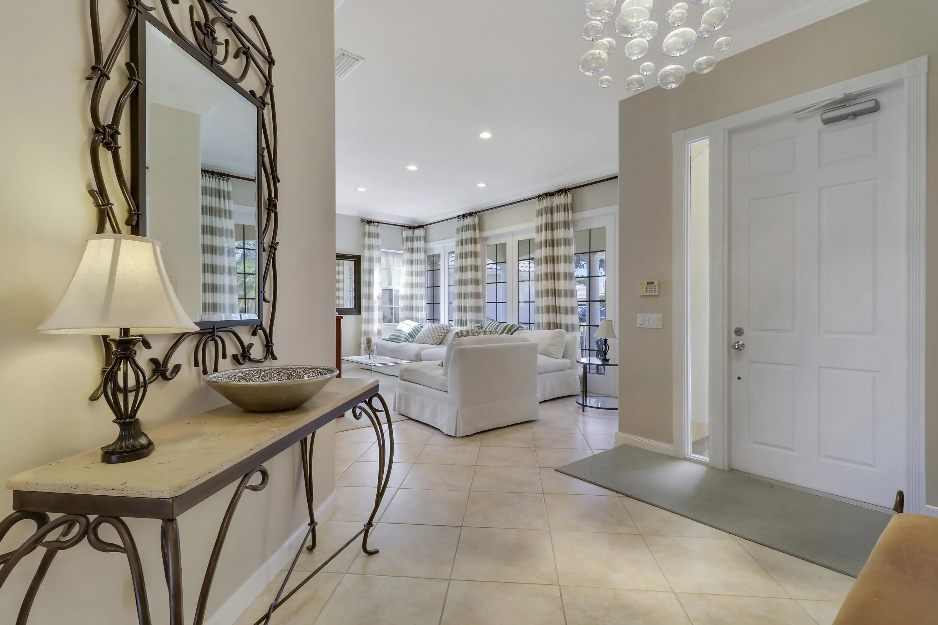 Incredibly upgraded! The master bath has been reconfigured and is now two separate full baths. Upgrades include upgraded appliances, whole-house water treatment system, upgraded bathrooms with new cabinets, granite or marble, glass shoer/bath doors, upgraded kitchen with granite counter tops, additional high-hats and all converted to LED, solar panels (financing must be converted to buyer @1.99% -207/212 per month). Community amenities: Community pool, lap-pool, clay tennis courts, basketball court, kids' playground, bocca ball, club house. The community is gated with manned gate. Barcode reader for residents. All furniture is available.