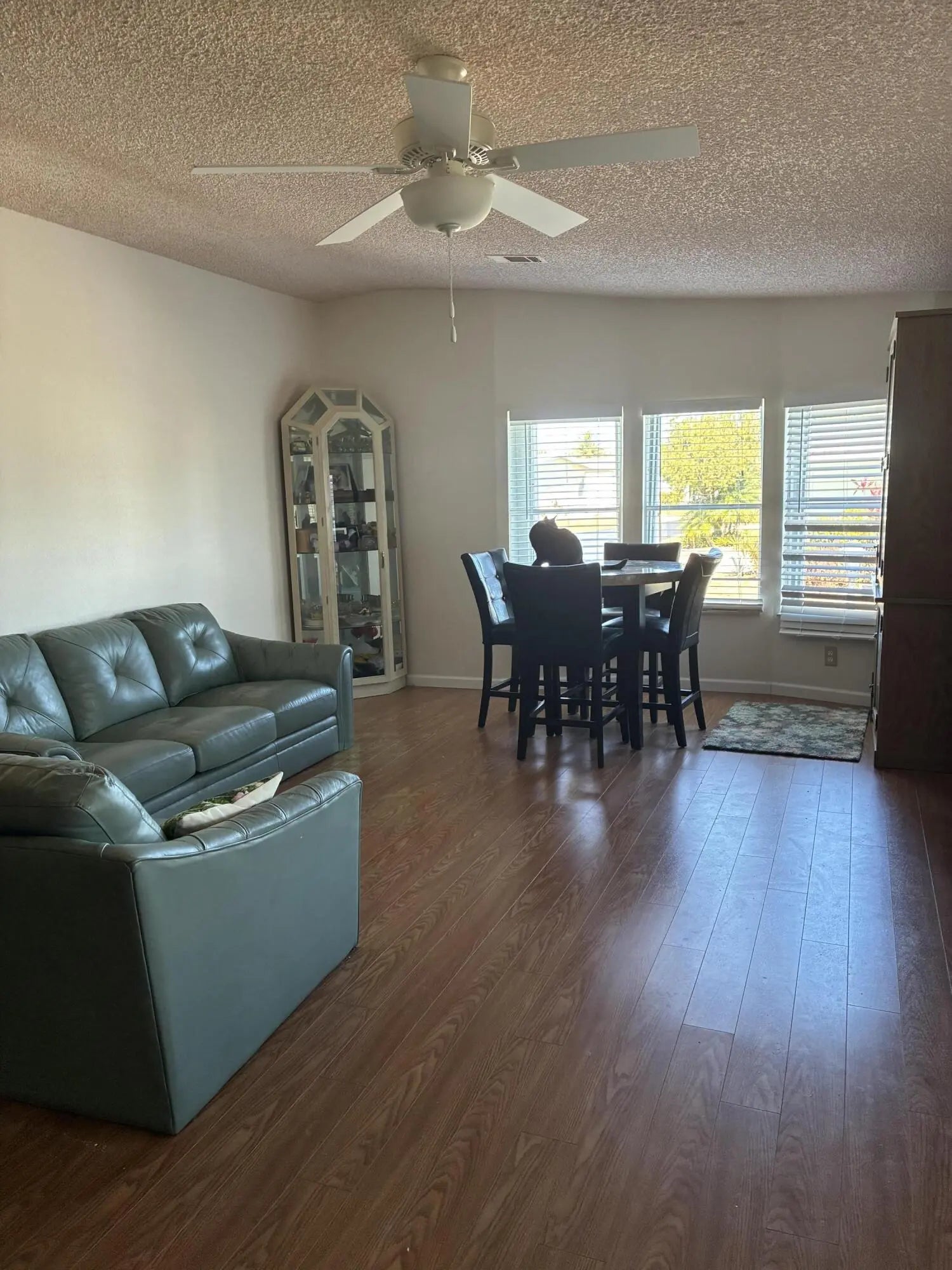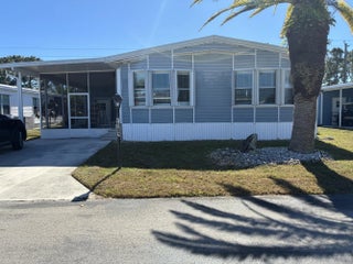 If you're looking for a large home, this is the one for you. One of the largest in the community and the private location, backing to a greenbelt, make this house very desireable. Home features new flooring in living/dining room, full set of accordion hurricane shutters, metal roof and 4 year old ac unit with transferable 10 year warranty. Home is in the process of being painted. Lot rent covers all amenities, trash removal and taxes.