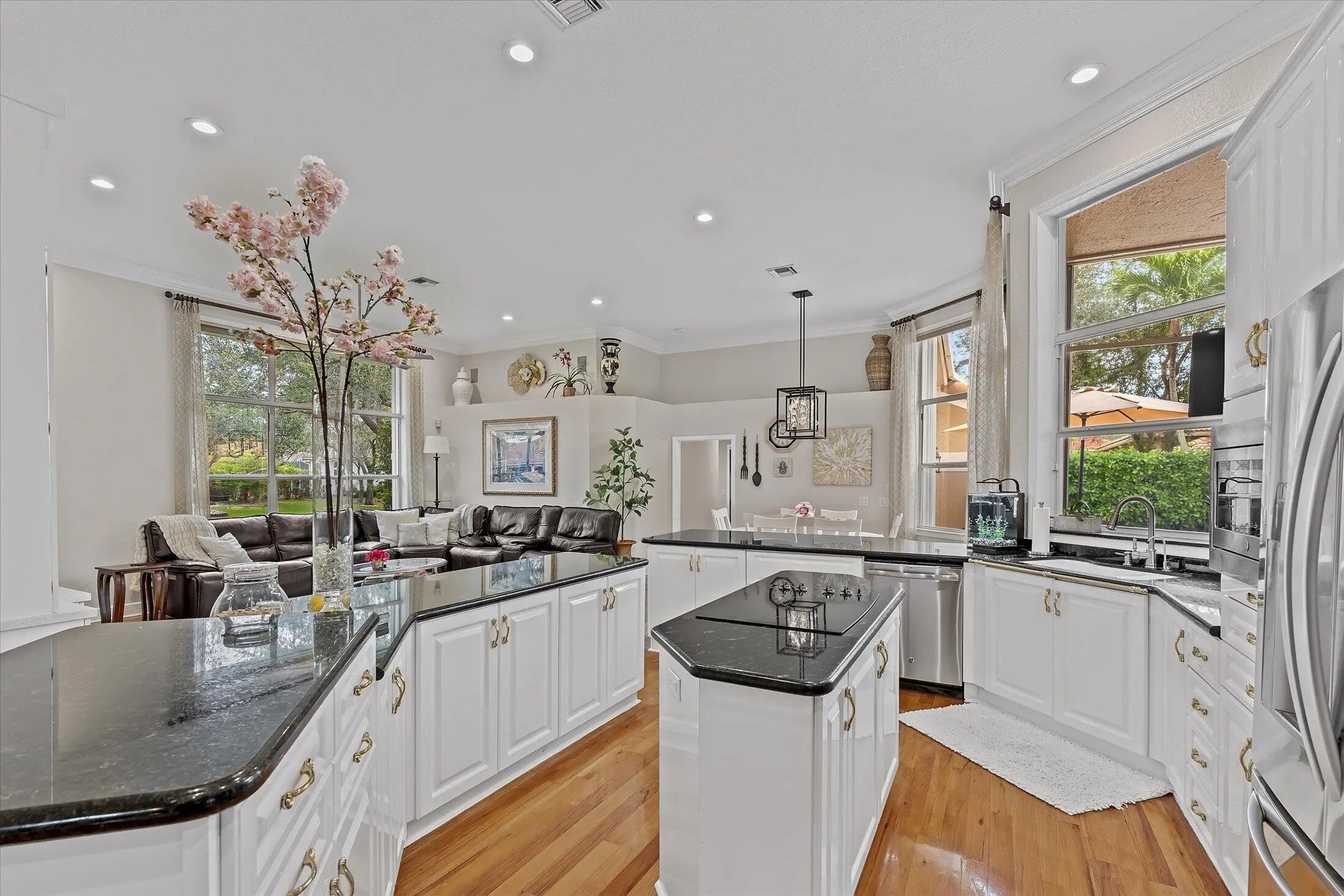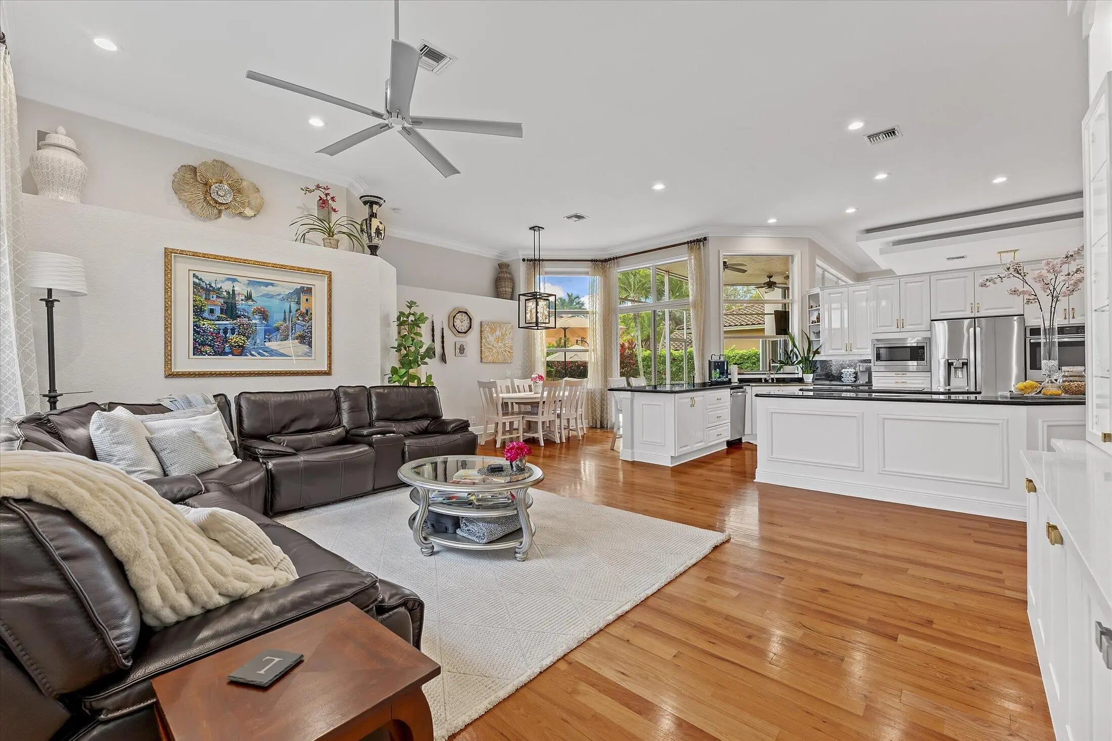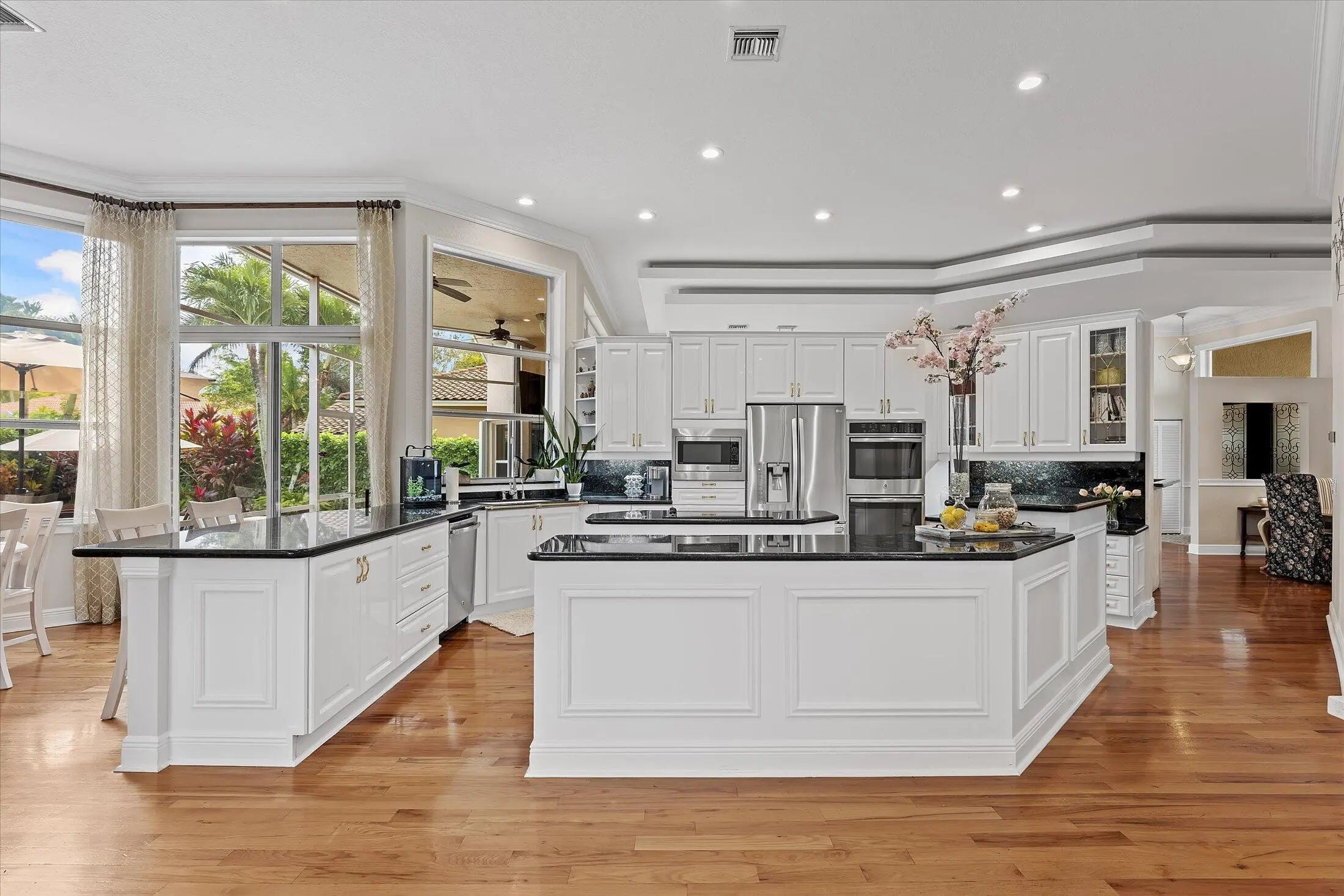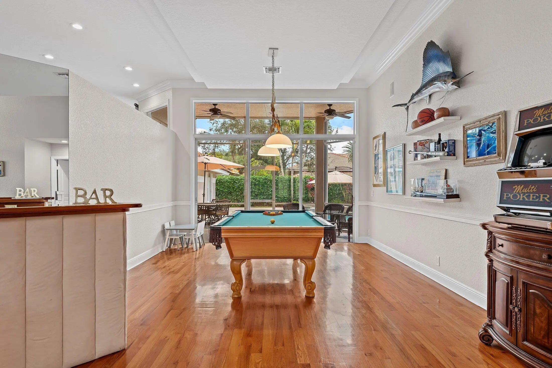 SPACIOUS & quiet, this single-owner 4-bed, 3.5-bath home is perfectly positioned on a corner lot on a double cul-de-sac. The large kitchen layout and family room create a great area for everyday living and entertaining. Gorgeous new wall unit with 3 TVs will keep everyone entertained! Storage and space is abundant throughout: 3 walk-in closets in the primary suite and 2 pantry closets in the kitchen. The oversized 3-car garage provides extra room for large vehicles, storage, or hobbies. Major upgrades include a 2020 ROOF, full accordion hurricane shutters, and impact-rated front & garage doors. Outdoors, relax on your front porch and in the backyard, enjoy a partial screened-in patio & a heated pool & spa, completely fenced-in. Gated community. Walk to A-rated schools!