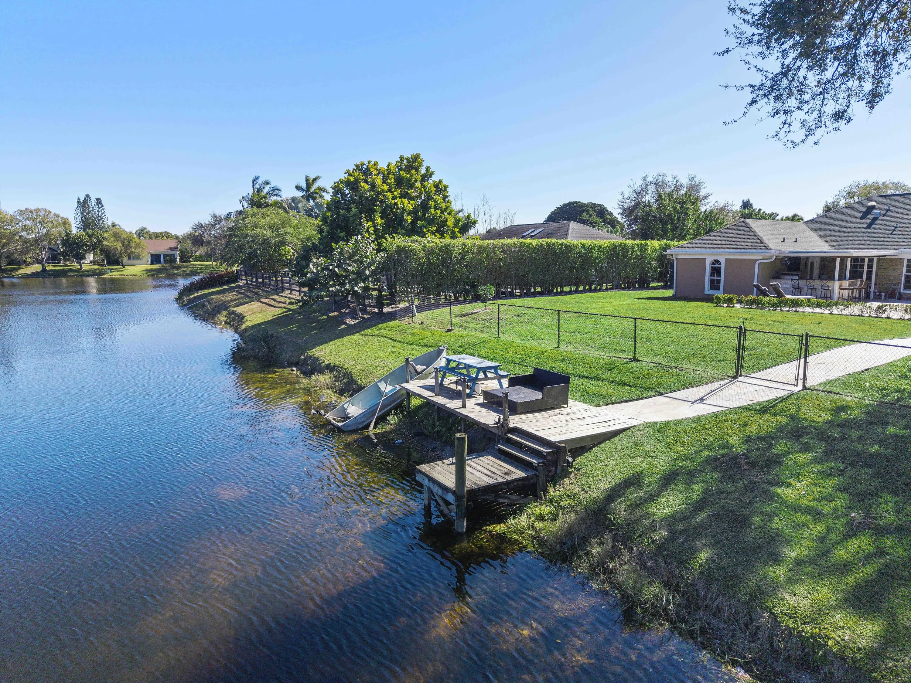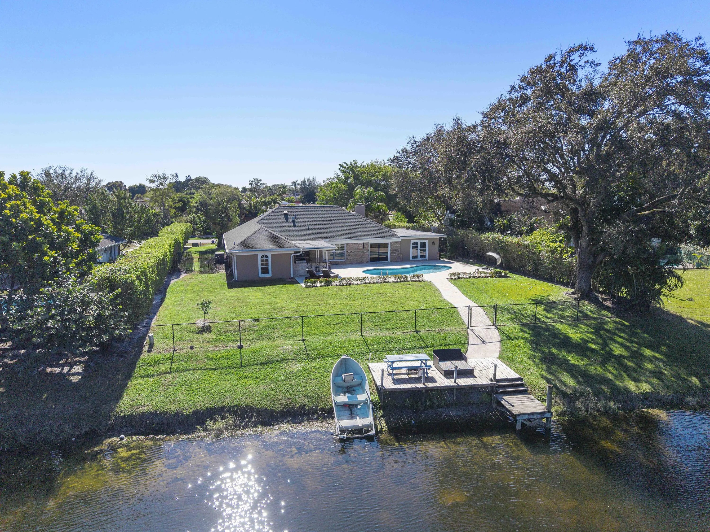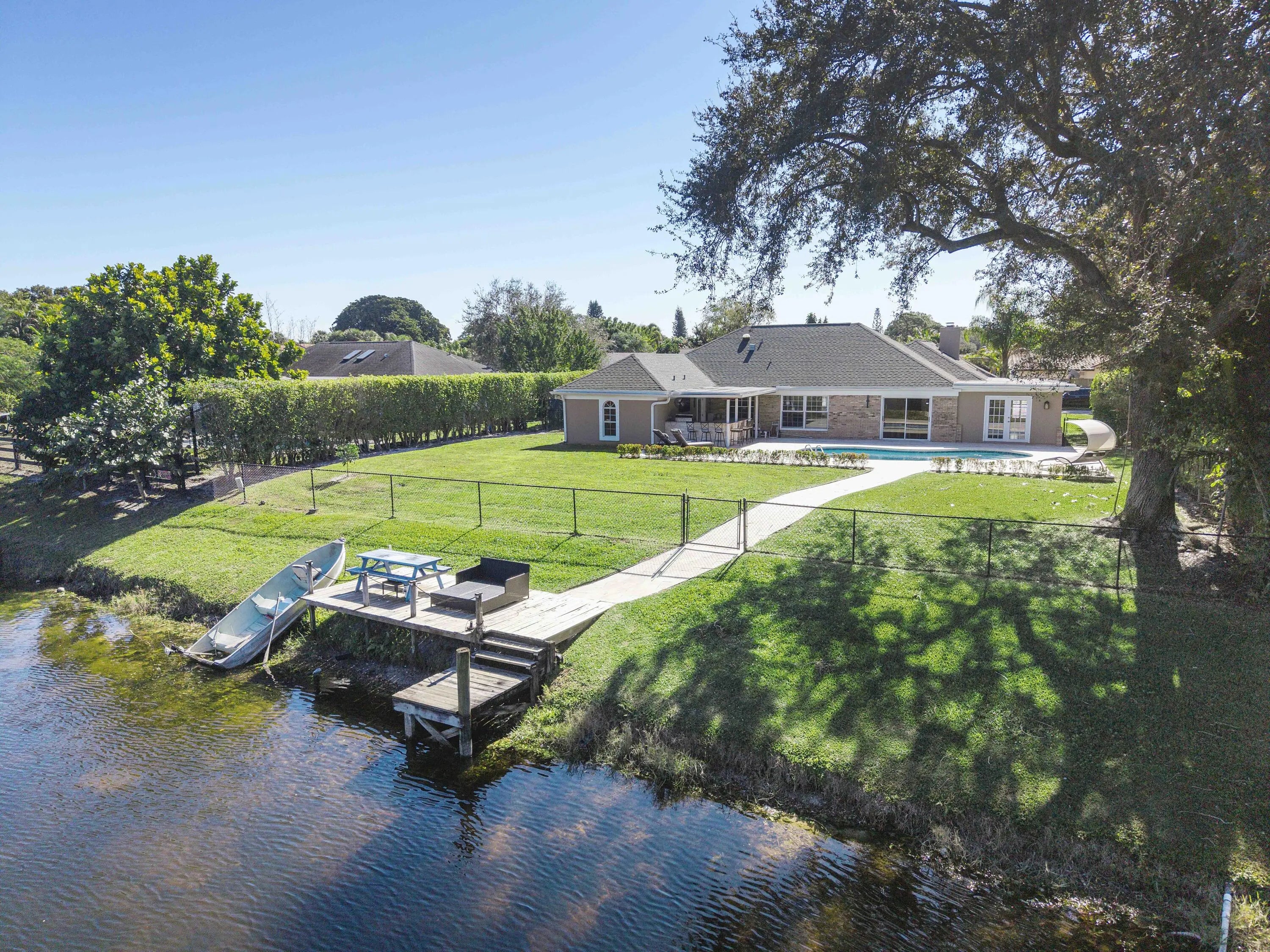 1384 Northampton Terrace is a rare beauty, a two-story waterfront residence offering 4 bedrooms and 3.5 baths in the heart of Wellington. Thoughtfully designed living spaces provide comfort and flow, enhanced by a freshly painted interior that delivers a clean, move-in-ready feel. Bonus loft upstairs leads to a private office with bath. Outdoors, enjoy a fenced yard with resort-style pool with travertine decking, outdoor kitchen, and tranquil lake views, plus a small private dock with access to Lake Wellington. A roomy 2-car garage for your belongings. Located in Wellington, the Winter Equestrian Capital of the World, this home is minutes from world-renowned horse show grounds, training facilities, and equestrian amenities, as well as top schools, shopping, and fantastic local restaurants