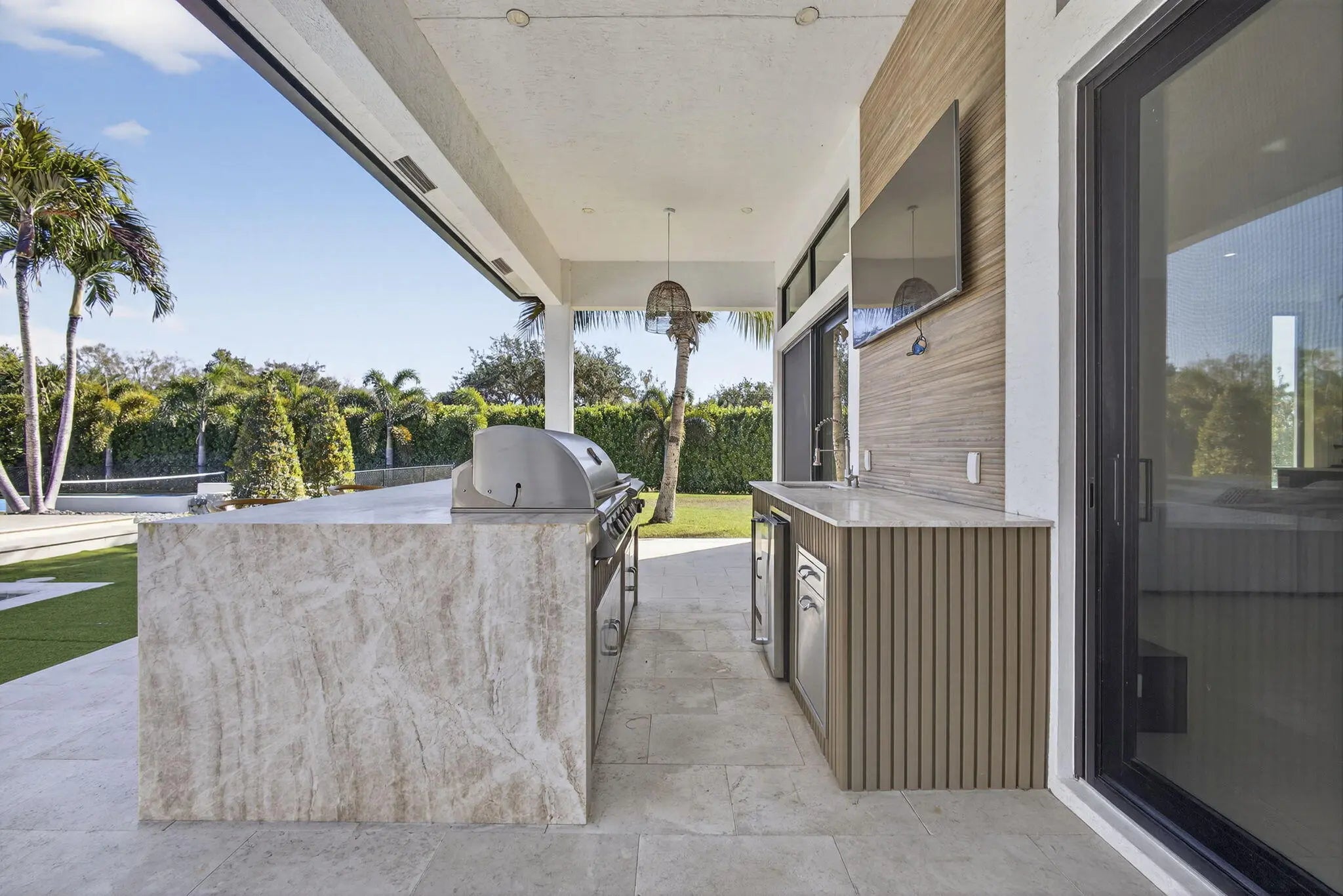 Fully renovated in 2025, this privately gated Aero Club estate offers approximately 6,500 SF of refined living space and over 8,300 SF total, with half the residence newly constructed and the remainder fully remodeled. Designed for elevated living, the home features a new metal roof, detached guest house, private pickleball court, media room, and a wellness suite with sauna, cold plunge, and gym. The chef's kitchen includes a butler pantry, gas range, and double laundry system. The primary suite offers a spa bath with steam room and walk-in closet. Executive office overlooks the heated pool. Hurricane-ready with a house generator powering the home and outdoor kitchen. Located near the entrance of the Aero Club with close proximity to horse farms, the dog park, and the private airport.