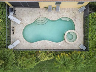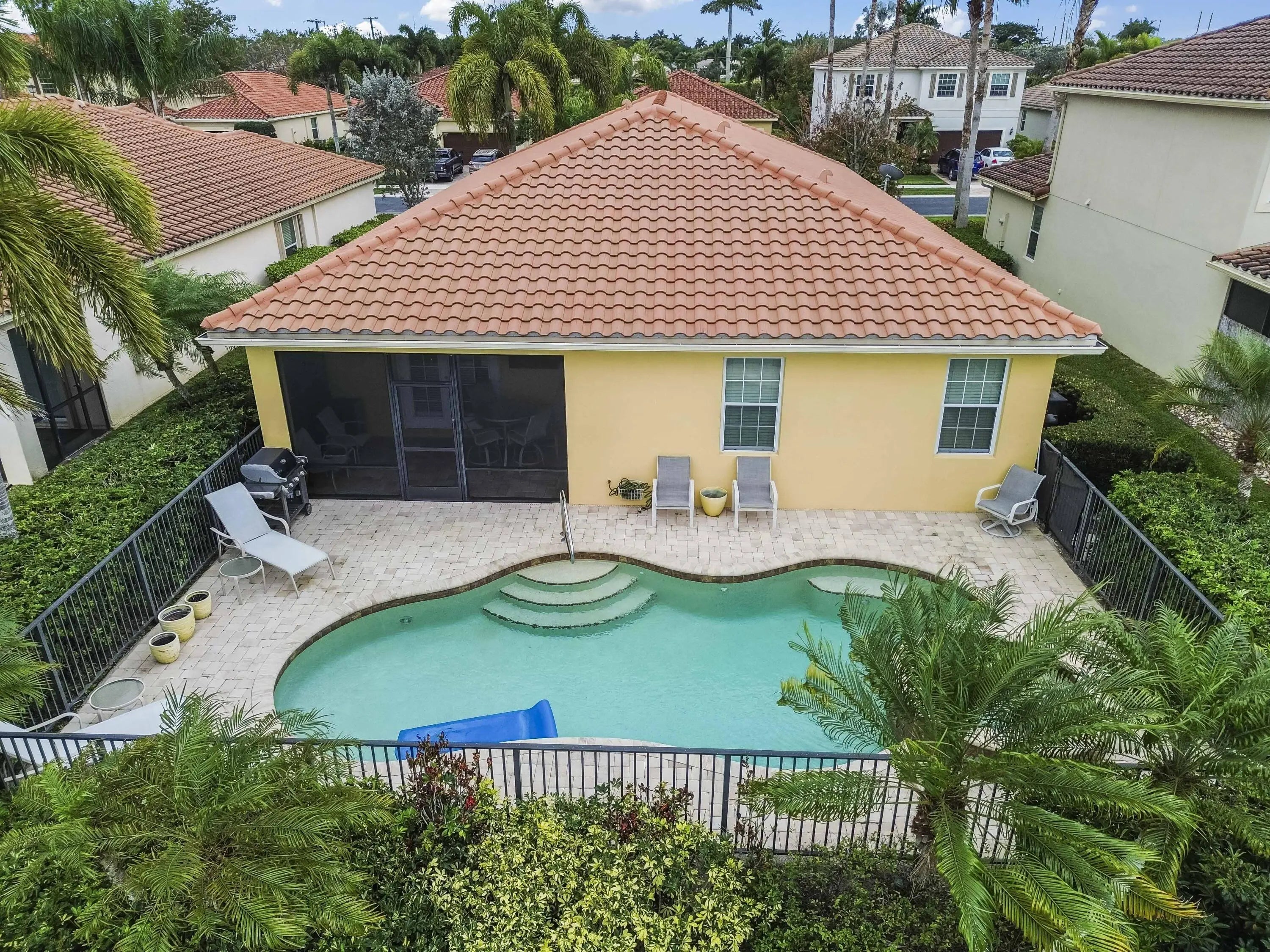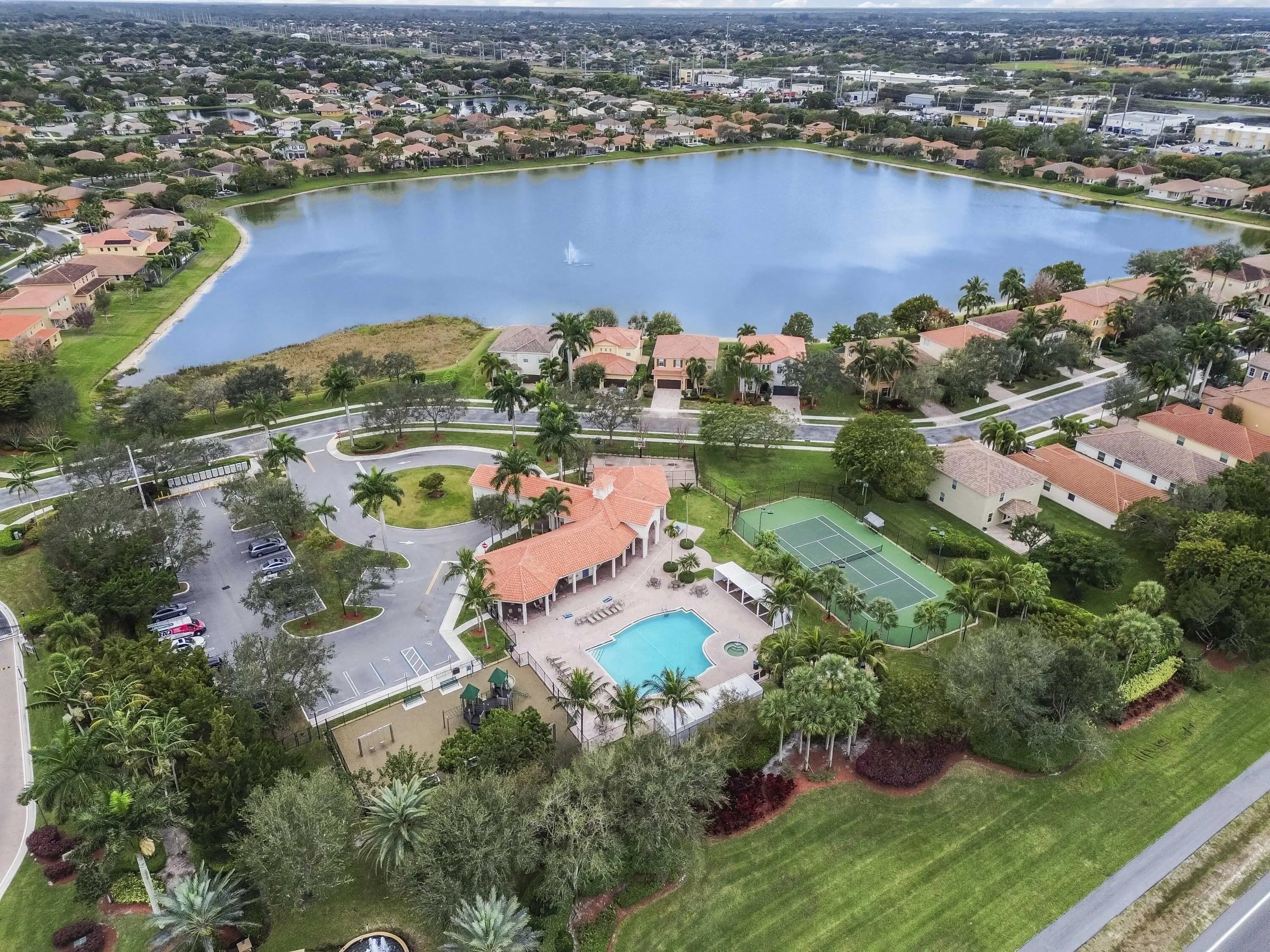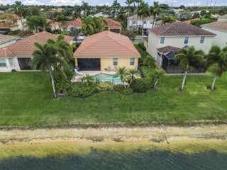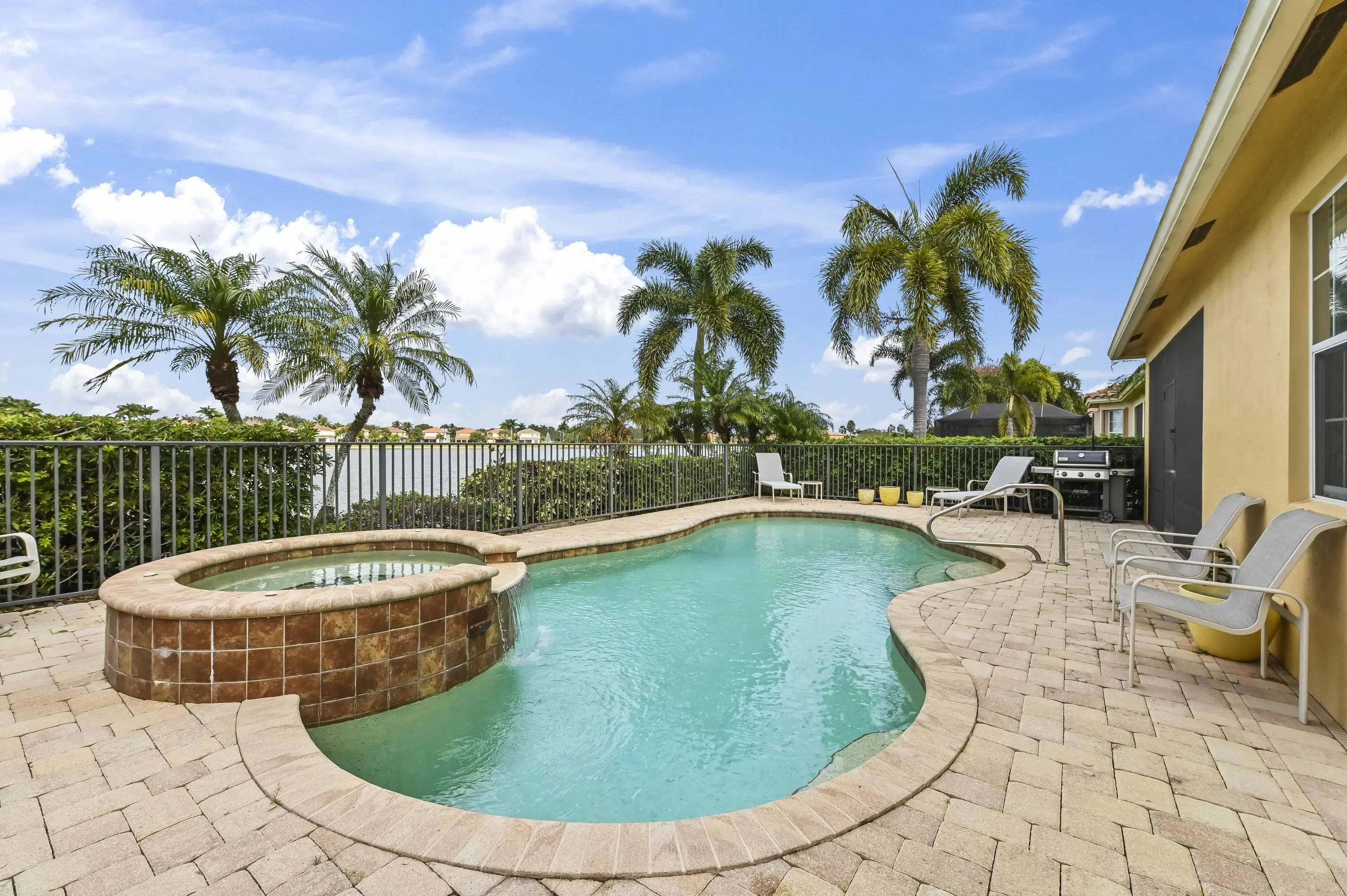 Welcome to your private sanctuary in the heart of Wellington! This exquisite single-family pool & waterfront home immediately captivates with its Mediterranean-inspired charm, featuring a barrel-tile roof, a spacious paved driveway, and lush, meticulously manicured tropical landscaping. Step through the grand arched entrance into a light-filled interior where luxury and comfort seamlessly intertwine. High ceilings and a neutral palette create an airy, expansive feel, designed for both effortless daily living and grand-scale entertaining. From the elegant formal dining room to the inviting living area, every detail exudes sophisticated Florida style. The heart of the home is the kitchen, a masterpiece of design and functionality. Rich, dark wood cabinetry provides ample storage, complemented by sleek granite countertops, premium stainless steel appliances, and a convenient breakfast bar that overlooks the main living space. Large windows and French doors invite the outdoors in, flooding the home with natural light and offering glimpses of the backyard oasis. Whether you're hosting a dinner party or preparing a quiet meal, this culinary haven is sure to impress even the most discerning buyer. Retreat to the primary suite, a tranquil haven featuring generous walk-in closets, and an en-suite bathroom that feels like a high-end spa, complete with a soaking tub and a separate glass-enclosed shower. The outdoor living space is a true showstopper, offering a resort-style experience in your own backyard. Relax on the screened-in patio or take a refreshing dip in the sparkling pool and integrated spa, all while enjoying panoramic views of the serene lake just beyond your property line. With its perfect blend of elegance, privacy, and breathtaking water views, this Ivanhoe Lane gem is more than just a home it's a lifestyle.
