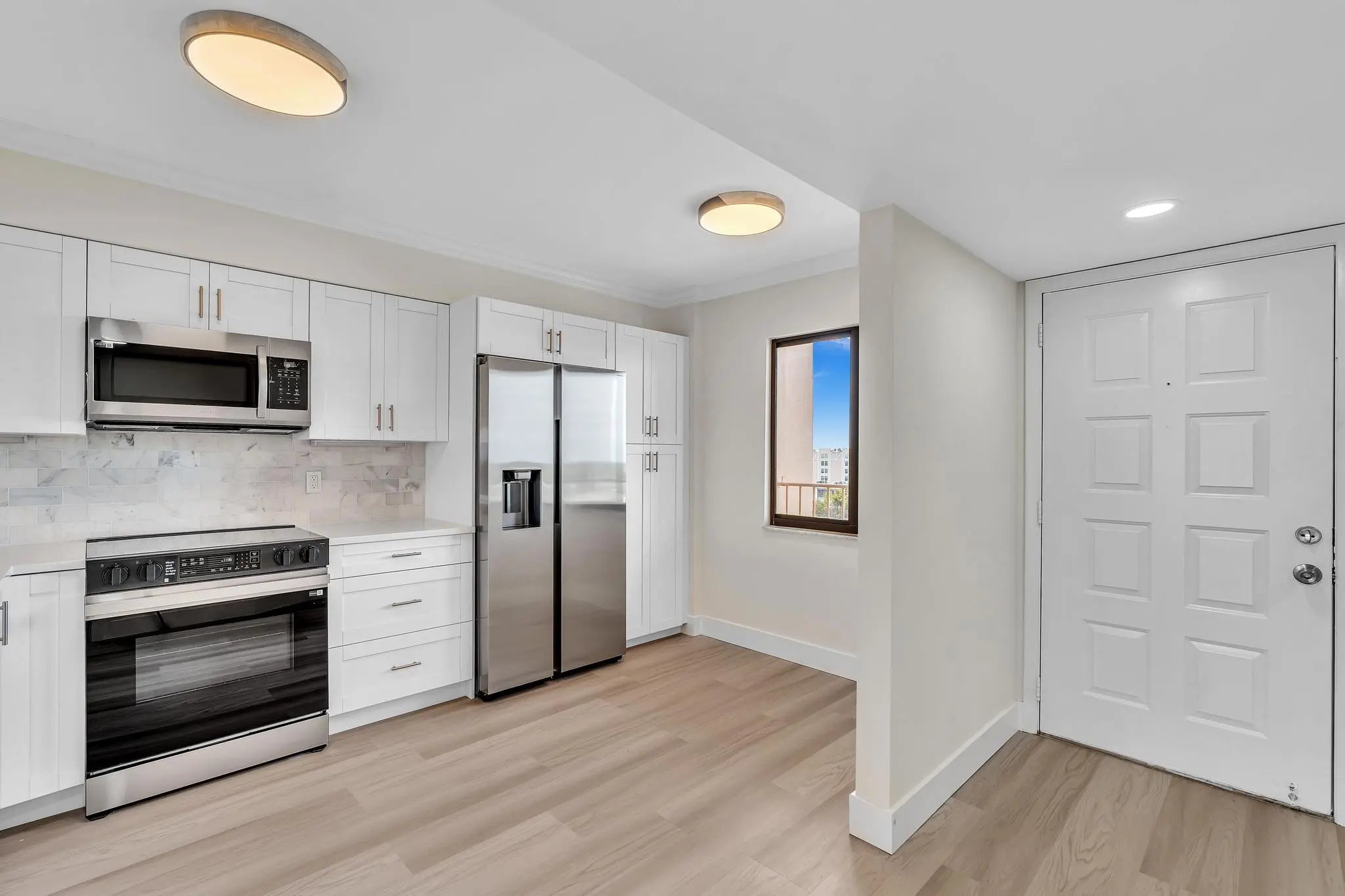 COMPLETELY remodeled 2-bed, 2-bath Penthouse offers breathtaking lake views and top-of-the-line modern upgrades. EVERYTHING is NEW including IMPACT WINDOWS and DOORS, luxury flooring throughout, brand new kitchen with high-end stainless steel appliances, and beautifully designed bathrooms. Located in the gated community of Huntington Lakes, residents enjoy a renovated clubhouse with incredible amenities, including a 610-seat theater, art room, fitness center, five pools, seven pickleball courts, and tennis courts. Plus, there's a vibrant selection of clubs and activities to join! Just minutes from Downtown Delray, you'll have easy access to amazing restaurants, shopping, and pristine beaches.