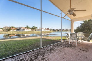 Lakefront 3/2/2 CBS Topaz Model located in the Cascades 55+ community offers limitless possibilities for entertainment. Residents may enjoy a round of golf, pickle ball, pottery and so much more in this beautifully landscaped neighborhood. This charming home is situated on a cul-de-sac and is lead up to by a long paver brick driveway. Spacious and airy ceilings. split-bedroom floor plan, dining nook and excellent views of the lake from your screened patio. His and hers walk-in closets lead to the primary bath which is equipped with large soaking tub and separate standing shower. A/C replaced in 2023. Home alarm system and guarded/gated community entry offers peace of mind.