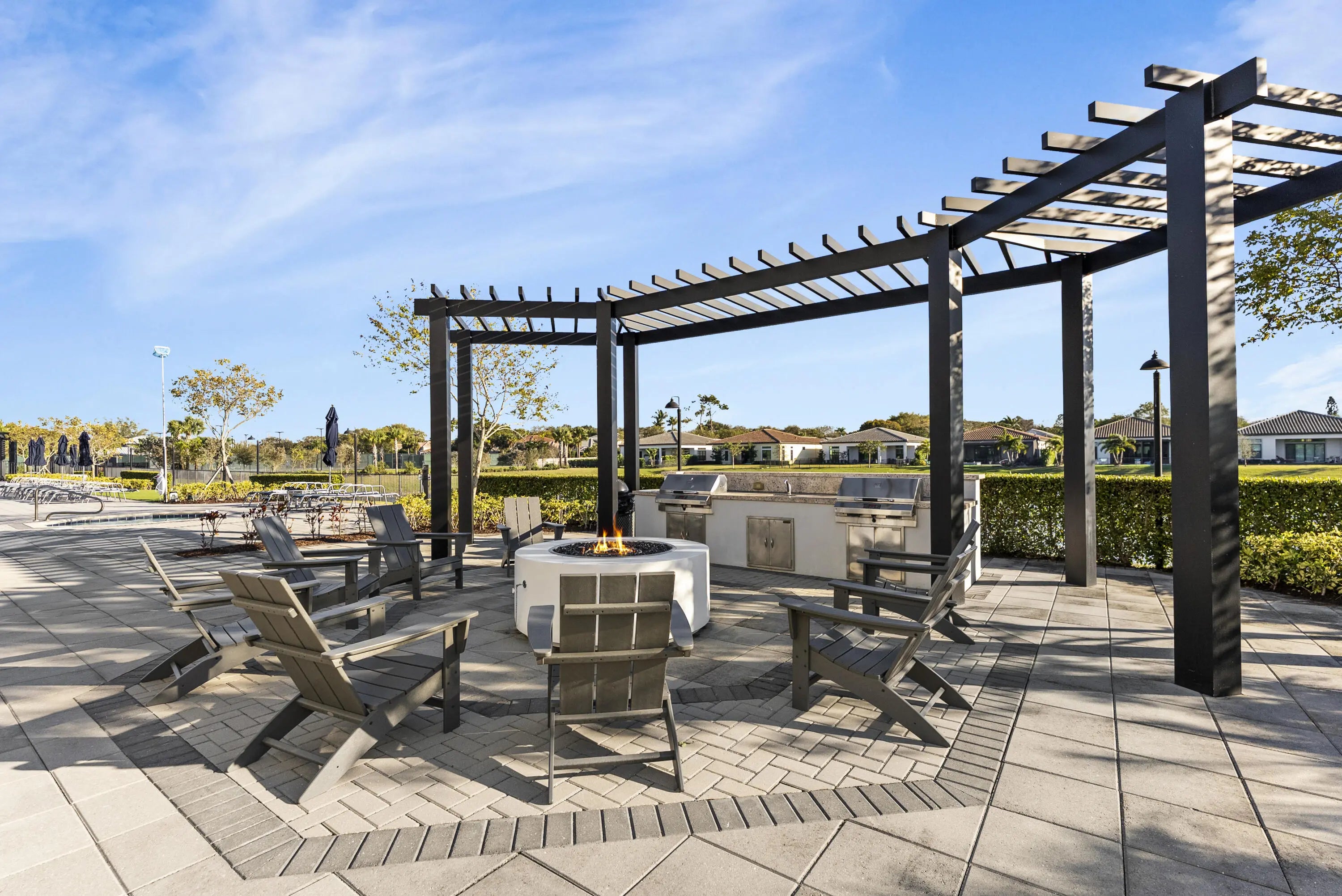 Built in 2022 and located in the sought-after Falls at Parkland, this upgraded 3-bedroom, 2-bath home offers modern living in a premier 55+ community. Over $50,000 in builder upgrades include enhanced kitchen finishes, cabinetry, flooring, countertops, and beautifully appointed bathrooms. Step outside to a private resort-style backyard featuring over $100,000 in improvements with a custom pool, paver patio, summer kitchen, and lounge area perfect for entertaining or relaxing year-round. Additional highlights include a 2-car garage and access to community amenities designed for an active lifestyle. Move-in ready with exceptional upgrades throughout. Furniture Negotiable.
