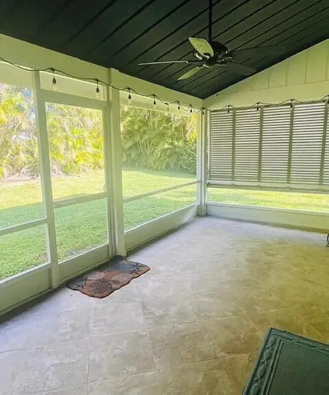Lovely 3 bedroom, 2 bath single family home located in cul-de-sac. Light and bright home. Large, screened porch overlooking peaceful backyard full of Areca palms. Garage can be used for storage (it will NOT fit a vehicle) and separate laundry room. Lawn/pest control included.