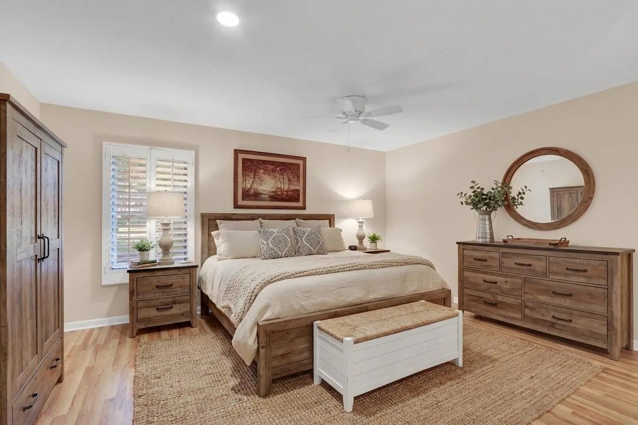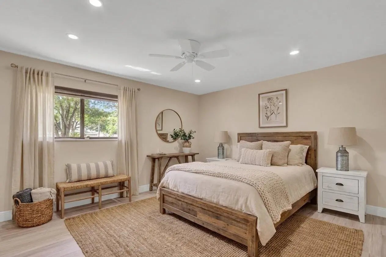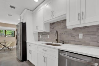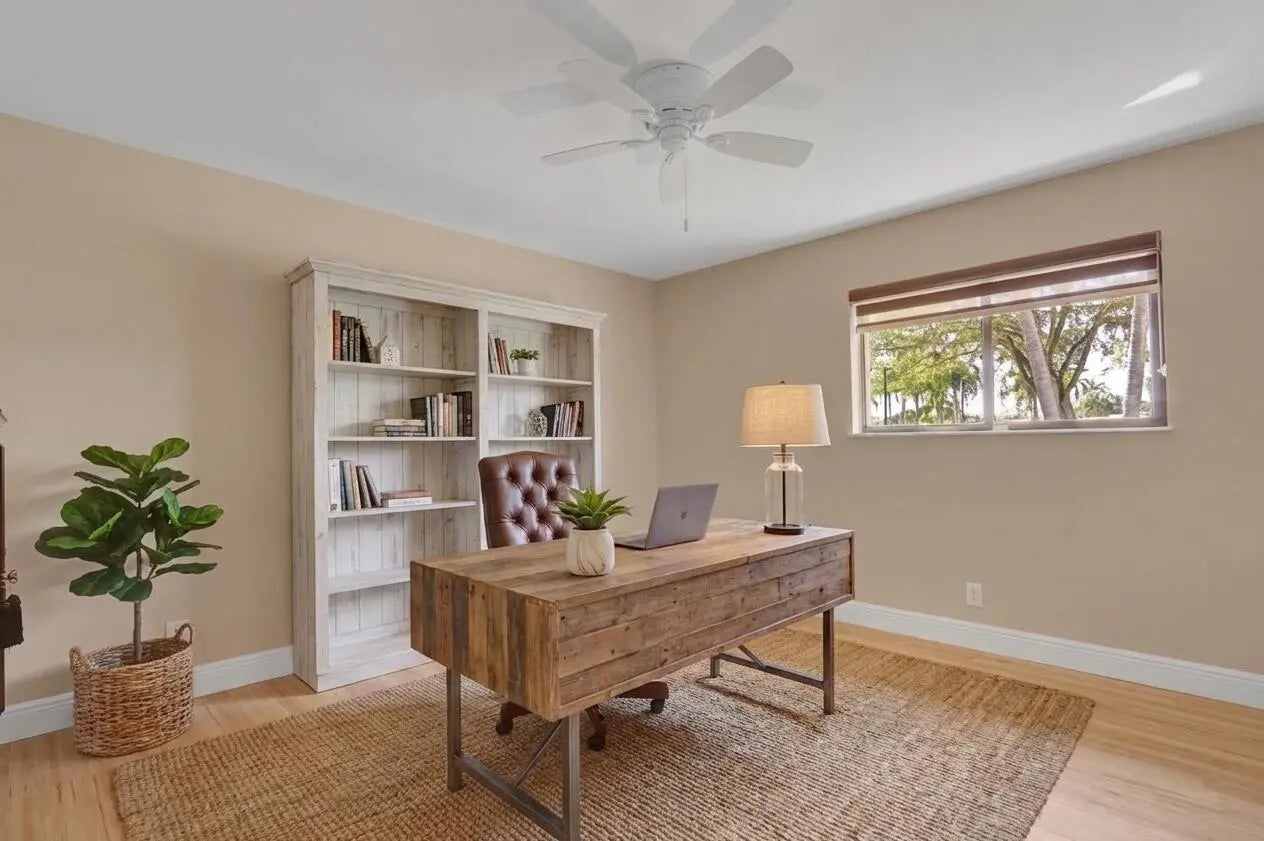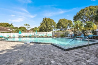 A bright, airy villa nestled within a gated golf course community, this beautifully maintained home is set in the sought after Fountains South and offers a thoughtful split floor plan, generous living spaces, and effortless indoor outdoor flow that works just as well for everyday living as it does for entertaining. Vaulted ceilings, transom windows, and an abundance of natural light create an open, welcoming atmosphere throughout. The interior layout is designed with privacy and flexibility in mind. The primary suite is privately situated on one side of the home, while two additional bedrooms are located on the opposite wing, making them ideal for guests, family, or a home office. The spacious primary retreat overlooks the tranquil rear garden and features a well-appointed bathroom with a separate soaking tub, walk-in shower, and a large walk-in closet. The renovated kitchen blends style and function with stainless steel appliances, quartzite countertops, a decorative subway tile backsplash, and an eat-in design with pleasant garden views. A bonus flex space just off the family room overlooks the patio and can easily serve as a sitting area, reading nook, or workspace. A built-in bar adds the perfect touch for entertaining or unwinding at home. Outside, the home continues to impress with a new roof installed in 2022, a one-car garage complemented by an oversized driveway, and a generous, private side yard that is rare for the community. The screened and covered front entry enhances curb appeal, while the pavered rear patio creates an inviting space for outdoor dining and entertaining. Accordion shutters are installed on many openings, offering added hurricane protection and peace of mind. Additional highlights include updated electrical panels, all new kitchen appliances other than the microwave, and new washer and dryer. The home is part of the Fountains South Villas Two Association, set within a gated golf course community and home to The Fountains Country Club, where optional, non-mandatory tennis, golf, and social memberships are available. Residents of this section also enjoy access to their own private community pool, offering a convenient and relaxing place to unwind. Ideally located in a central area, the property is just minutes from a wide array of dining, shopping, and entertainment options, with easy access to Palm Beach International Airport, making everyday errands and travel equally convenient.