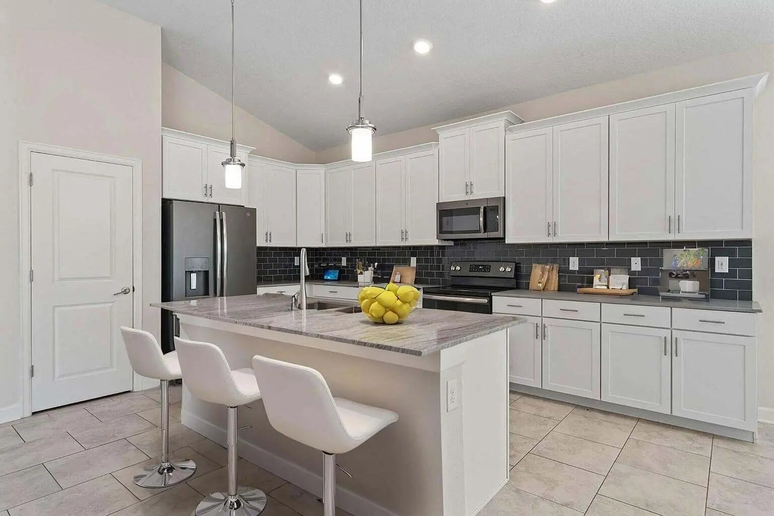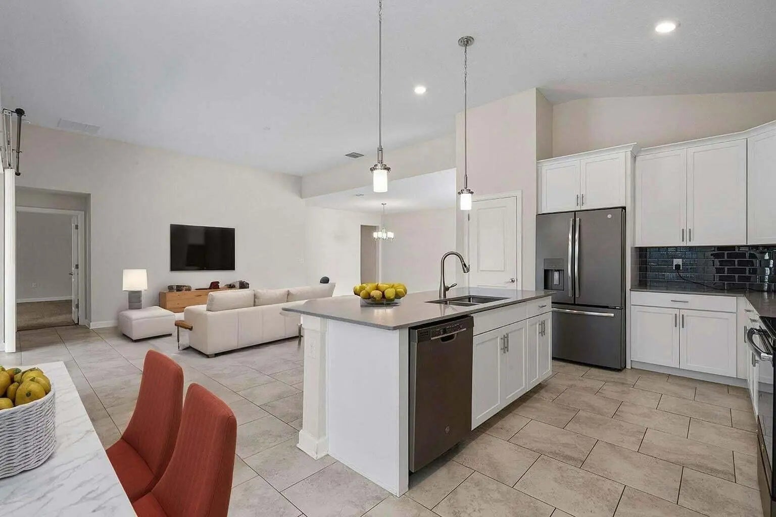 Welcome to 1488 Olympic Club Boulevard, a beautifully cared-for 4-bedroom, 3-bath residence with a 3-car garage, built in 2019 and located inside the gated ChampionsGate Country Club community. This home offers a modern layout, quality finishes, and a comfortable flow that makes it ideal for both everyday living and hosting guests. Inside, the open floor plan connects the main living areas seamlessly, creating a bright and inviting space. The kitchen is centrally positioned and features stainless steel appliances, quartz countertops, generous cabinet storage, and a large island that works perfectly for meal prep, casual dining, or entertaining. Neutral finishes and thoughtful details throughout the home create a clean, move-in-ready feel. The primary bedroom is set privately at the rear of the home and includes a spacious walk-in closet, dual sinks, and a large walk-in shower. Additional bedrooms offer flexibility for guests, family members, or a home office. Recent features and upgrades include interior and exterior paint, updated lighting, ceiling fans, a whole-home water filtration system, reverse-osmosis drinking water system in the kitchen, impact windows, window treatments with blackout options in select rooms, and energy-efficient systems throughout. Step outside to a covered patio and backyard space with peaceful garden viewsperfect for relaxing, outdoor dining, or enjoying the Florida weather year-round. Located in ChampionsGate Country Club, residents have access to resort-style amenities including golf, tennis, pools, fitness centers, dining options, and multiple clubhouse facilities. The HOA covers lawn care, security, cable, internet, and additional community services, creating a convenient, low-maintenance lifestyle. A well-maintained, newer construction home in a sought-after gated golf communityready for its next owner to enjoy.