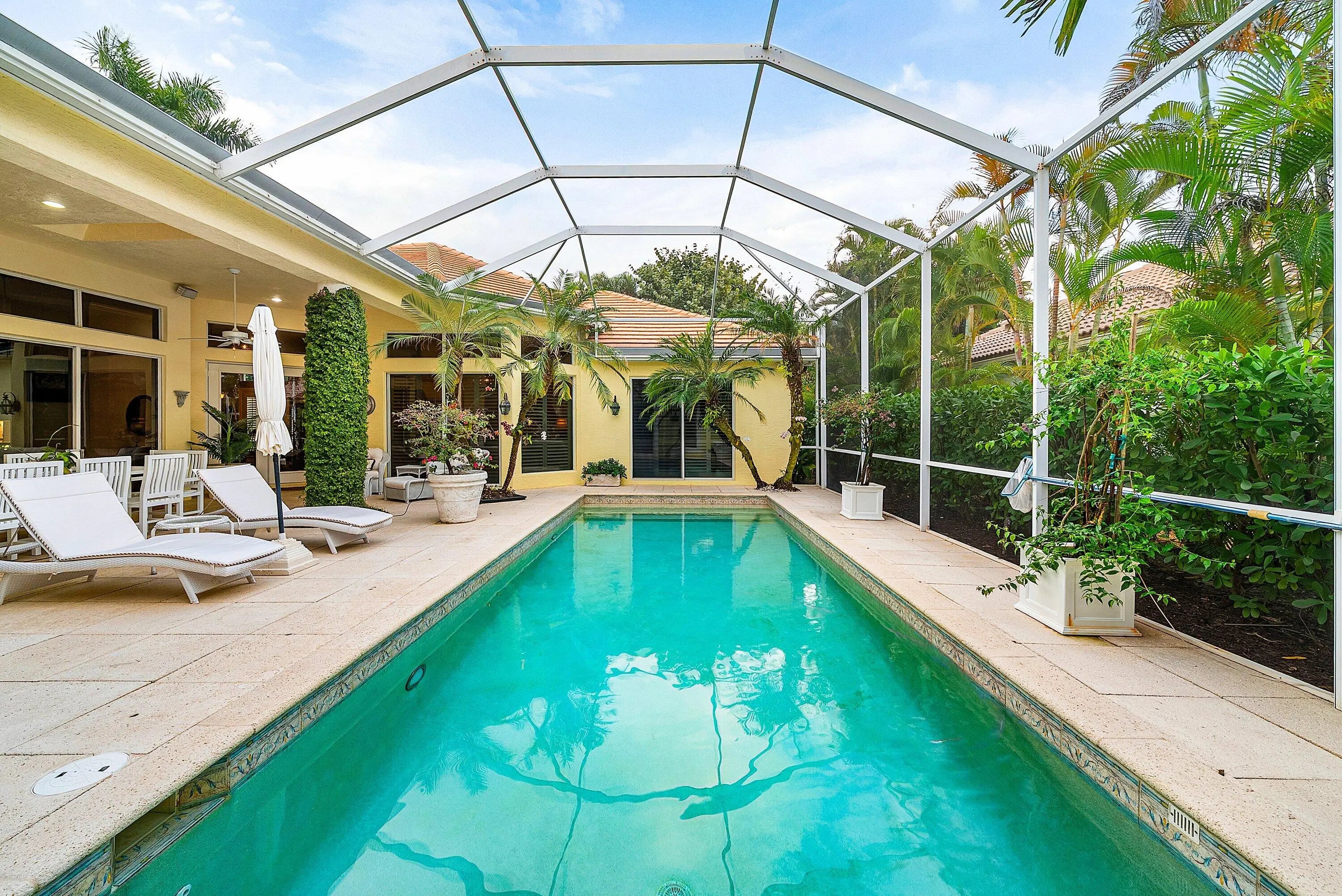 IMMEDIATE FULL GOLF MEMBERSHIP OPPORTUNITY AVAILABLE or this home could sell without any membership to include limited dining privileges at two of the venues. Various options with this home - could also choose Racquets or Sports categories. This stunning courtyard home is situated on a corner lot within BallenIsles Country Club. This exceptional floor plan offers over 3,500 square feet of living space and features two bedrooms plus office and three-and-a-half bathrooms in the main residence, along with a private one-bedroom, one-bath casita with a separate entrance. The home is filled with abundant natural light and showcases a desirable indoor-outdoor living space with expansive sliding doors and elegant transom windows exposing the garden views. The interior features hardwood flooring throughout. The kitchen is equipped with GE Monogram appliances, including a five-burner gas cooktop, a center island, and a spacious walk-in pantry. The spacious primary suite with tray ceiling and sizable custom walk in closet boasts a spa like bathroom with dual vanities, jetted tub, and a glass shower. The thoughtfully designed layout offers three en-suite bedrooms, with one currently set up as an office and features French doors that open to a separate outdoor space, the courtyard is adorned with a screened and covered patio and large pool to enjoy. Across the patio, you'll find the substantial 439 square foot, private 1 bedroom, 1 bathroom Casita with separate Vintage tub and glass shower. Don't miss out. Schedule your private showing today! Ballenisles Country Club is recognized as a 5-star platinum rated club offering world class amenities and facilities with three championship golf courses, a top rated tennis & pickleball facility, beautiful newly renovated clubhouse and sports complex, six dining options, fitness center, spa & salon, community pool, dog park, walking paths, and so much more!