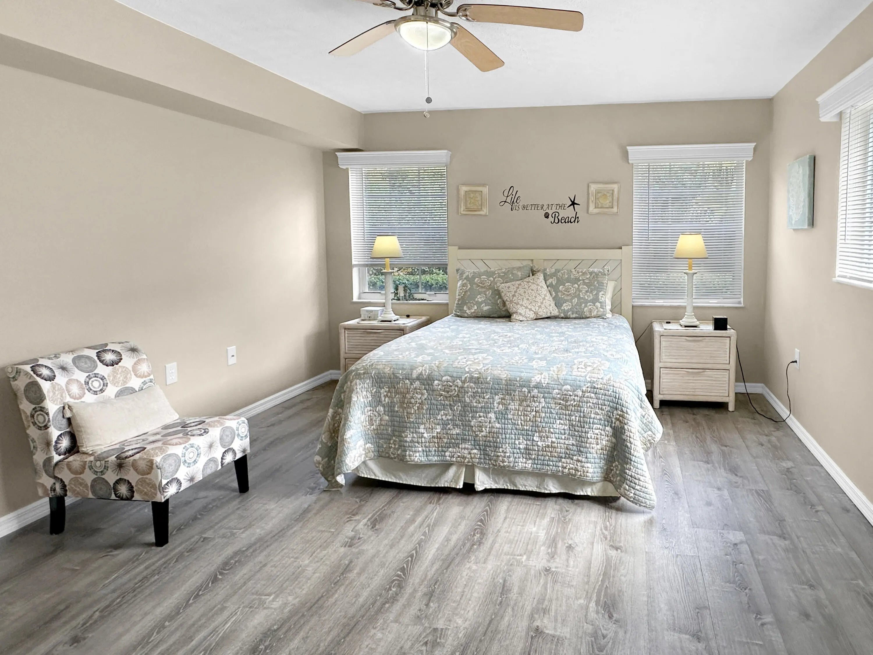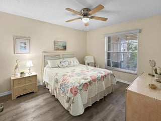 Discover the epitome of comfort and serenity in this elegantly appointed two-bedroom, two-bath condo, tailored to provide the perfect blend of luxury and tranquility. Nestled in a vibrant 55+ gated community, this first-floor unit offers an unparalleled living experience with a backdrop of lush mangroves leading to the Indian River. With recent painted interior, newer laminate flooring and ceramic tile flooring, it sets the stage for a life of ease. An inviting foyer unfolds into a spacious living room, an elegant canvas for your personal touch. The dining room is conveniently located off the updated kitchen, which boasts granite countertops, a tiled backsplash, refaced cabinets, and a brand-new refrigerator. Sleep in peace in spacious master suite, featuring walk-in closet, fully updated bathroom including a granite vanity and custom-tiled walk-in shower. The guest bedroom also offers a generous walk-in closet and updated guest bath. The enclosed Florida room, an ideal spot for entertaining or solitude, leads to a private backyard with a brick paver patio the perfect nook for morning coffee and wildlife enjoyment. Additional appointments include an oversized laundry closet and additional storage room, newer A/C, hot water heater, and the added security of accordion shutters and the elegance of wood window valances. Grove Isle offers unmatched amenities such as a kayak launching ramp, a 46-acre nature preserve, with Nature Trail that leads to an observation deck and picnic area with the beautiful Indian River as back drop. Grove Isle is a community rich with activities and social opportunities. Convenience is at your fingertips, with shopping, dining, parks, beaches, the Vero Beach Regional Airport, and major roadways all within easy reach. Embrace this rare opportunity to live in a haven of elegance and charm, where every day feels like a tranquil retreat.