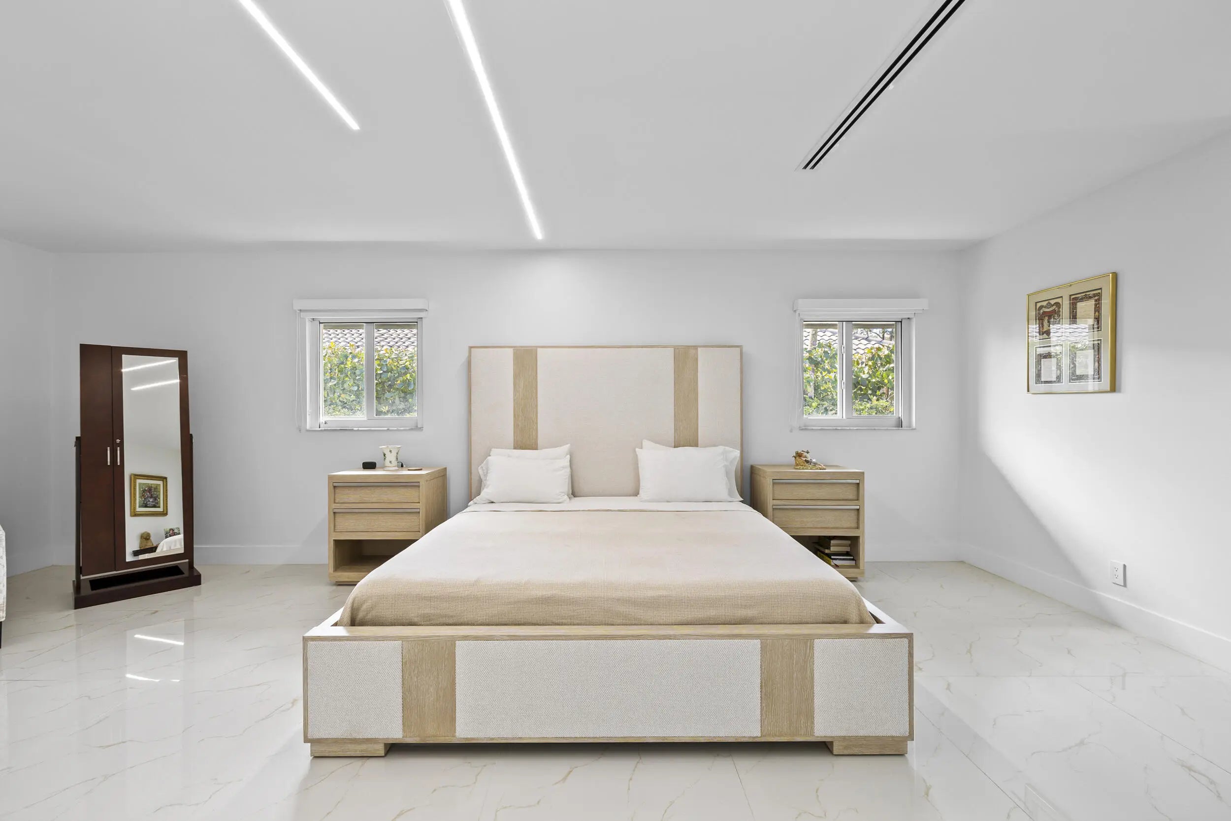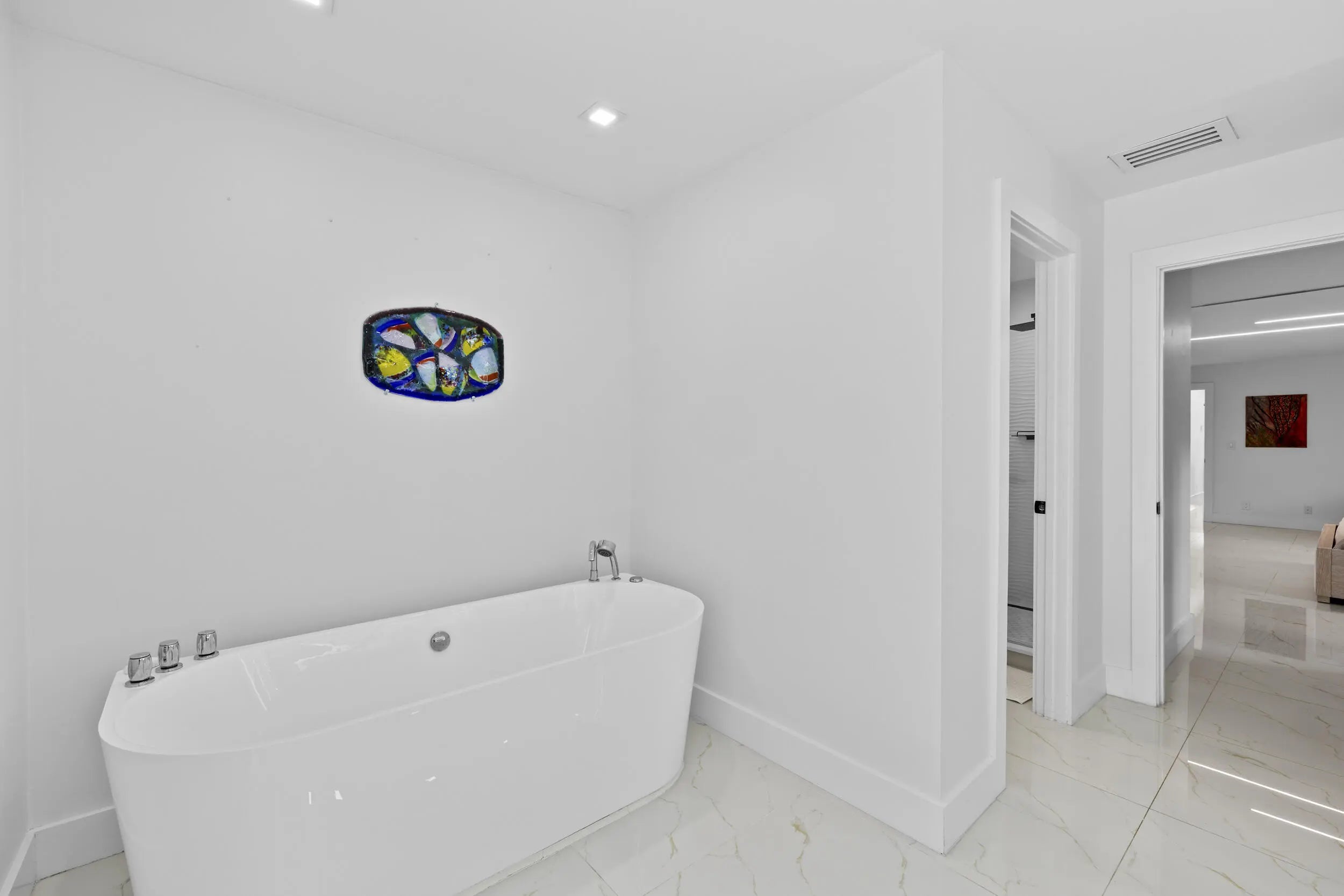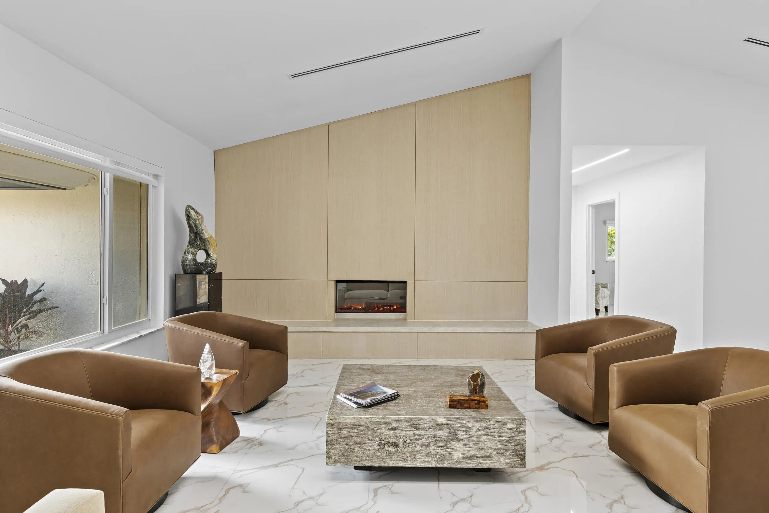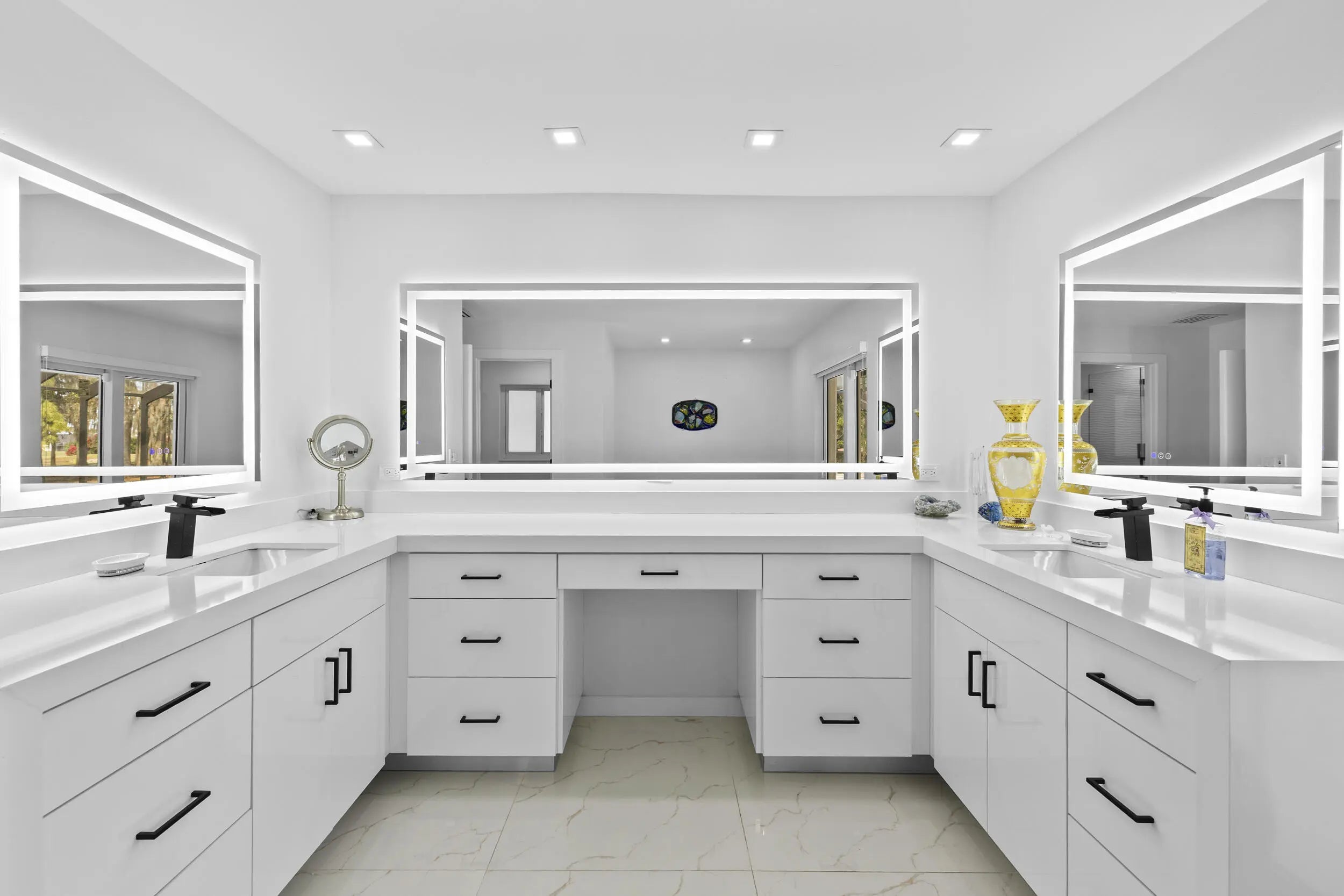 Completely renovated home in Boca Woods Country Club, offering a bright, spacious open layout with stunning private golf views. Features include a metal roof, impact windows and doors, porcelain tile throughout, and a sleek modern kitchen with two sinks and new high-end appliances. The home offers two large primary suites, two additional guest bedrooms, and three and a half beautifully redesigned modern bathrooms. Enjoy one of the largest screened patios in the community with a huge pool, screen enclosure, and marble pavers throughout. Three-car garage with epoxy floors and A/C. Modern lighting and new ductwork. Truly move-in ready.