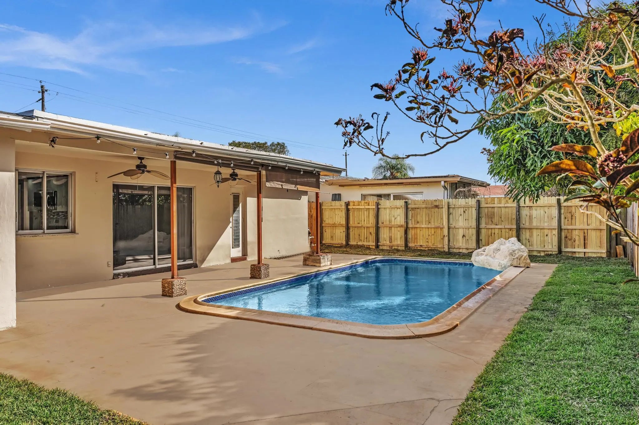 Well-kept 3/2 pool home with the garage in a great family neighborhood. Freshly painted inside and out with updated bathrooms. Great outdoor entertainment area, fenced in - dogs welcome! Quiet area, 2 short blocks from Horizon Elementary. Excellent central Broward location, convenient access to all major roadways & just minutes away from shopping, dining & Sawgrass Mills. The rent includes maintaining the pool and lawn.