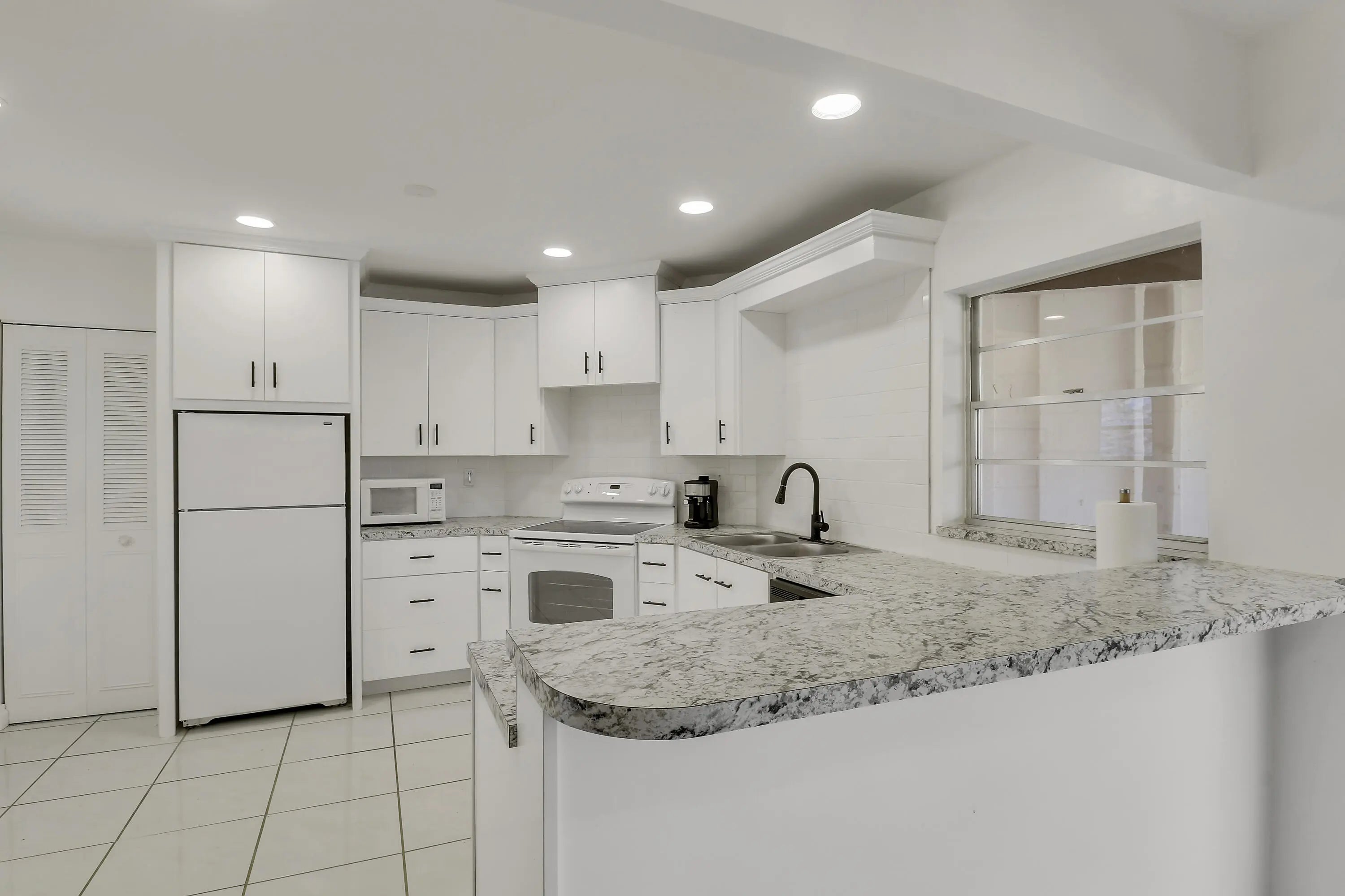 Welcome home to this beautifully updated 2-bedroom, 2-bath, 55+ condo - located on the second floor, in the desirable Greenway Village community. Enjoy peace of mind with the roof updated in 2023, along with a newer water heater. This light and bright unit features tile flooring throughout the main living areas, a spacious white kitchen with white appliances, and neutral carpet in both bedrooms, for added comfort. The bathrooms have been refreshed with new cabinetry, and the condo offers two separate entrances for added convenience. Step out onto the screened balcony--perfect for relaxing and enjoying the Florida breeze. Greenway Village offers fantastic amenities, including a pool, its own dog park, and is conveniently located directly across the street from Commons Park. Cable, Wi-Fi, water, and building insurance are included, adding even more value. The community is close to many shops, restaurants and just a 20 minute drive to the beach. Don't miss this opportunity, schedule your showing today!